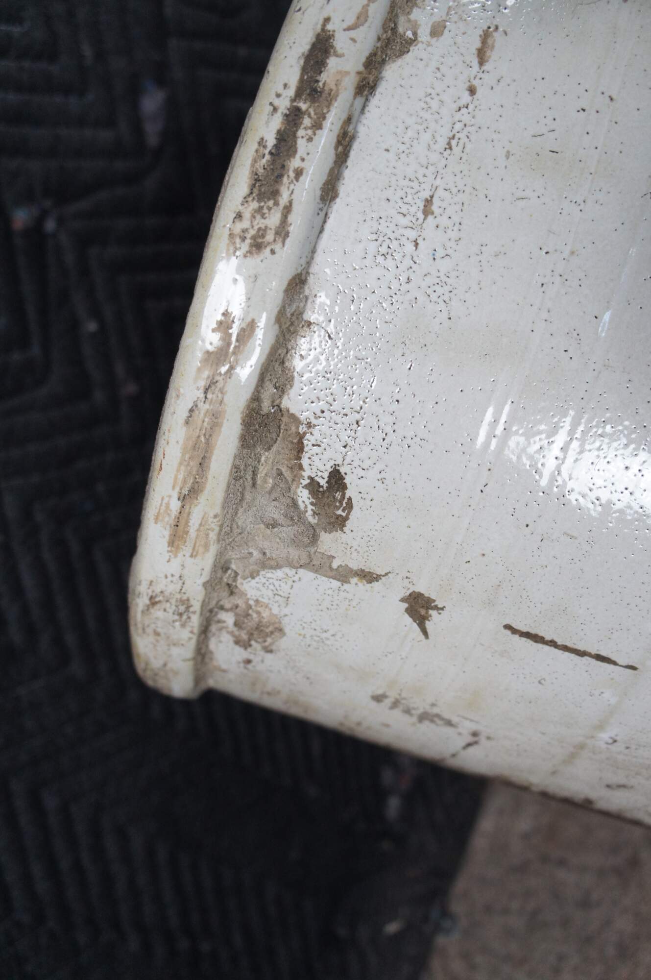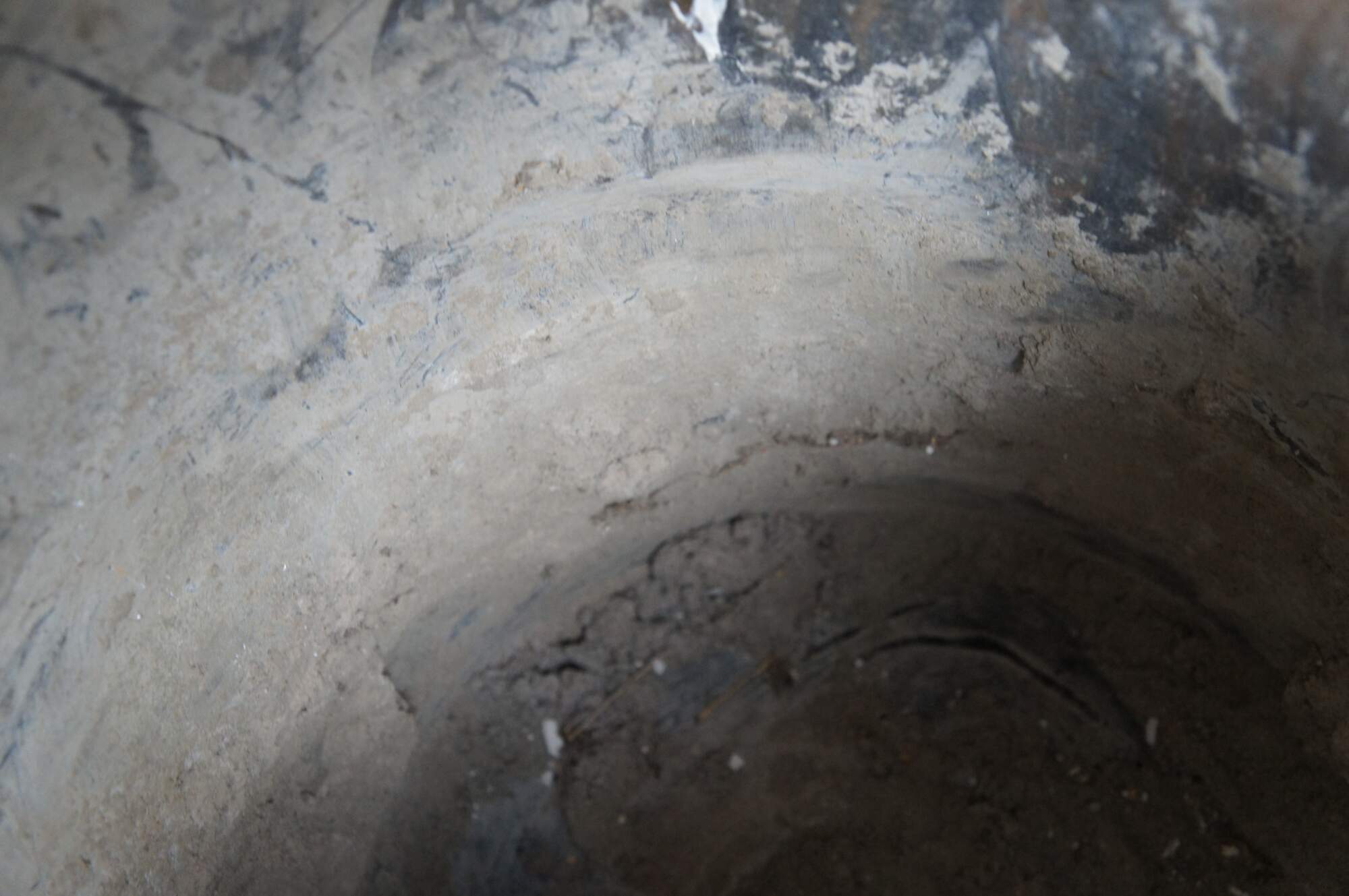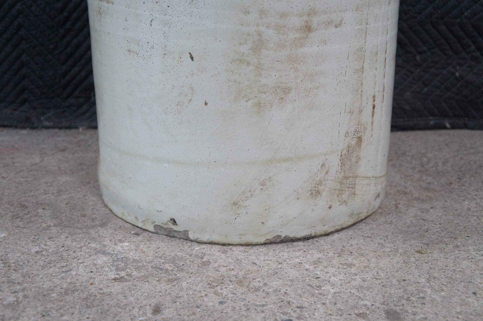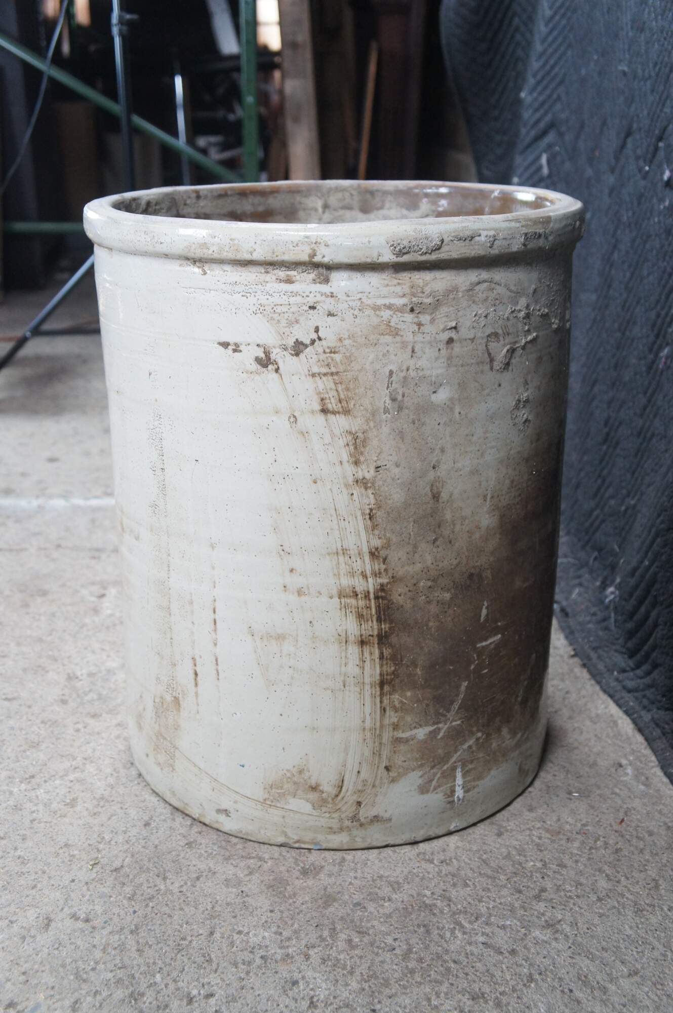 Good Overall; General wear from use and age. Some chipping and edgewear. This crock was used to mix concrete at some point and has residue from mixing.
