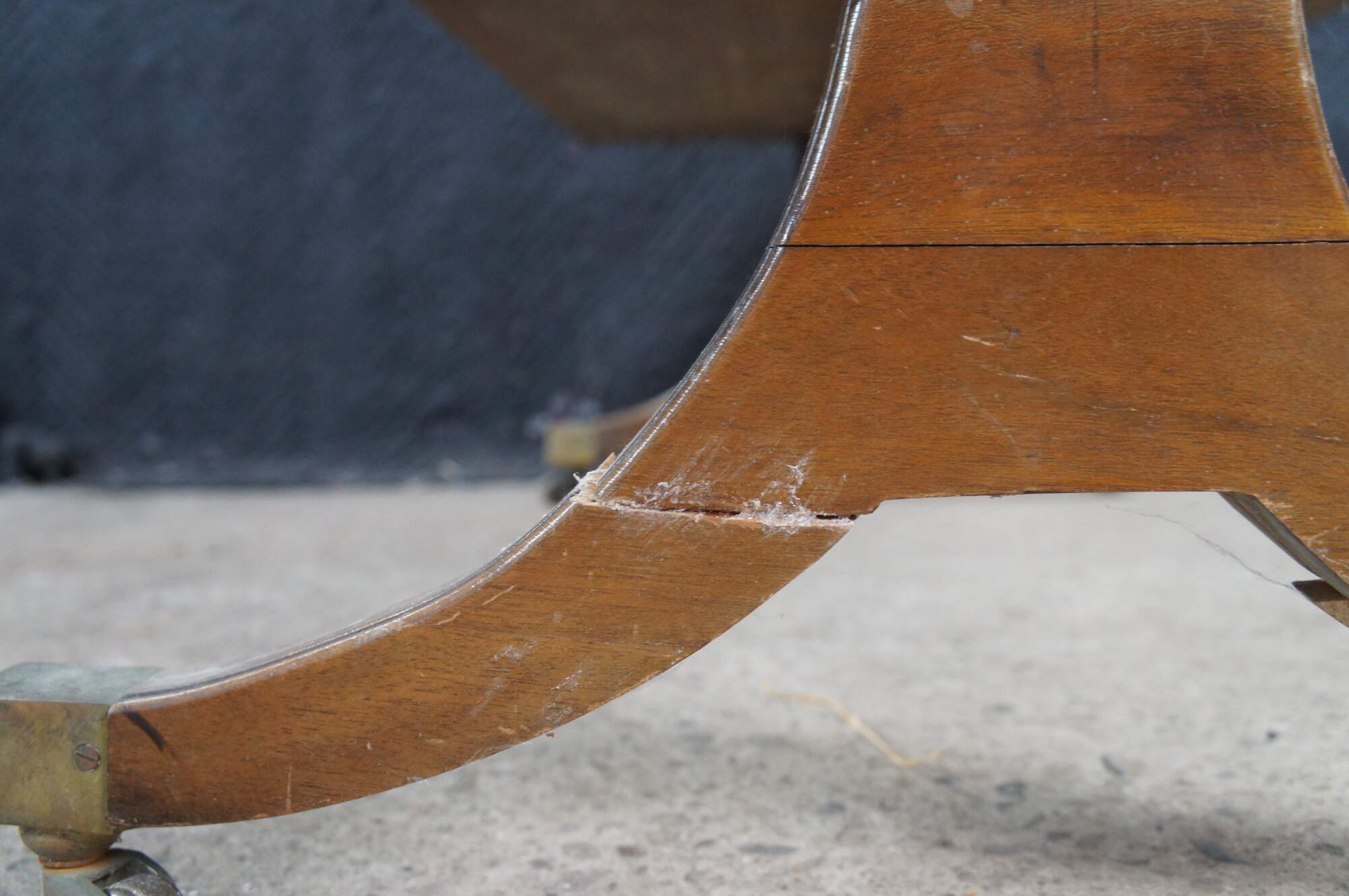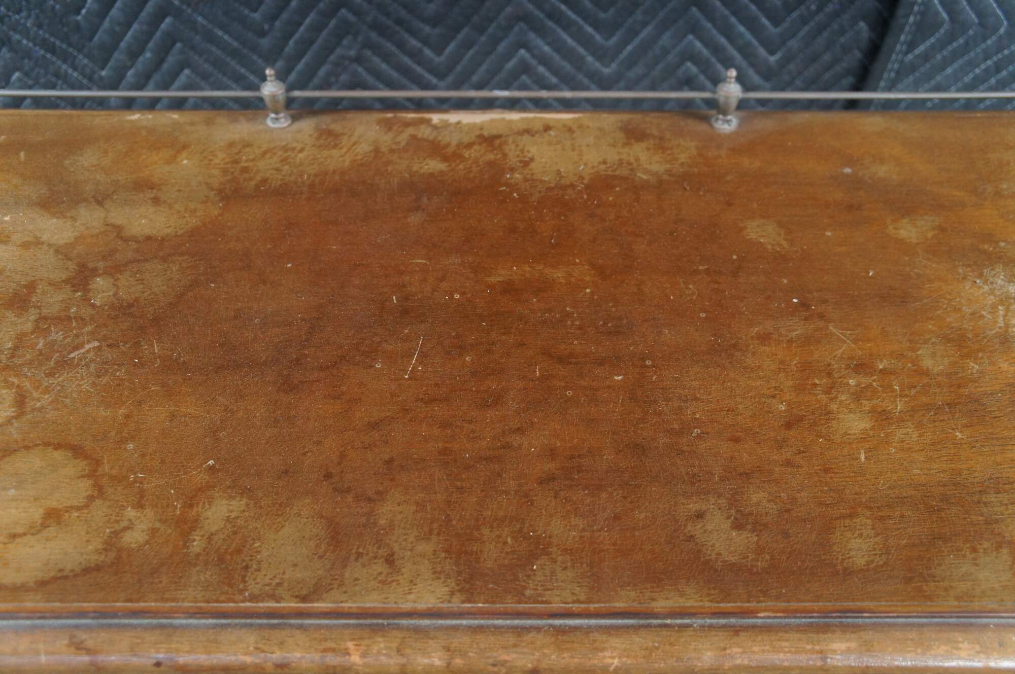 Poor; Finish Loss, marking and distressing. Legs broken and repaired poorly in the past. The table is stable but could use proper repairs to the legs. If you are interested I can have my woodworker sure up this before shipping.
