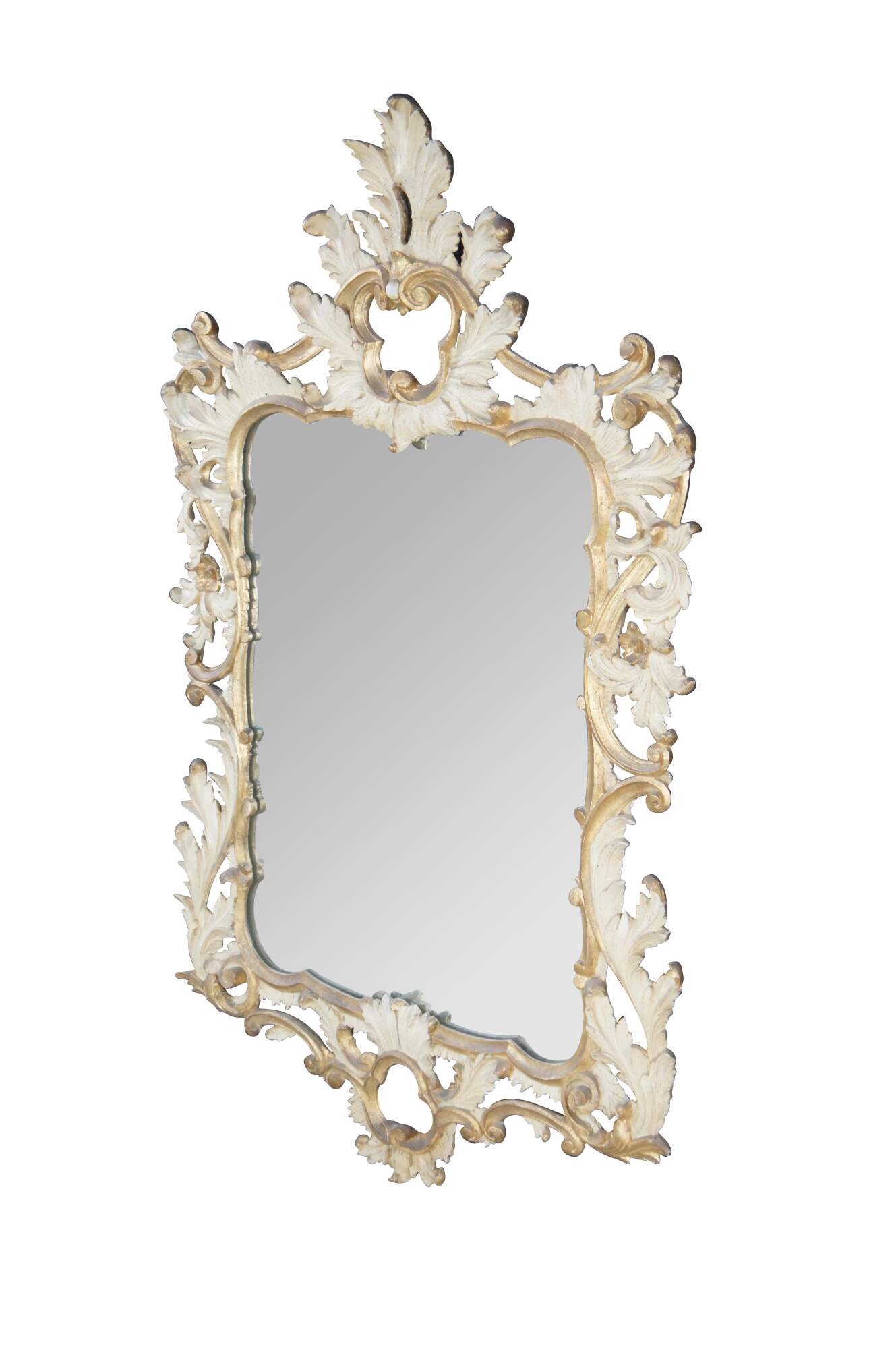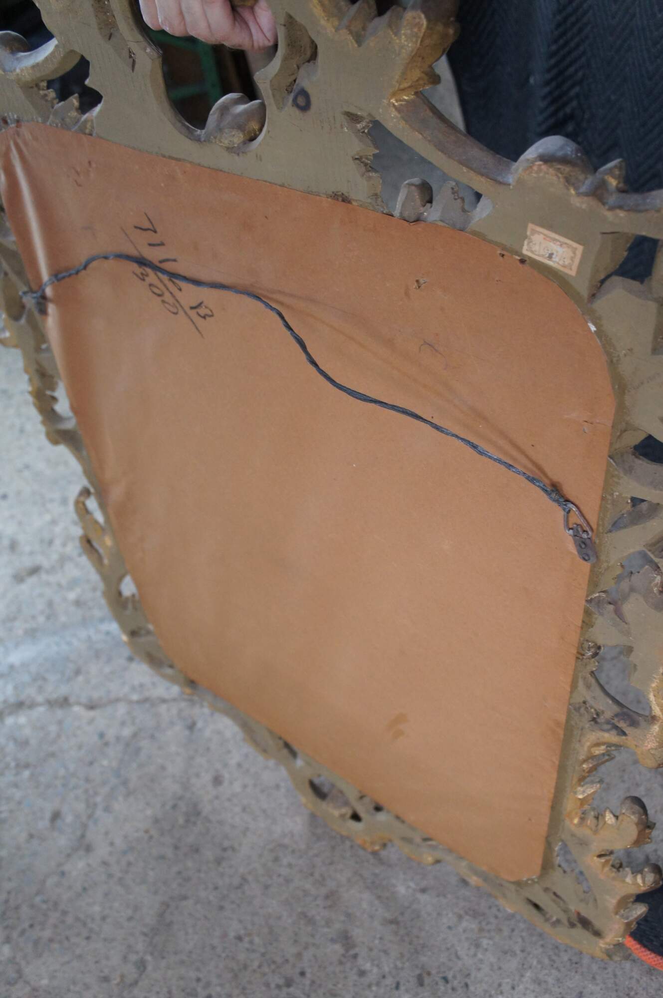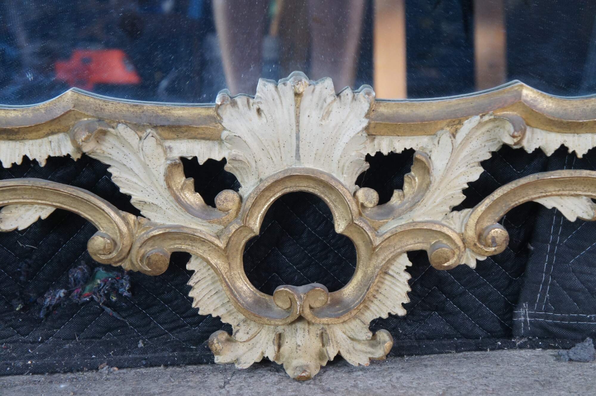 A large and impressive Italian Baroque Mirror. Features beautiful flowing acanthus leaf foliate detail. Features a two tone gold finish. Marked made in Italy along the backside. The perfect addition to any space.