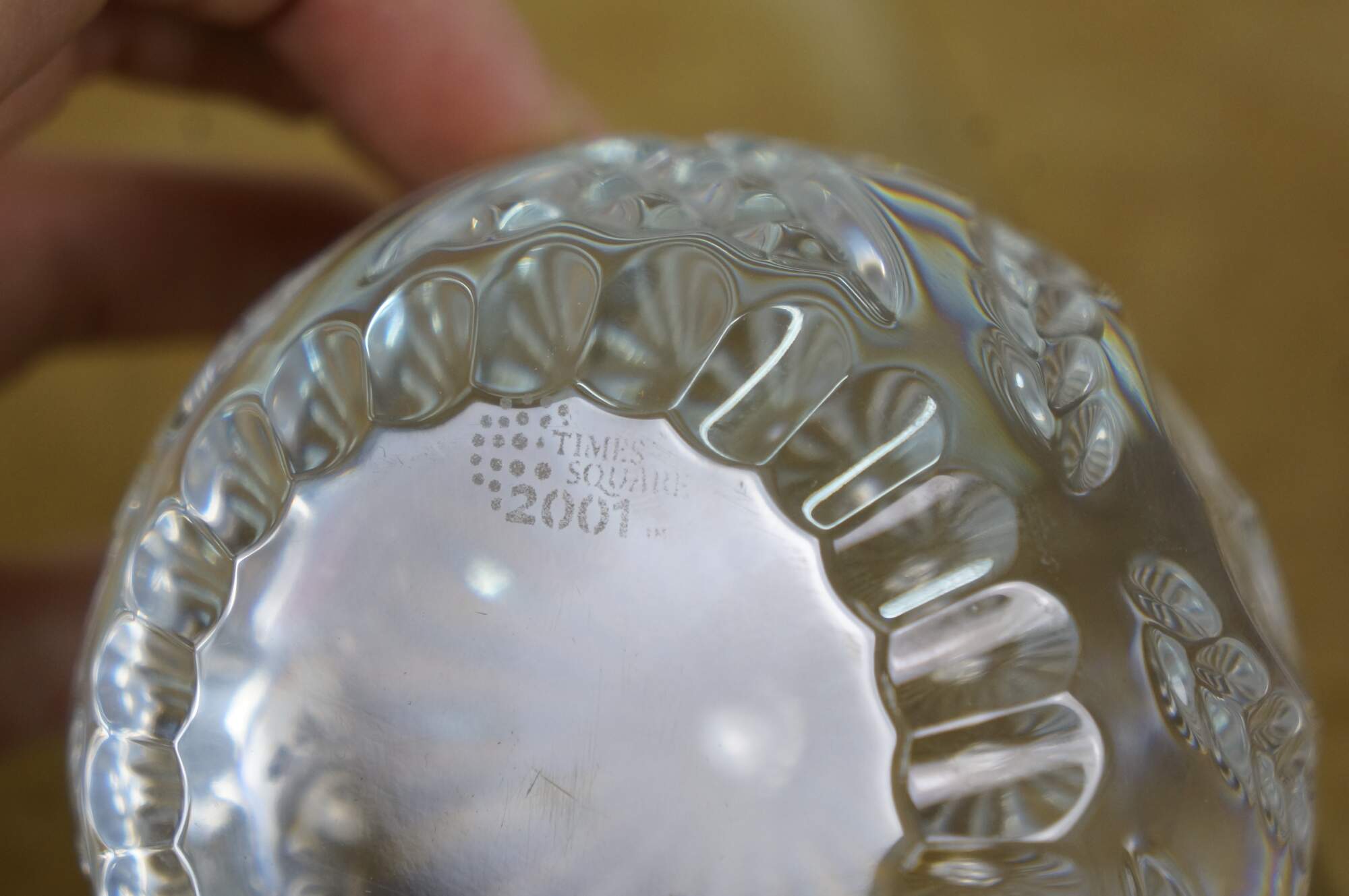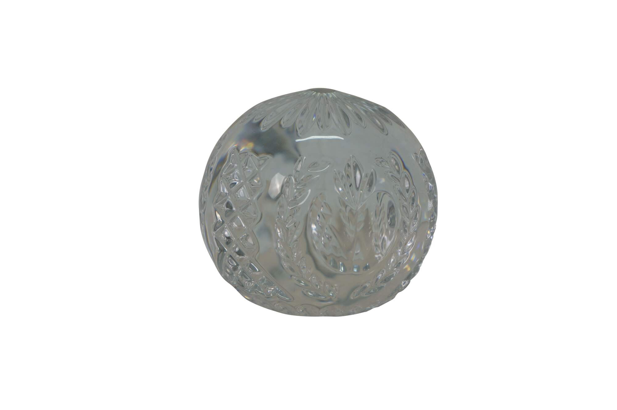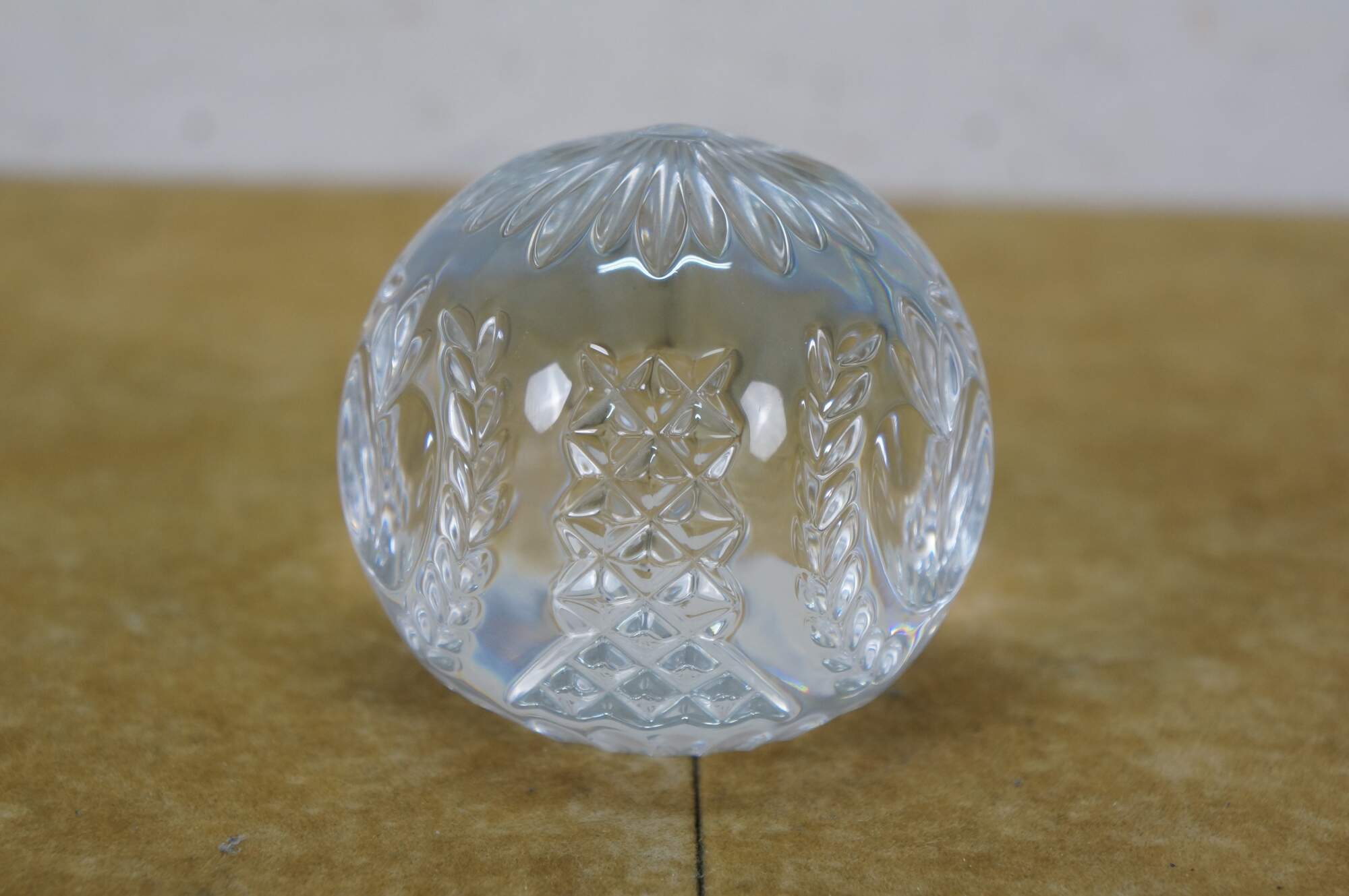 Vintage Waterford clear cut crystal 2001 Times Square "Hope for Abundance" New Year's paperweight. Ball / orb shaped figurine cut with apples framed in laurel wreaths.