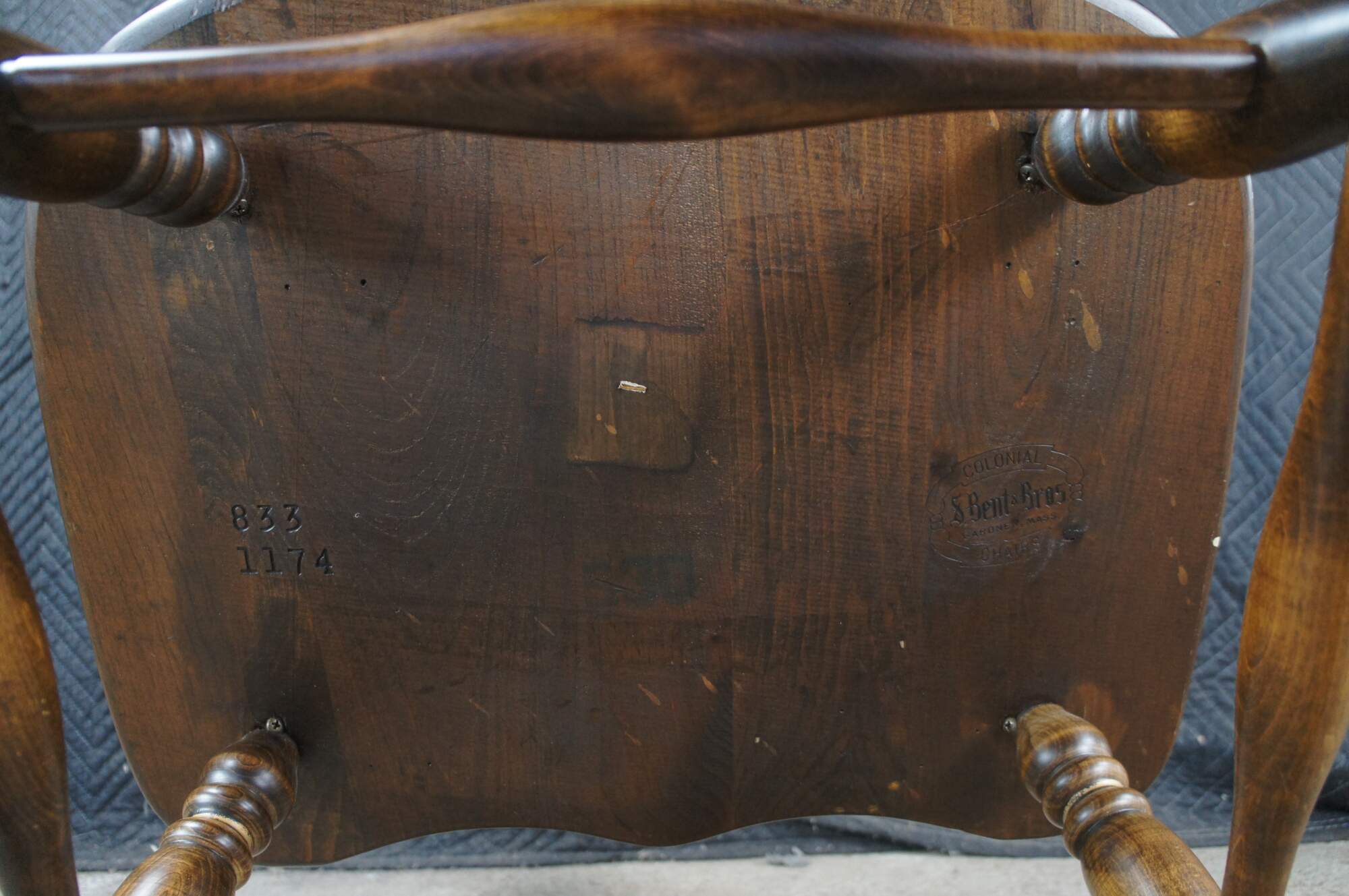 S. Bent and Brothers was known for producing well-made, high-quality furniture. They specialized in the style known as “Colonial Revival.” The two most common primary woods are maple and ash stained to look like oak. S Bent & Brothers were known for their well-made chairs, especially the Windsor type. They also produced dining room tables and other types of household furnishings. From the number of chairs I found in auction results, S Bent and Brothers must have made a great many Alumni chairs for a wide range of colleges and universities.