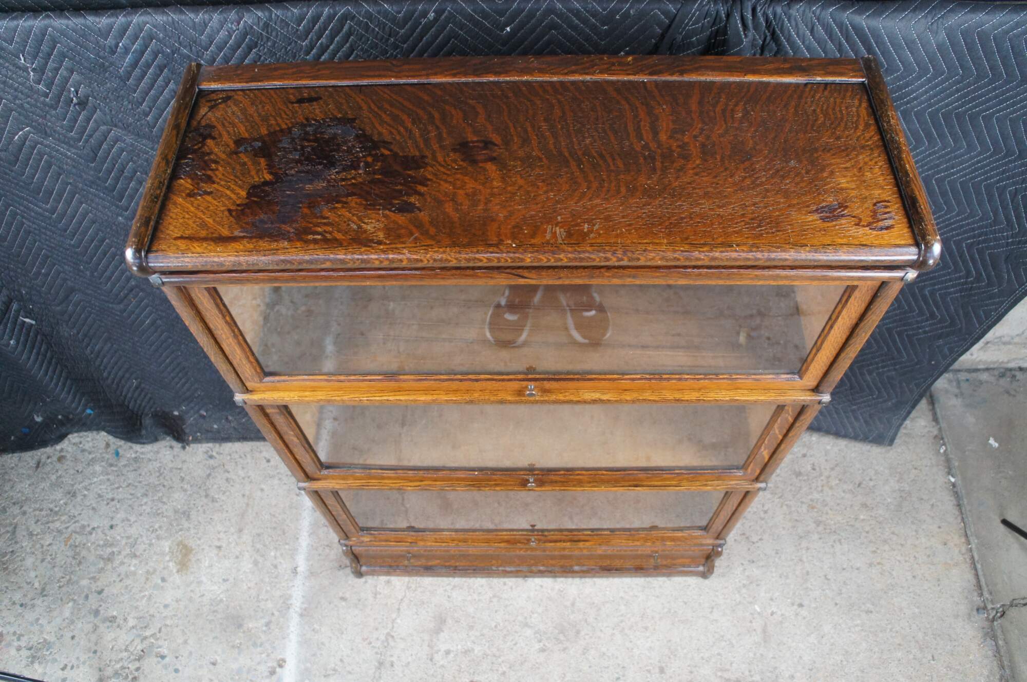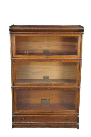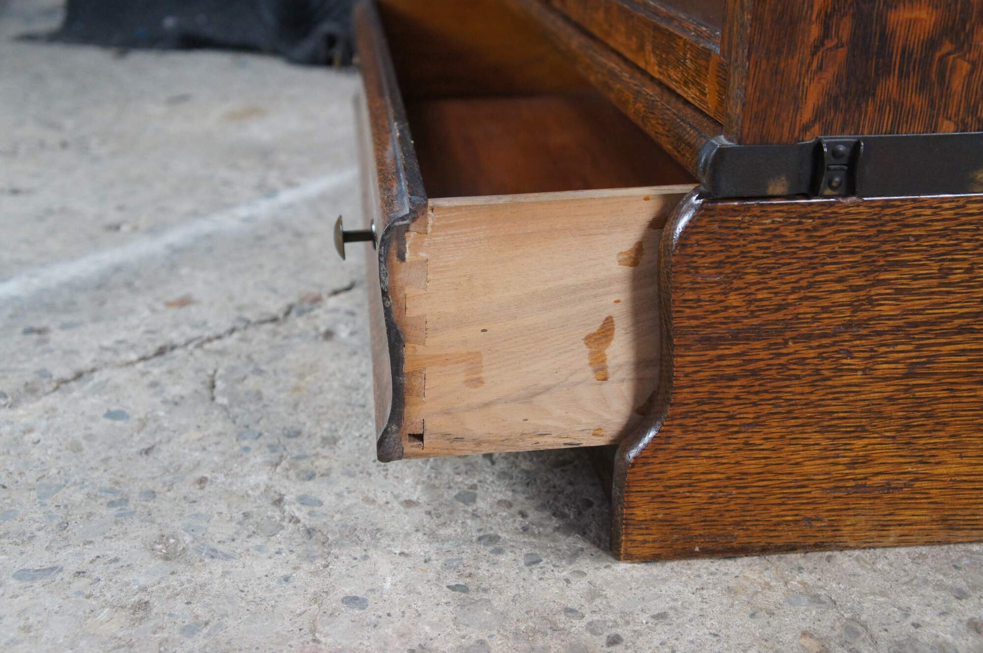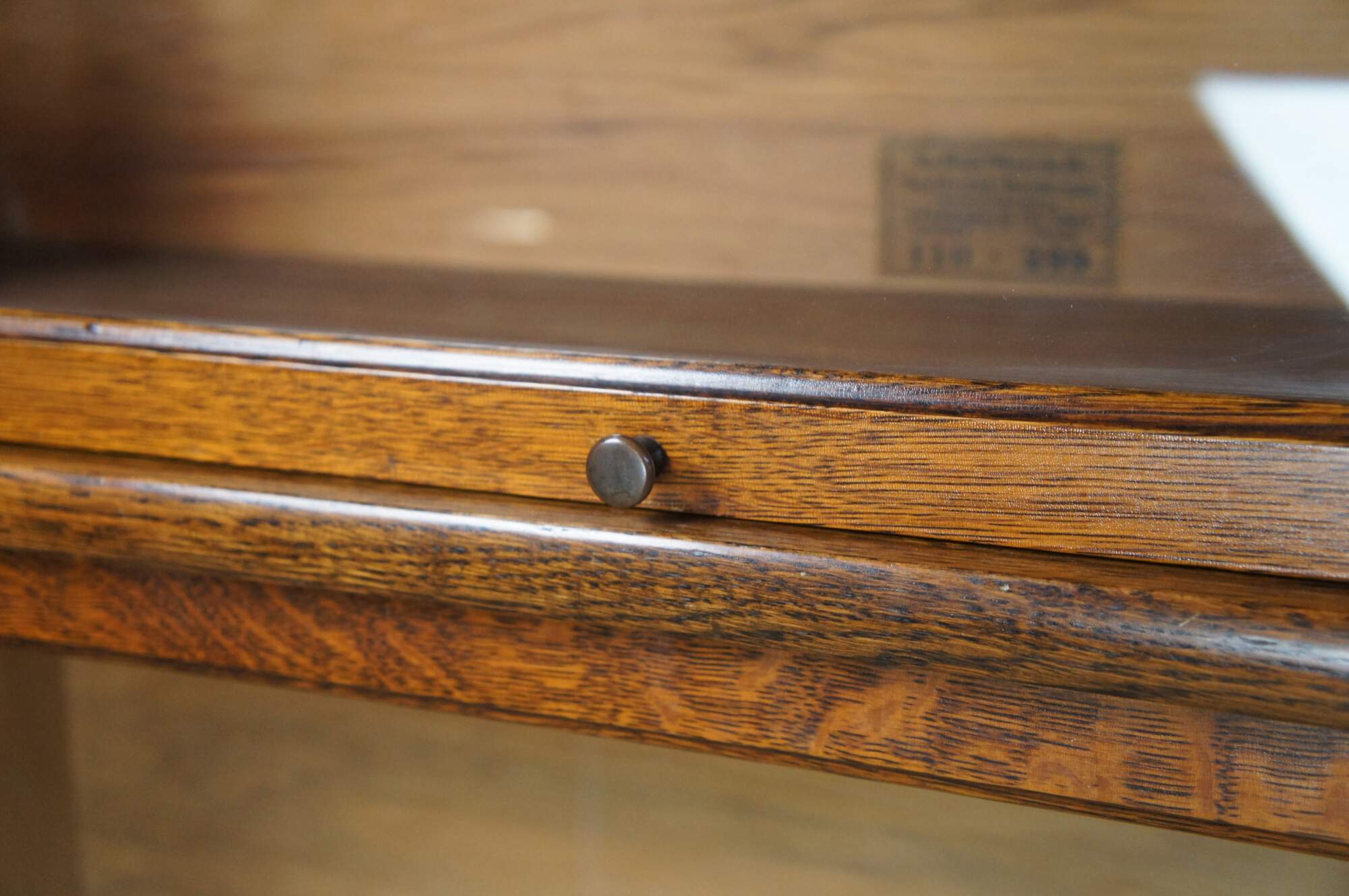 Antique 5 piece Globe Wernicke library lawyer barrister bookshelf / bookcase. Made of quartersawn oak featuring Mission styling with three curio bookshelves and lower drawer. Pattern 110, 112, D12 Grade 299.