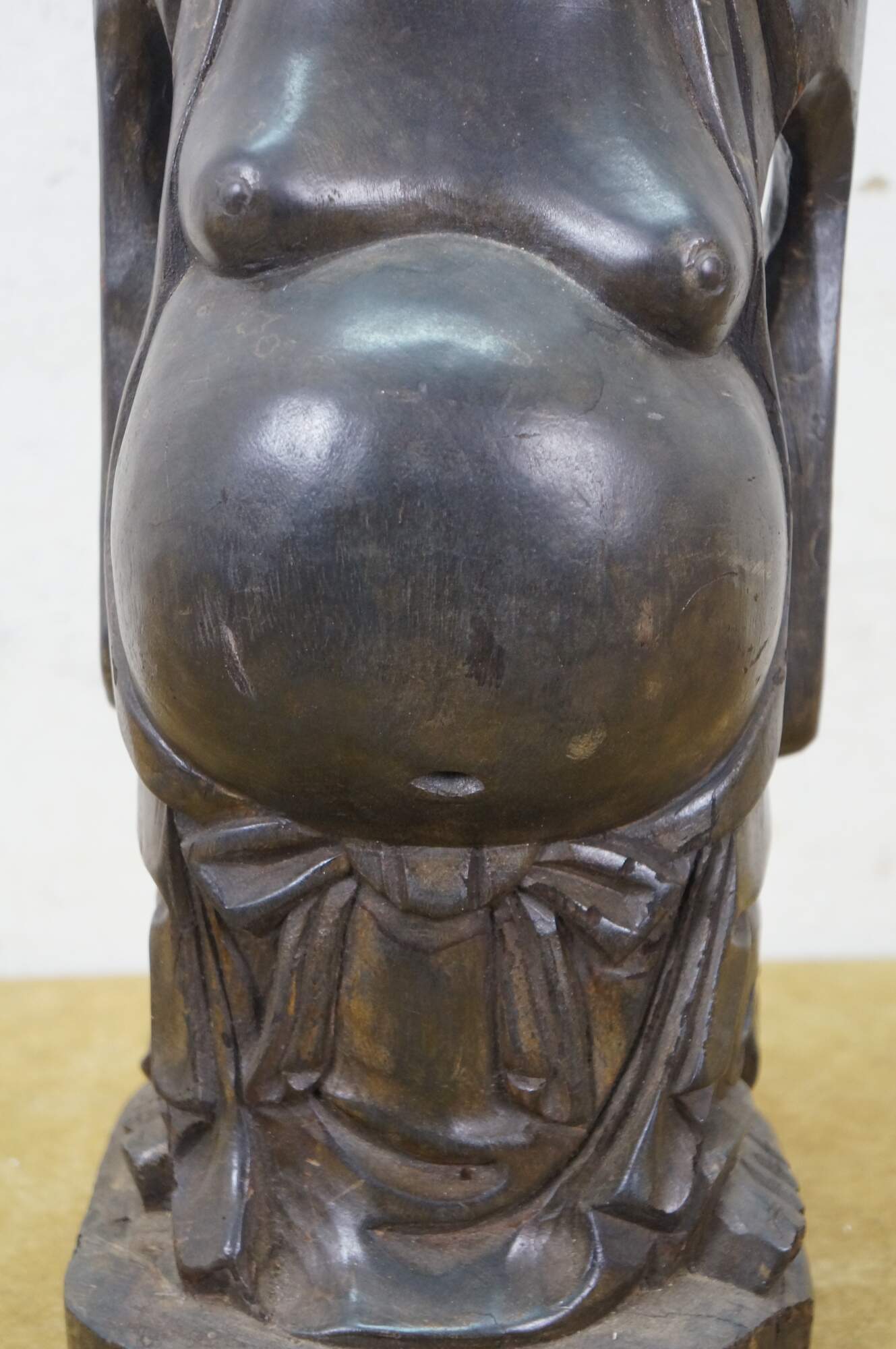 Vintage Japanese Hotei Laughing Buddha Carved Wood Statue Sculpture 18"