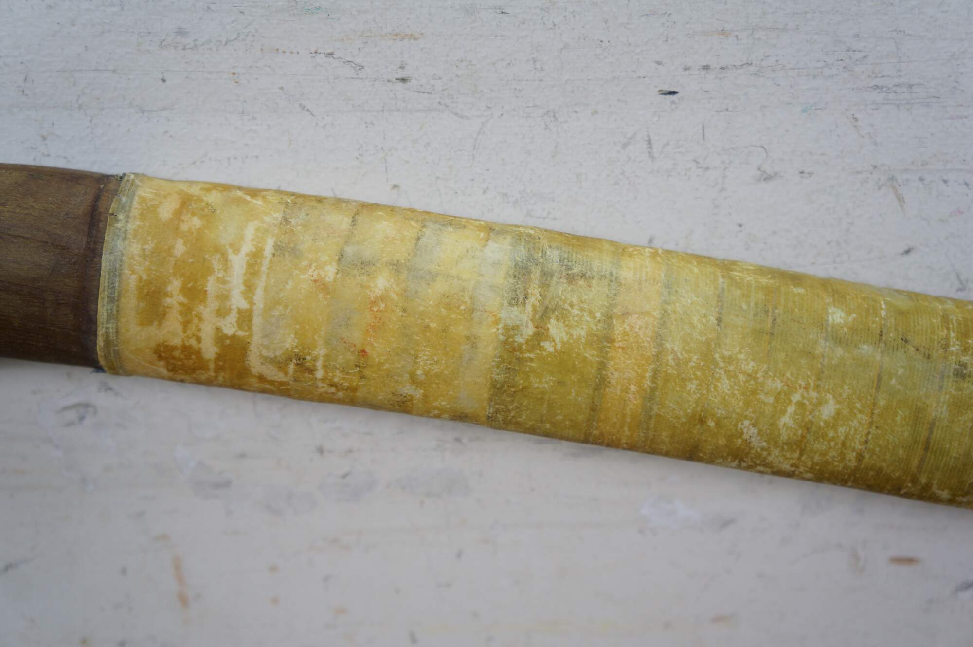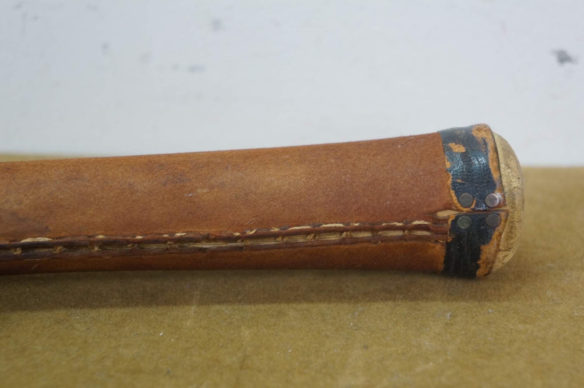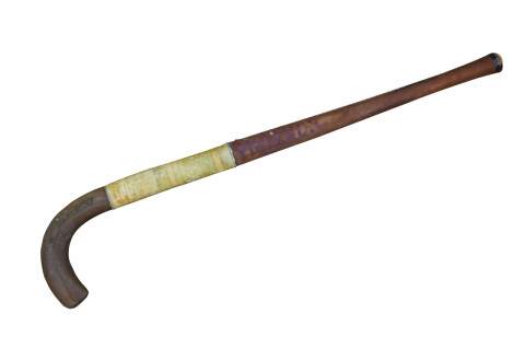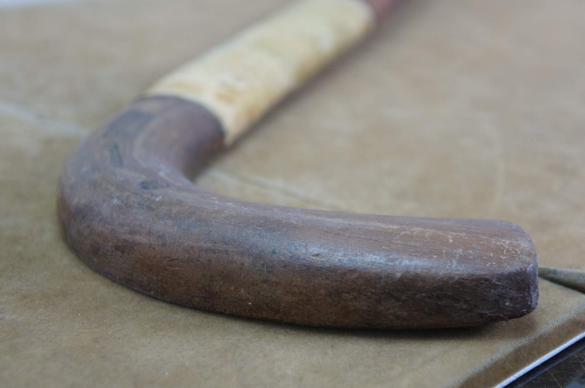 Vintage 20th century wooden field hockey stick with leather wrapped handle.