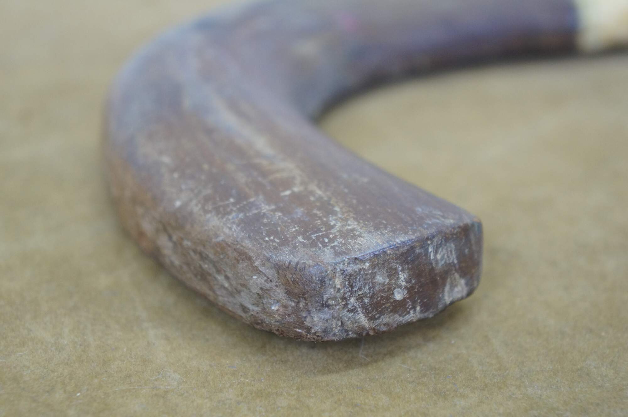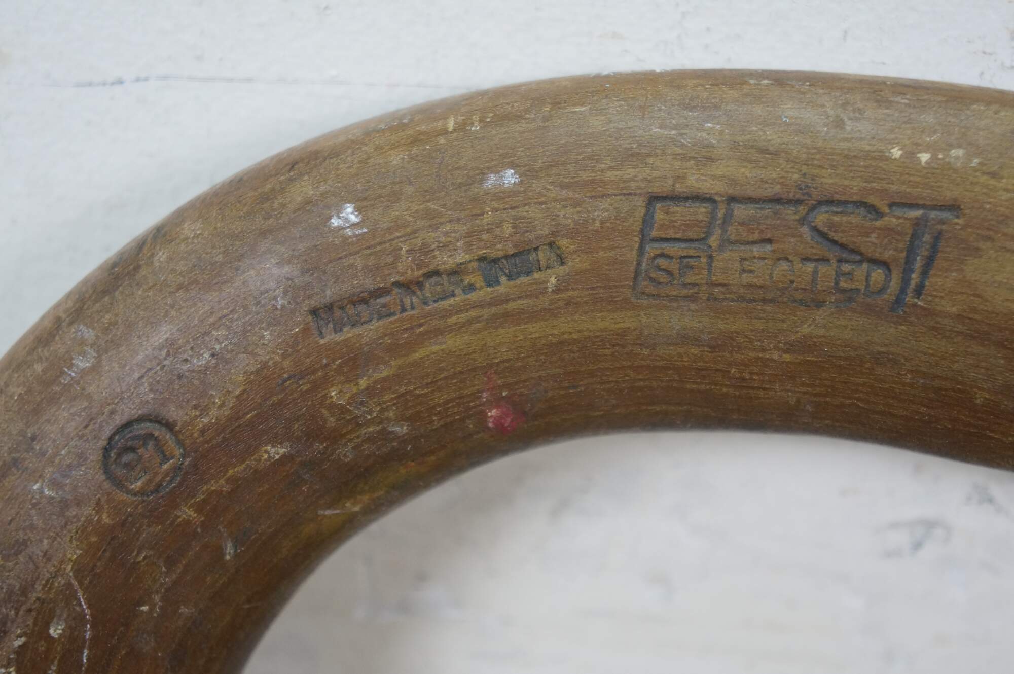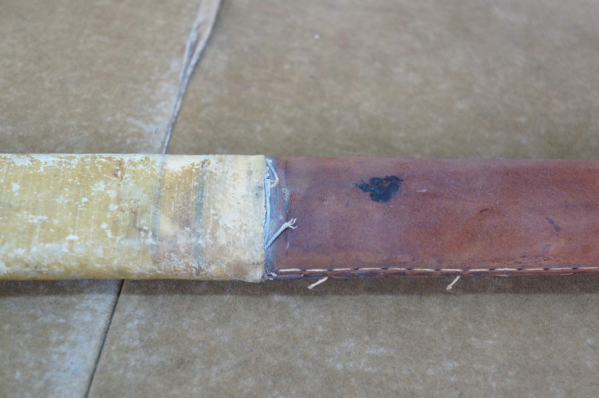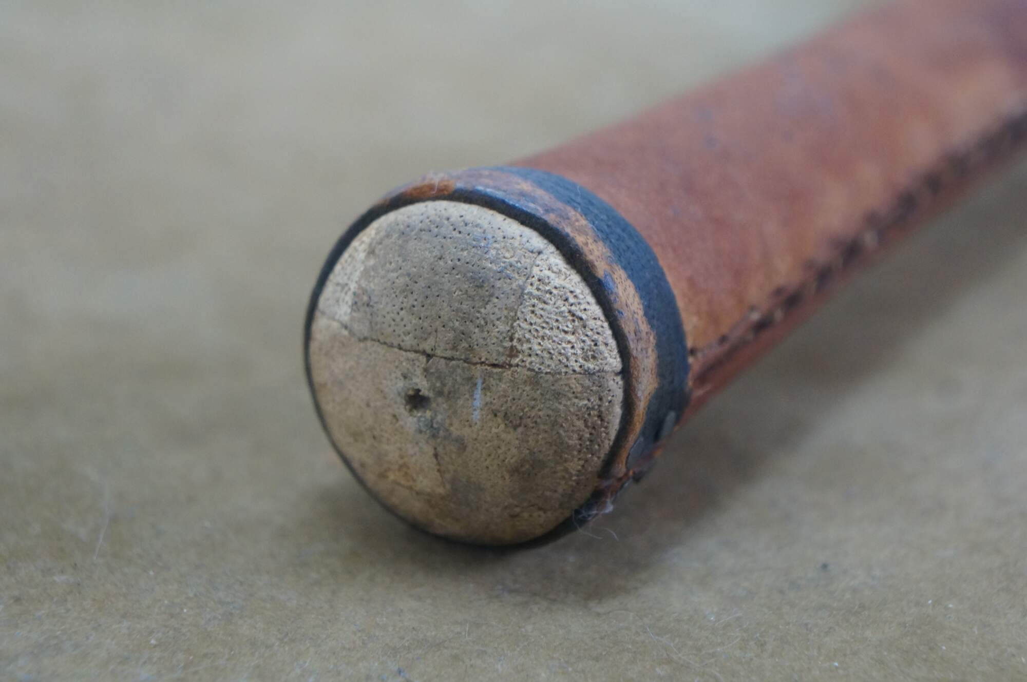 Vintage 20th century wooden field hockey stick with leather wrapped handle.