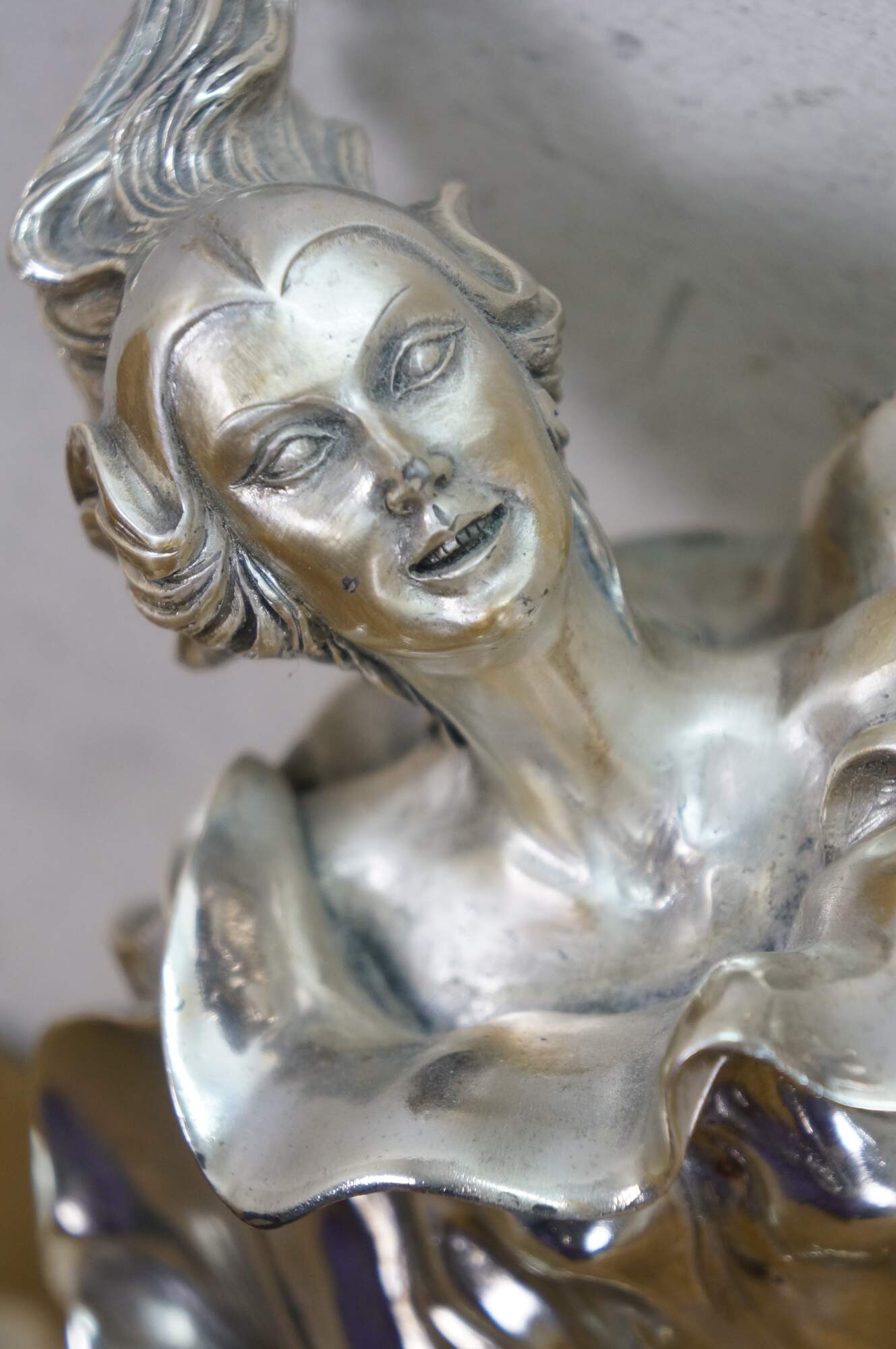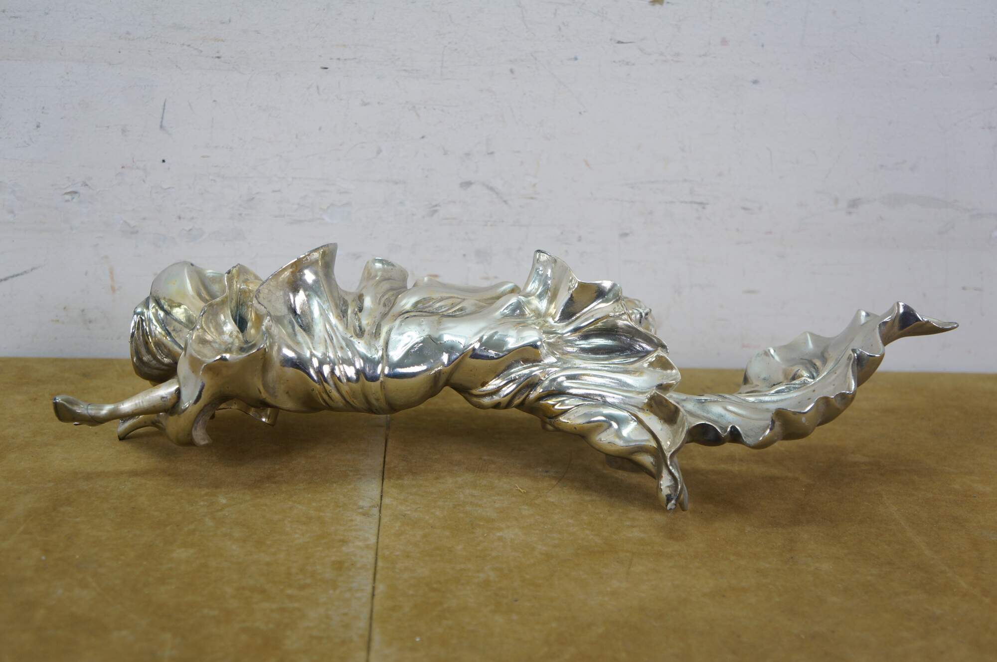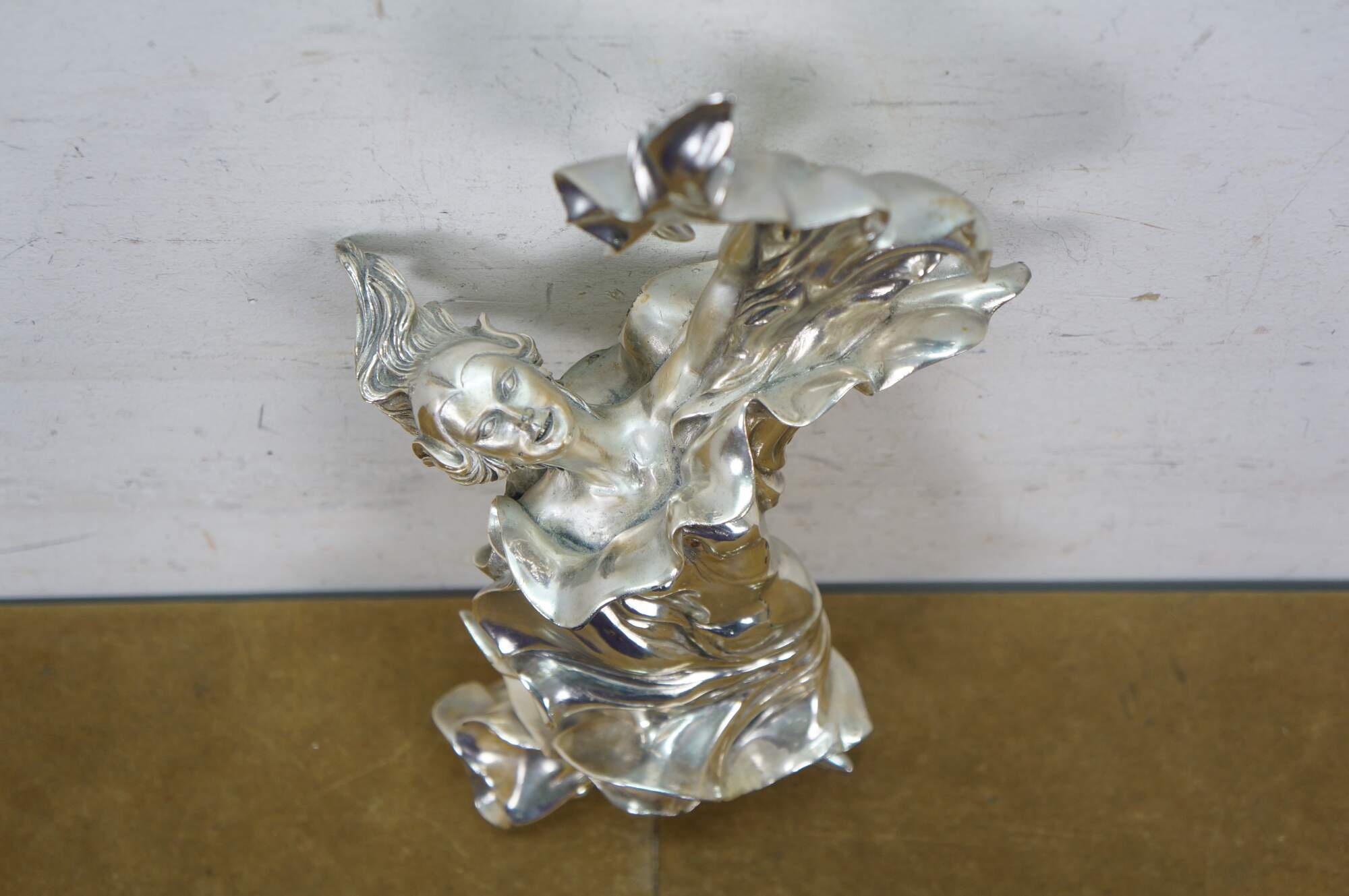 Large vintage Italian Art Nouveau statue / sculpture featuring a woman dancing in billowing fabric. Cast in resin and clad in 925 sterling silver. Marked and signed on base.