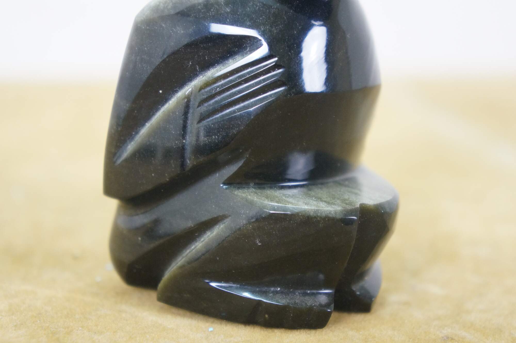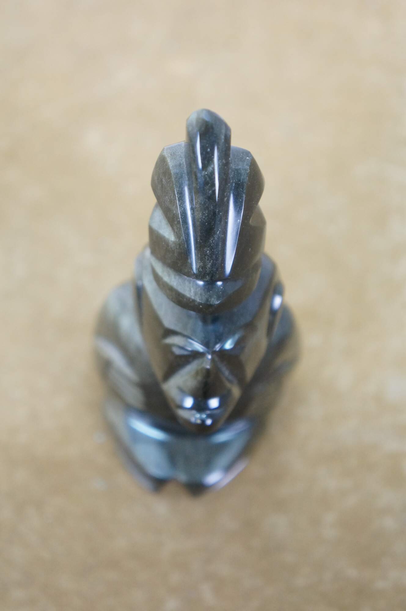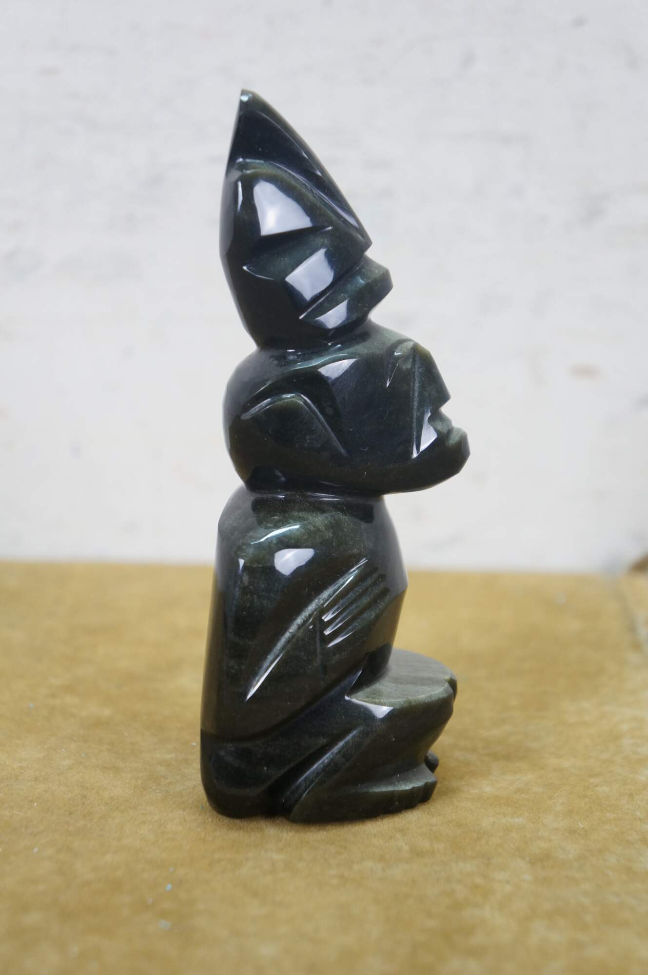 Late 20th century hand carved black obsidian figurine in the shape of a Mayan / Aztec seated figure with headdress.