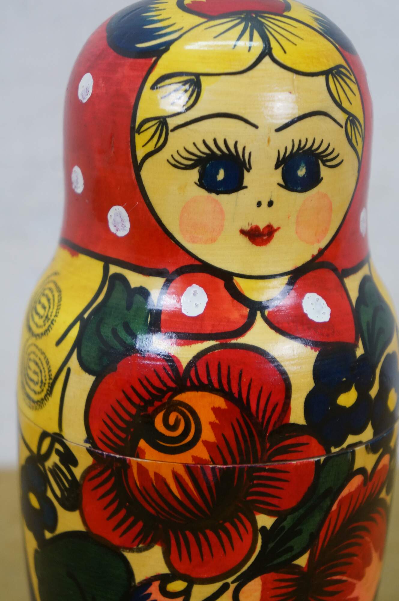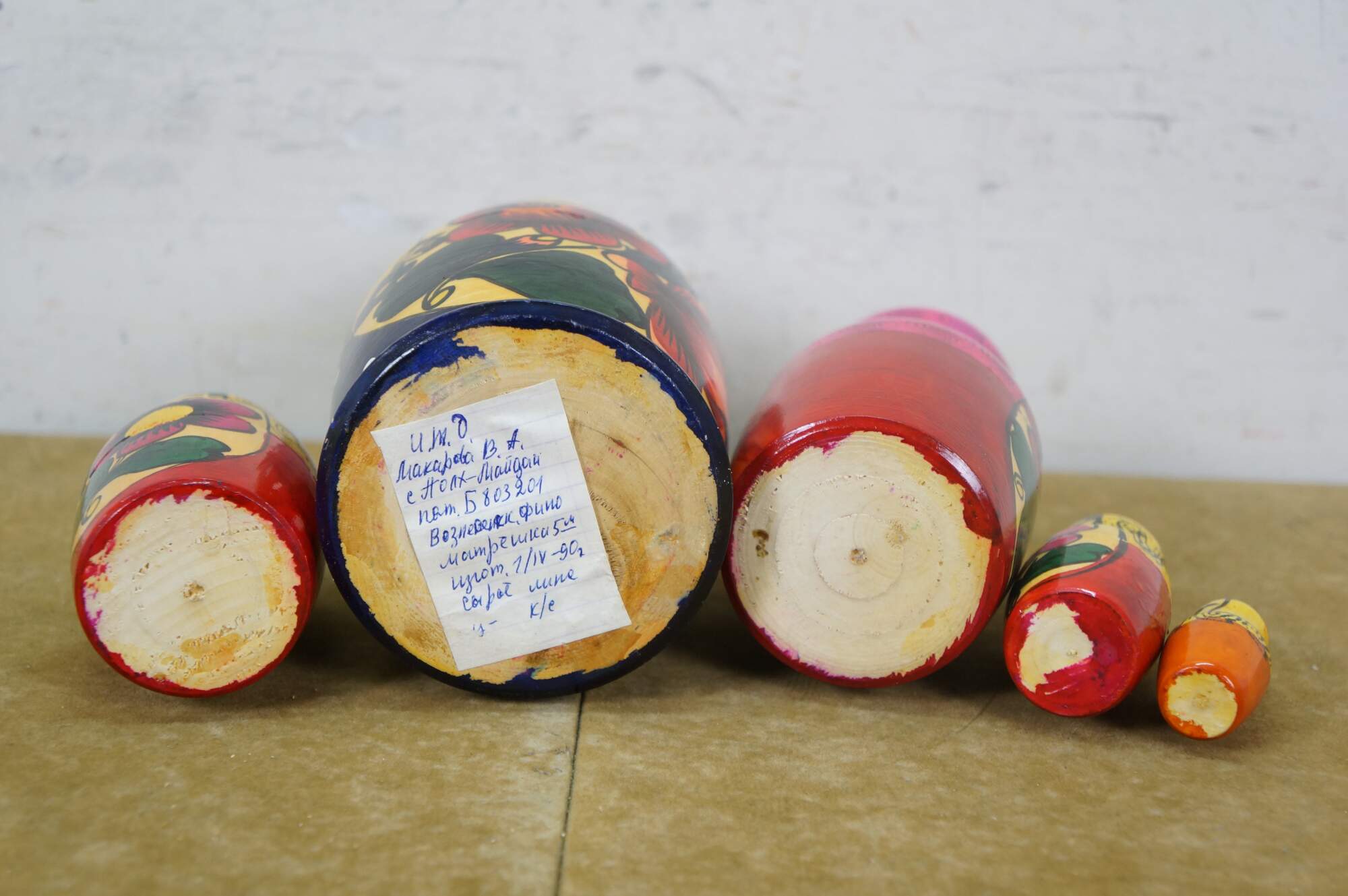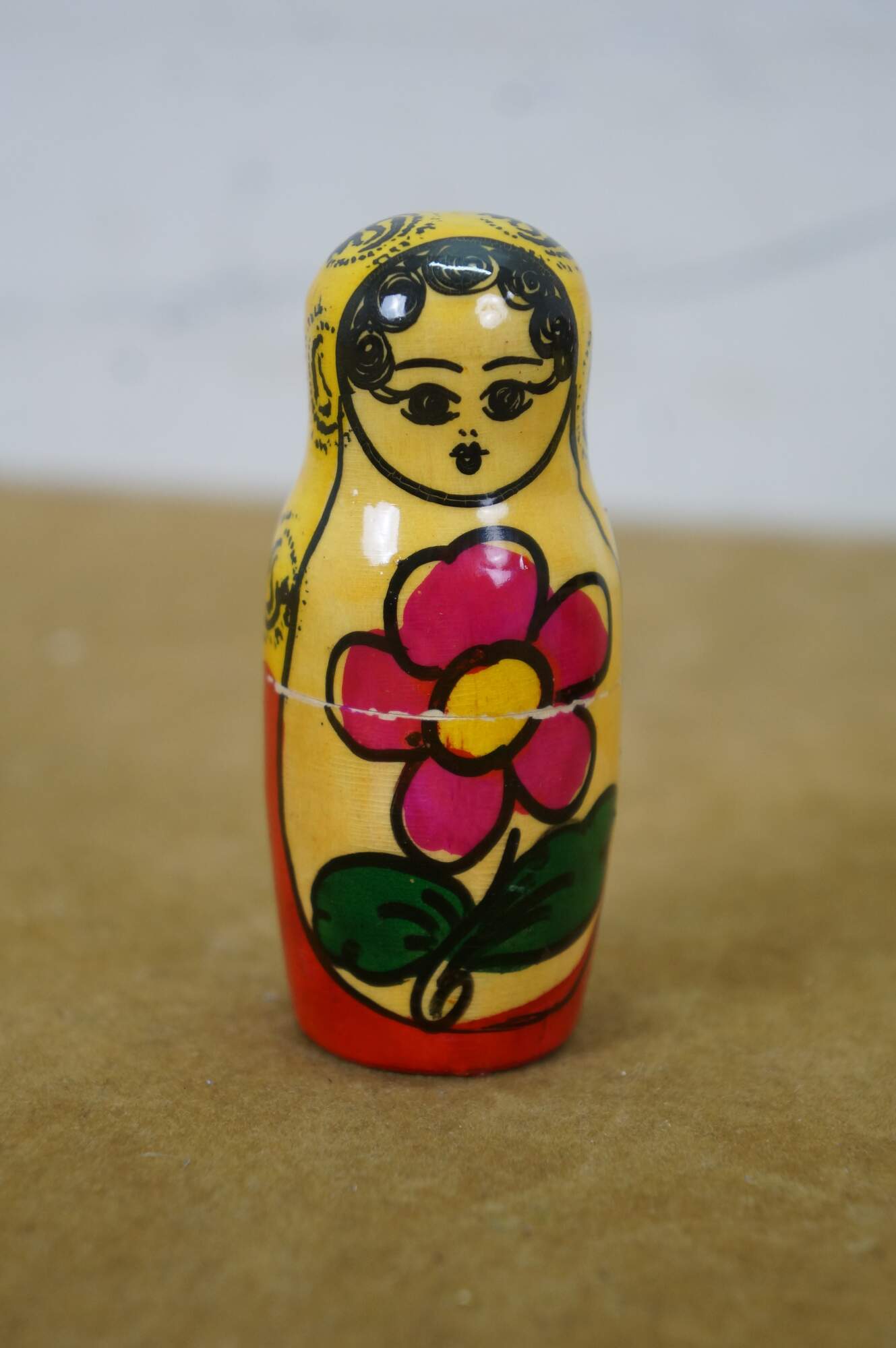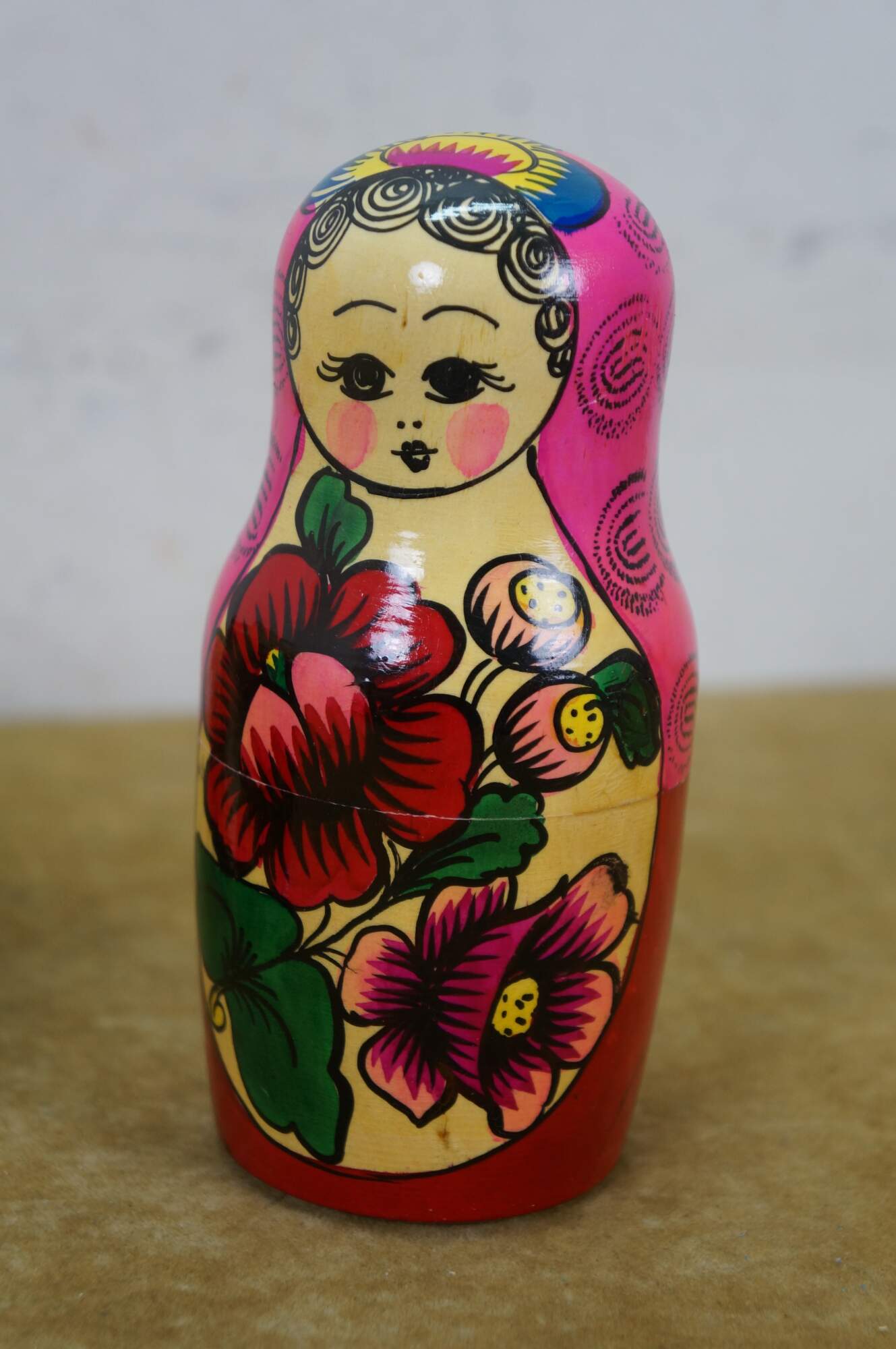 Mid to late 20th century Russian wooden matryoshka / nesting doll with five graduated folk art styled figures.