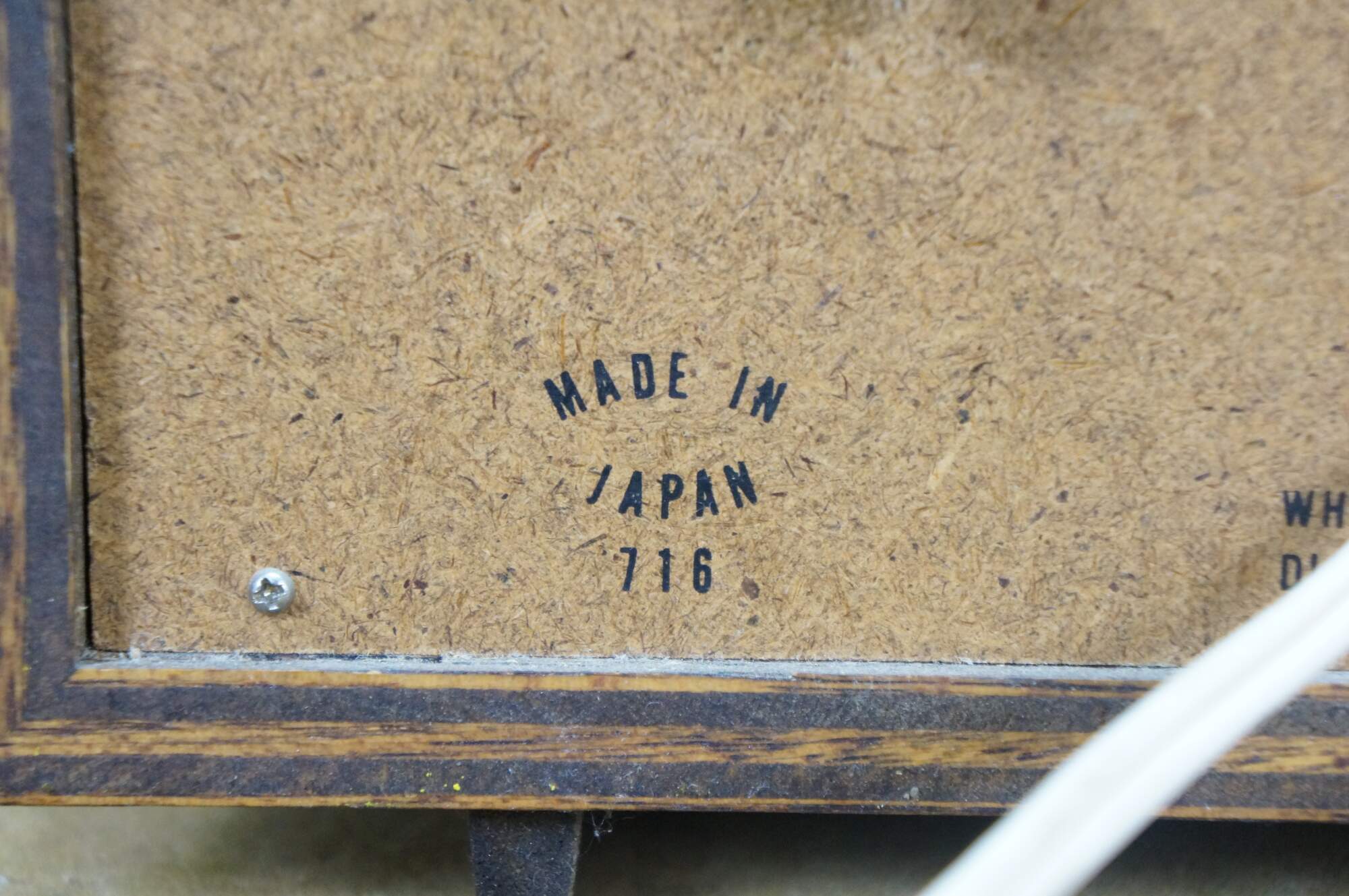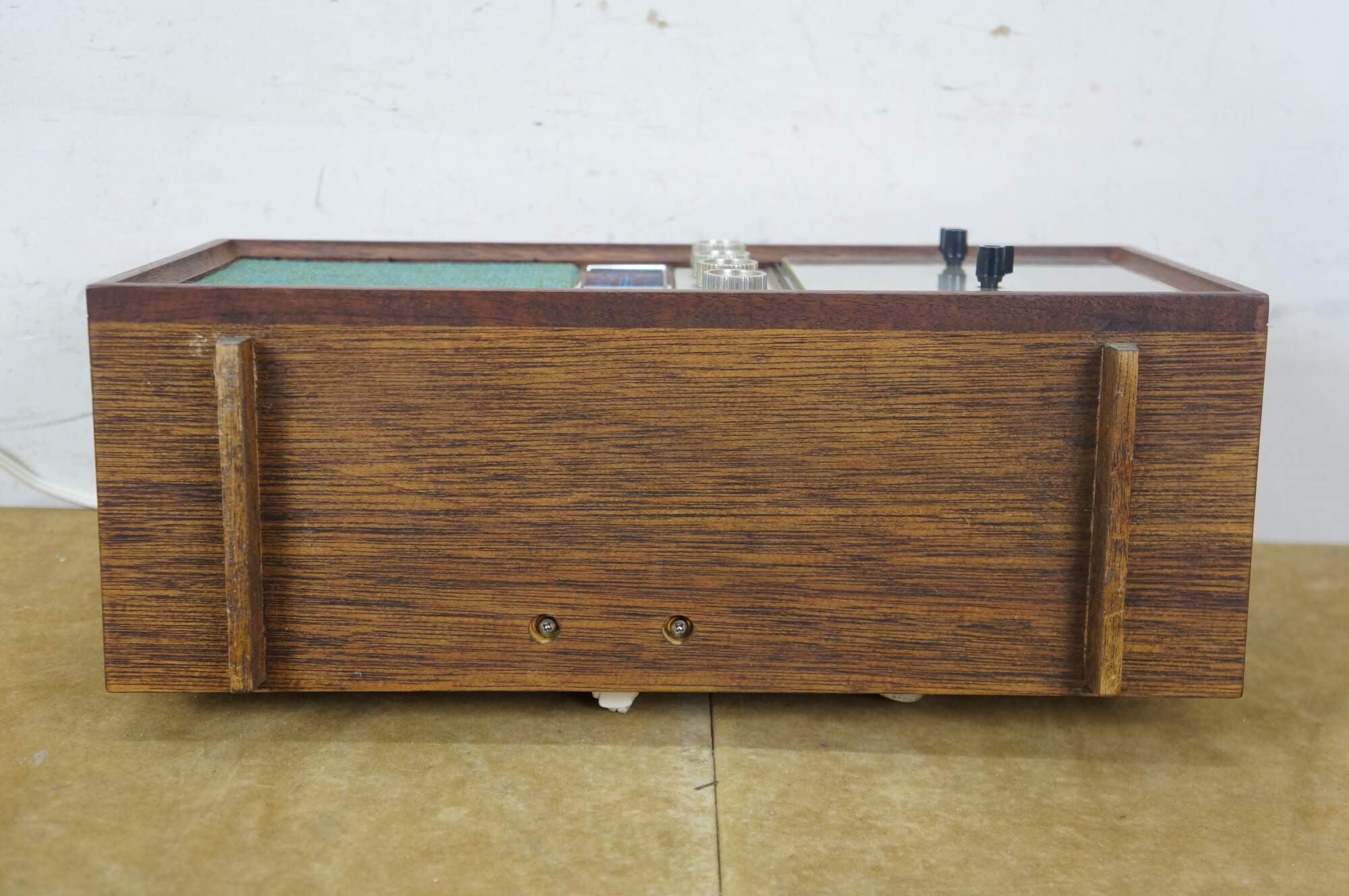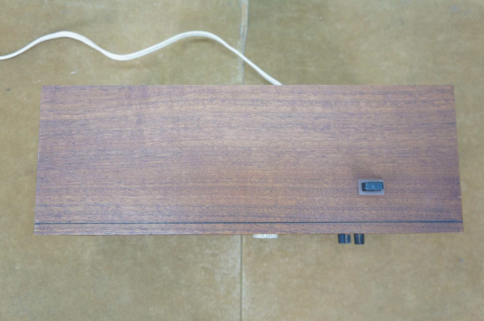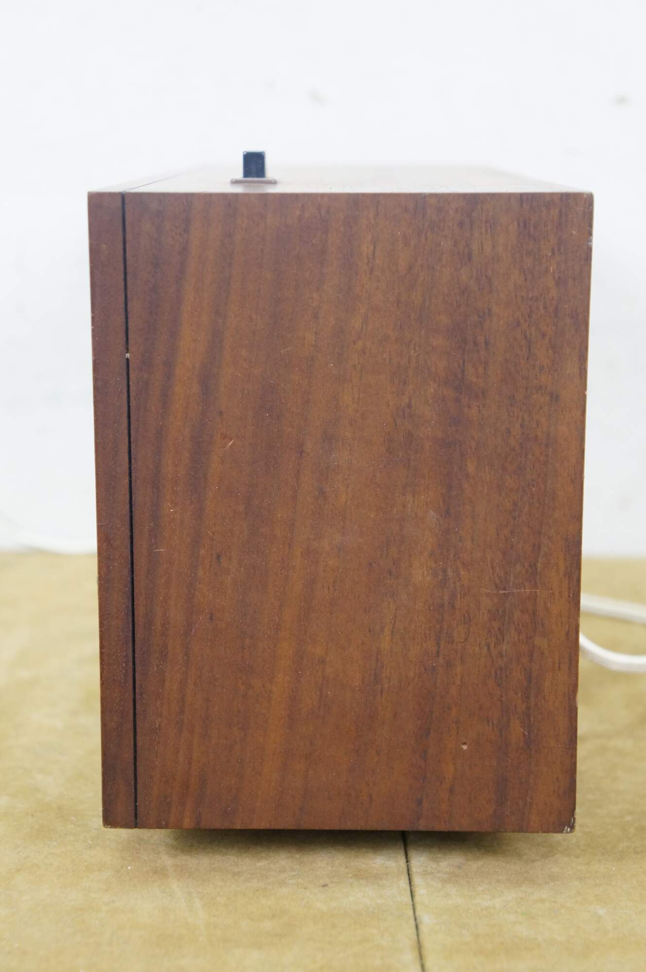 Mid 20th century LRE Lafayette Solid State AM/FM electric alarm clock radio with Telechron movement. 105-120V AC - 60 Cycles - 10 Watts. Made in Japan - 716.