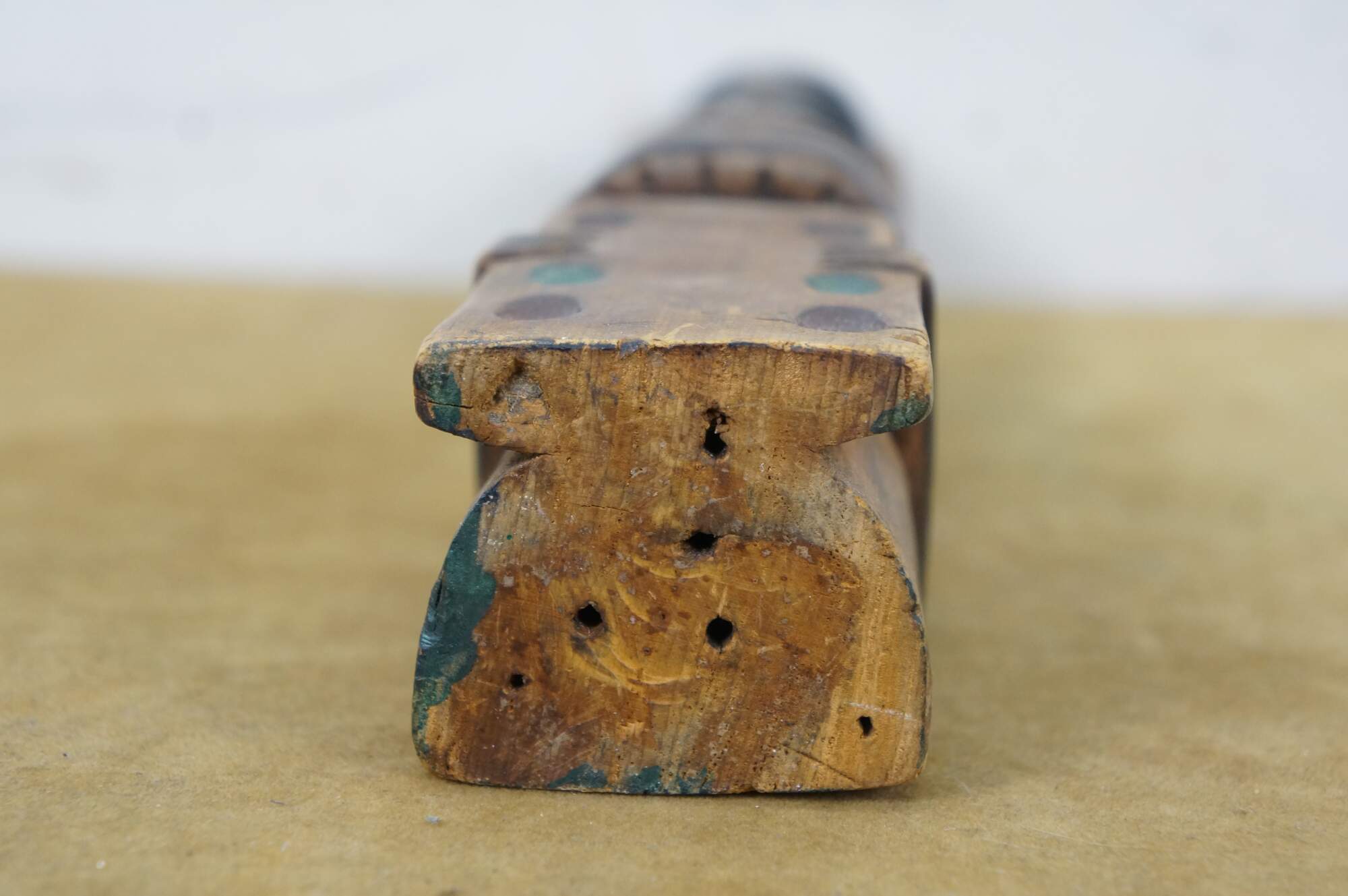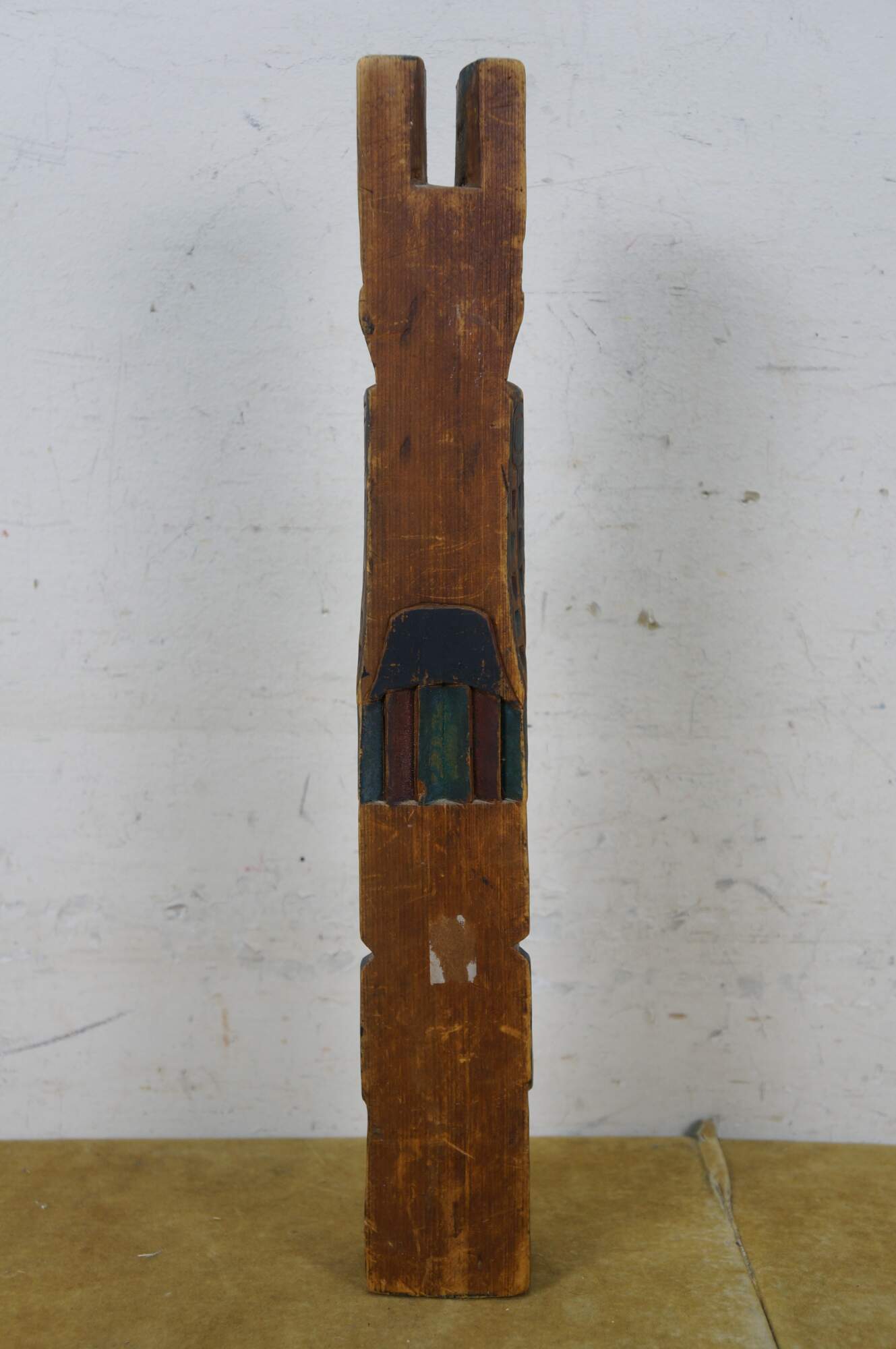 good vintage condition, wear and distressing from age, paint loss, chipping, splitting, holes.