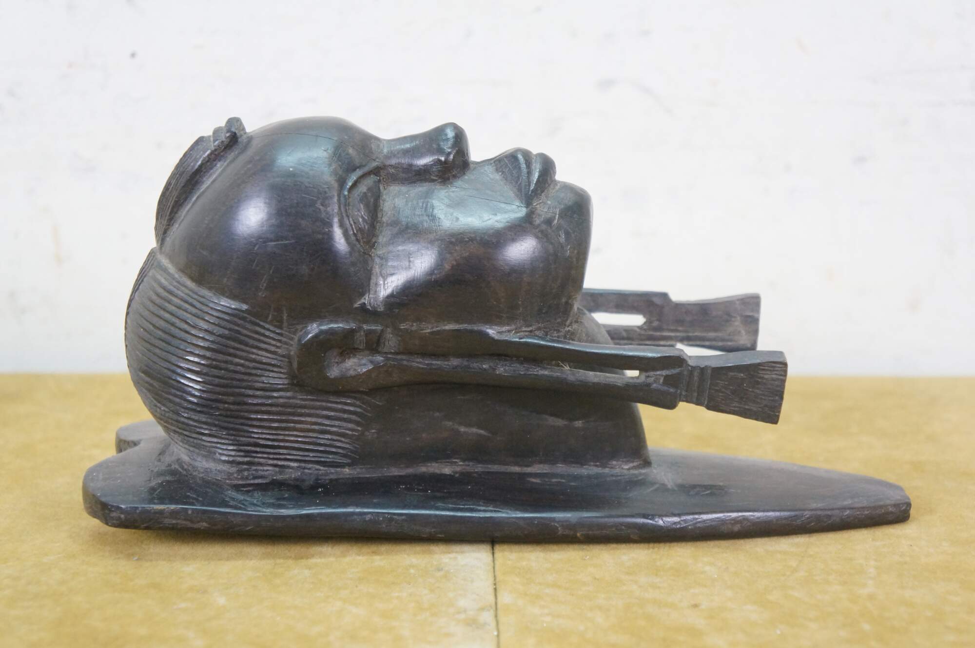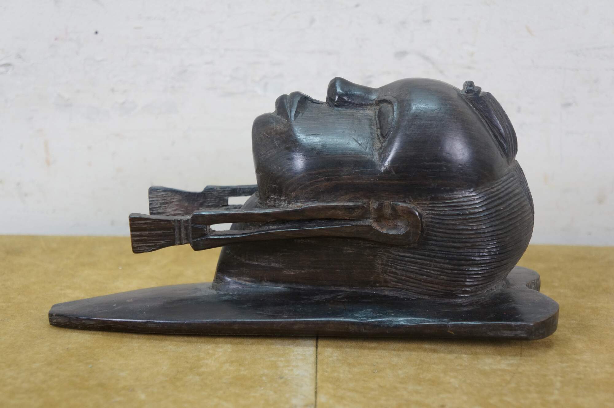 Vintage 20th century hand carved blackwood wall hanging bust - African folk art figure of a face with traditional hair style.