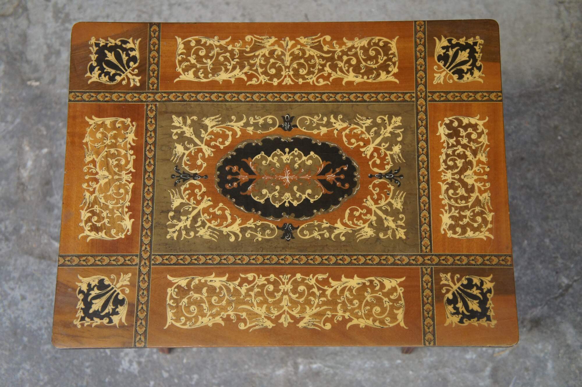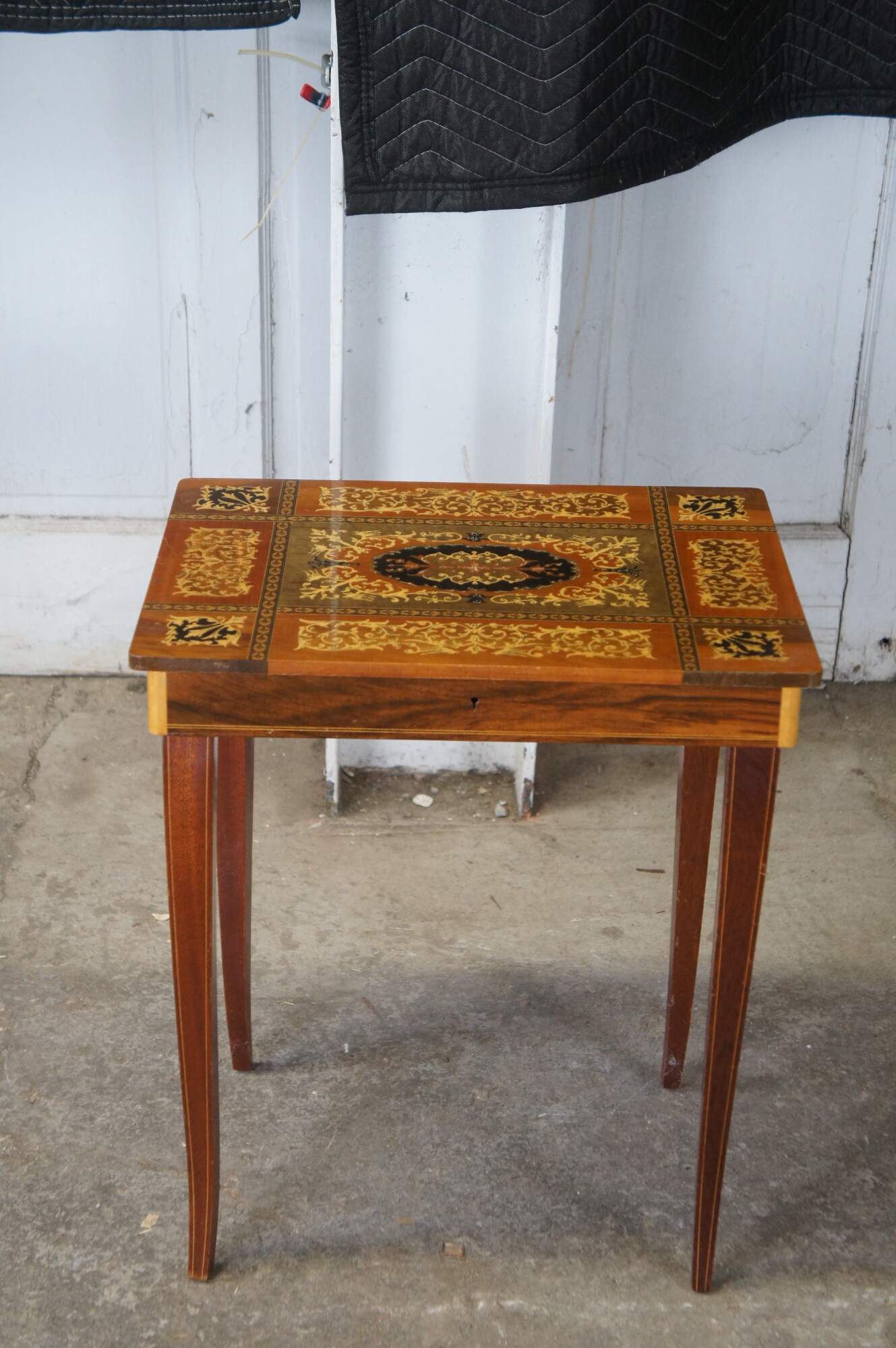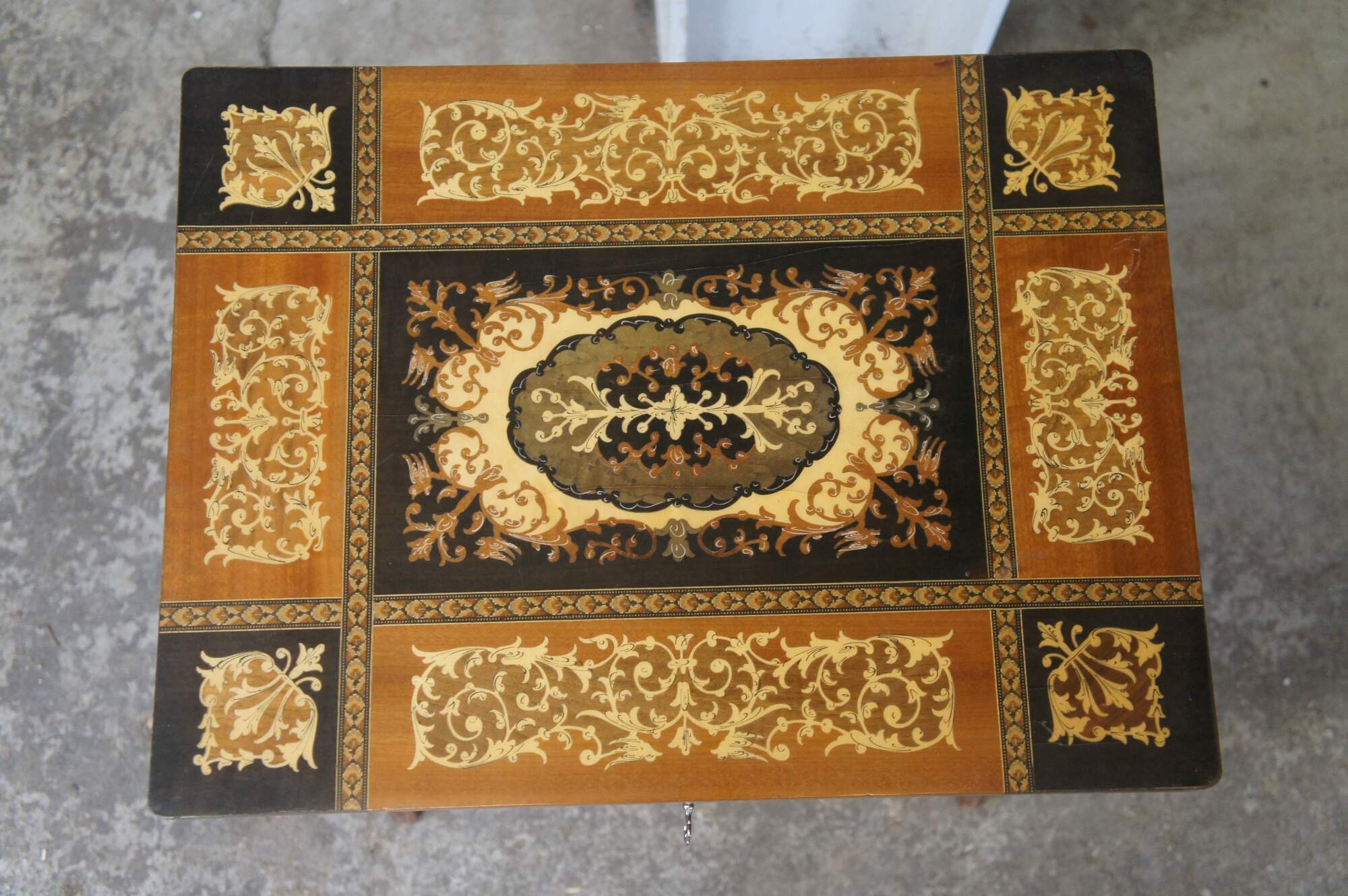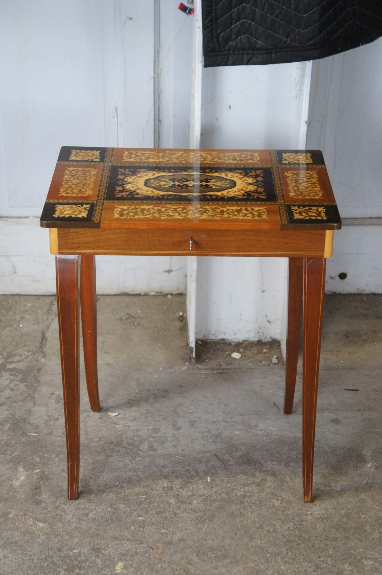 2 Italian Inlaid Marquetry Musical Side Tables Pair Santa Lucia Music Box
