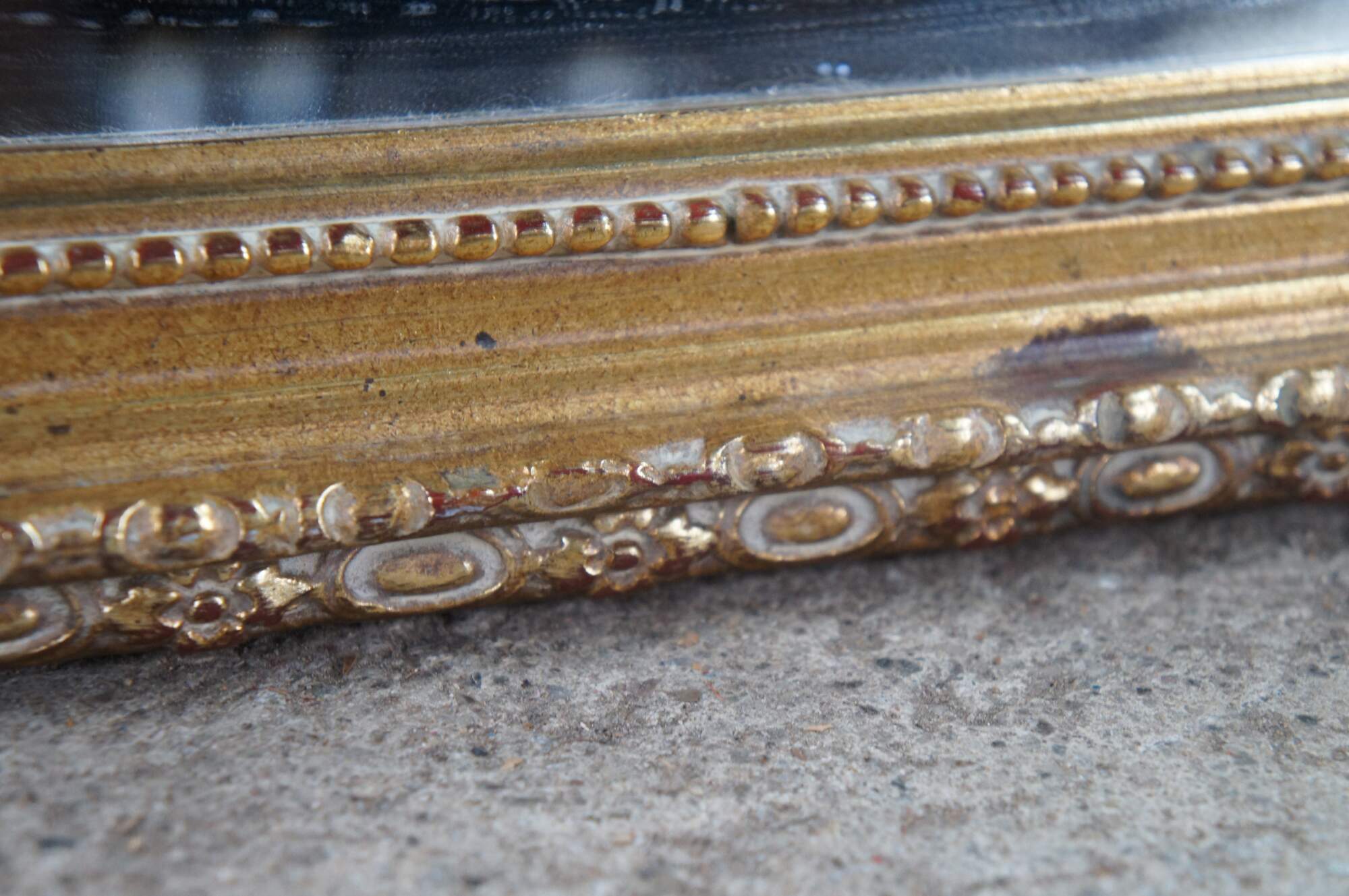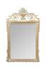 Late 20th Century Louis XVI Style Mirror by John Richards. Features a rectangular giltwood frame with beveled glass plate. The crown showcases a woven basket with flowers flanked by scrolling acanthus leaf. The mirror is bordered by beading and an egg and dart pattern. Marked John Richard along the backside 'For Those Who Want The Finese' #435, 1998