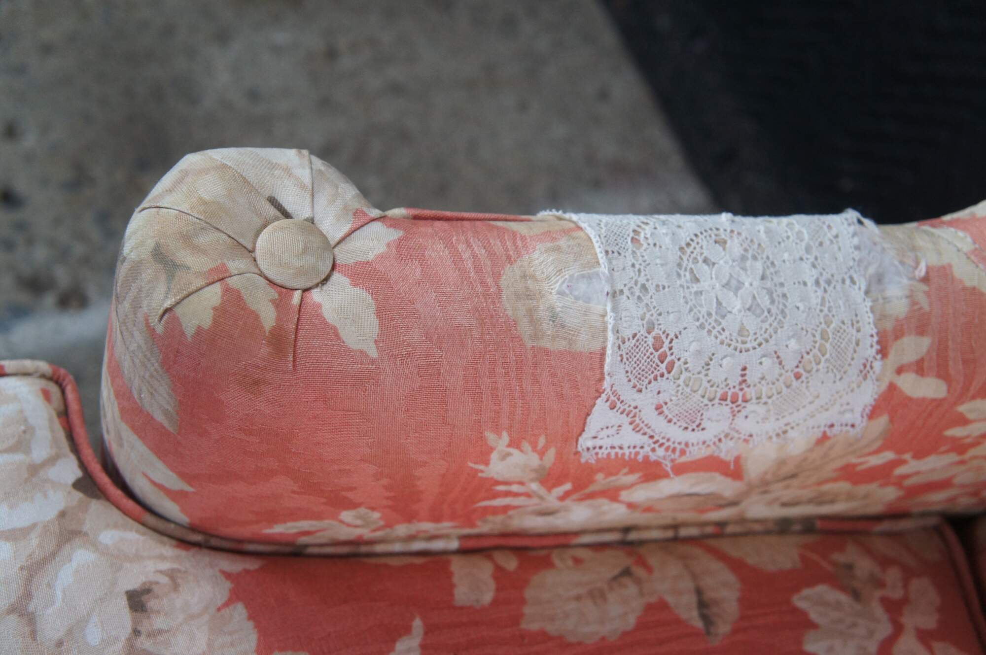 Structurally solid, wear from use, ripping to arms covered by doilies, fading, scuffing / finish loss to legs.