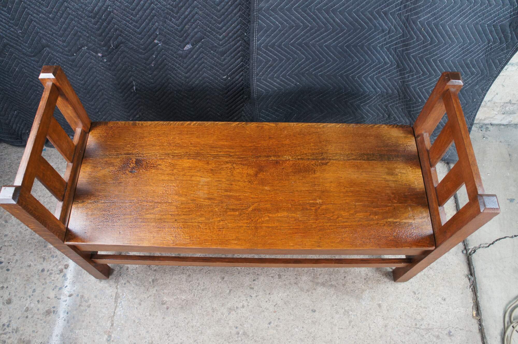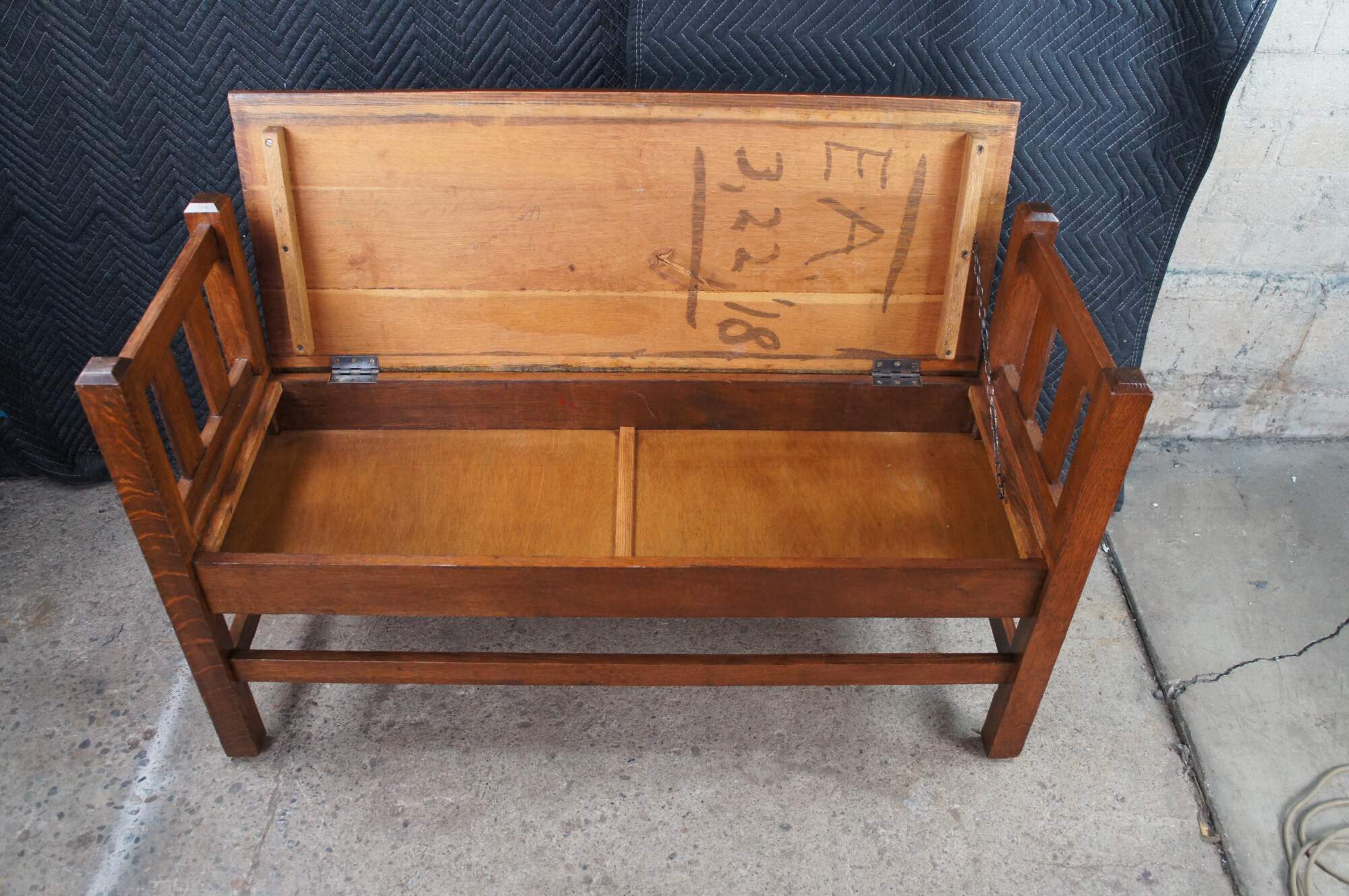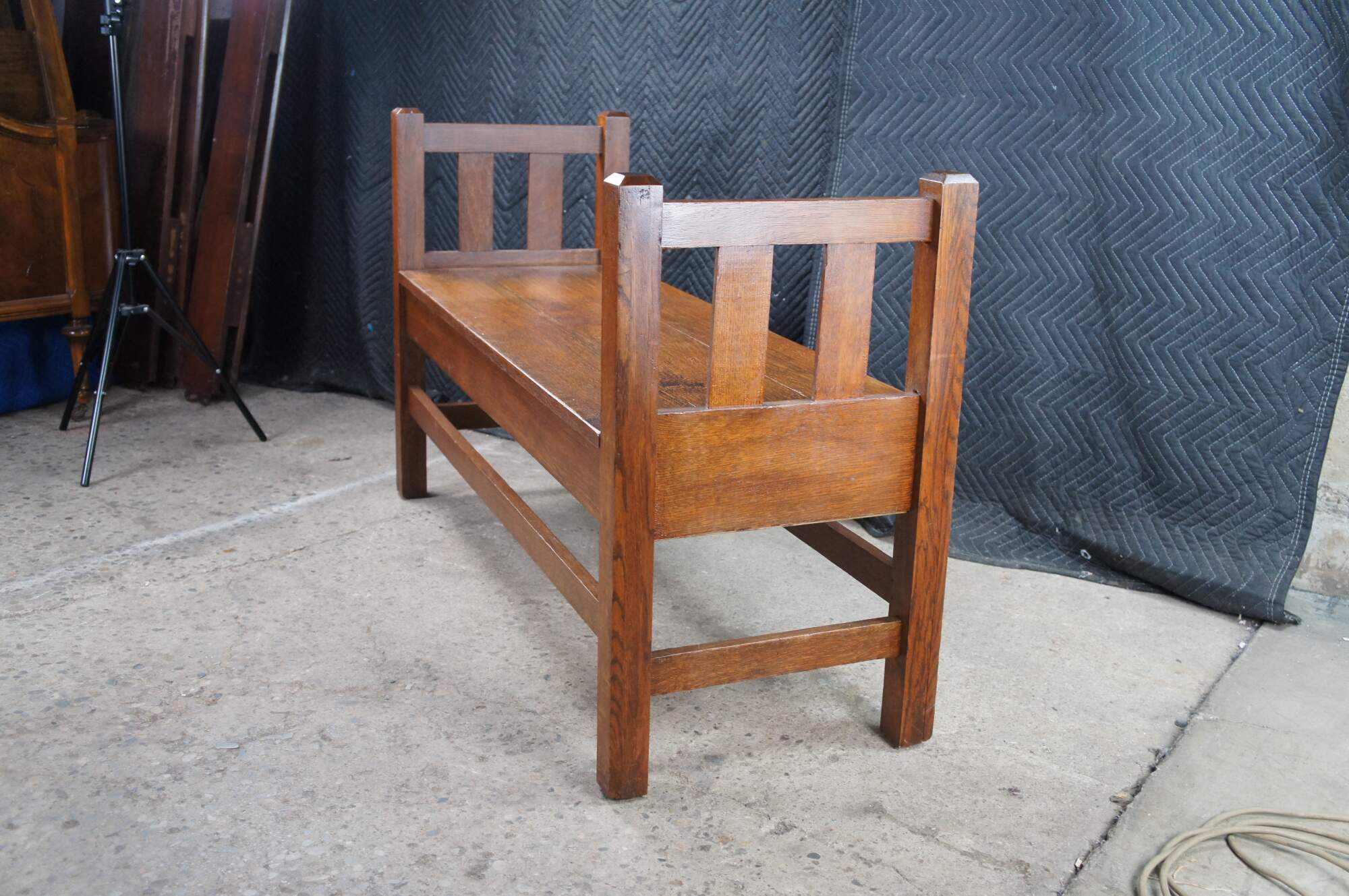 Antique Mission Arts & Crafts Quartersawn Oak Hall Storage Bench Seat Settee 50"