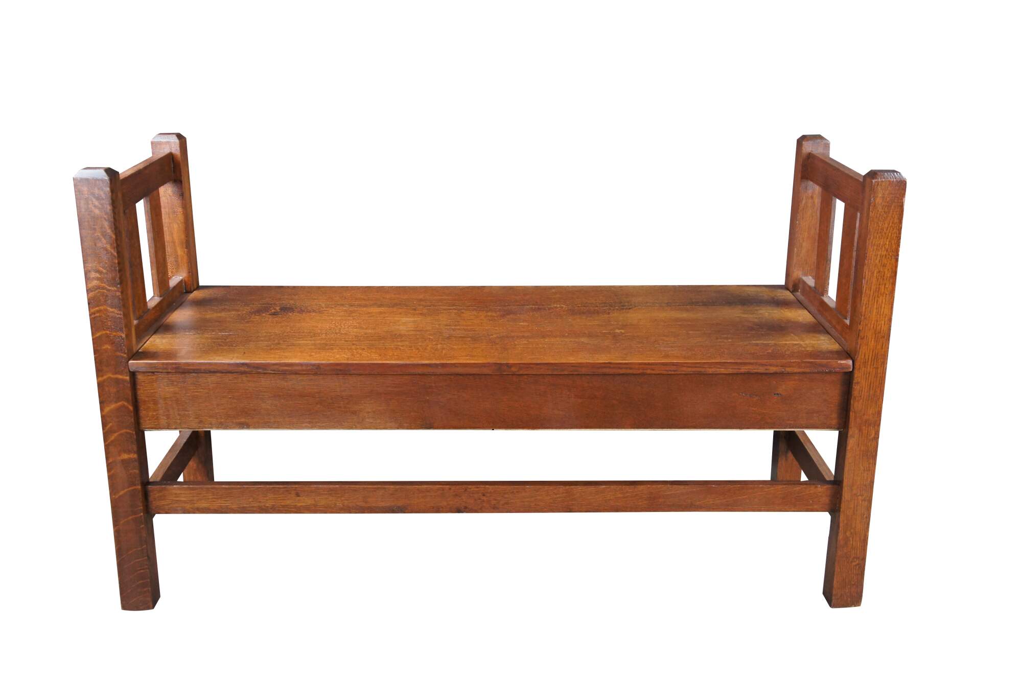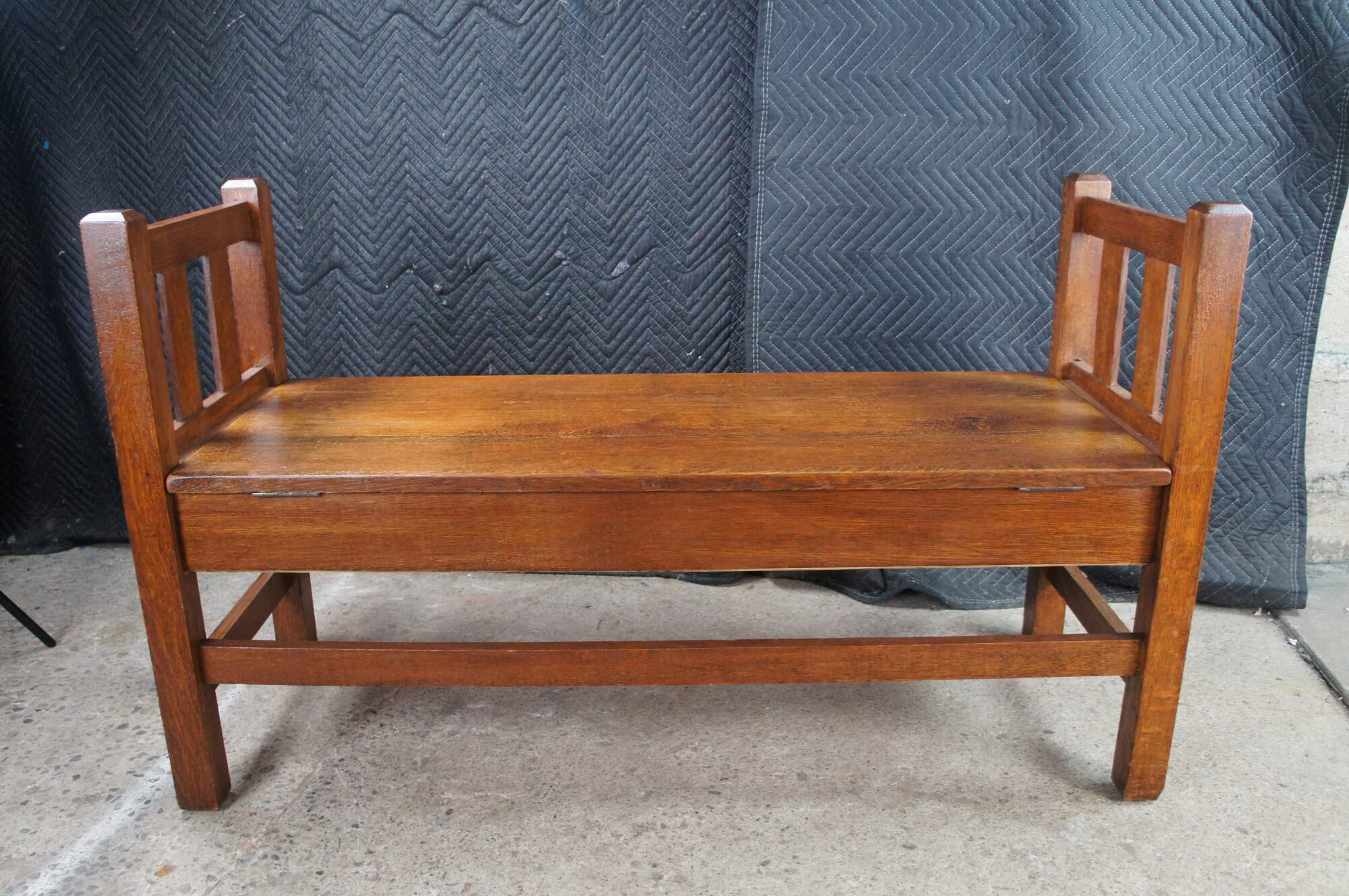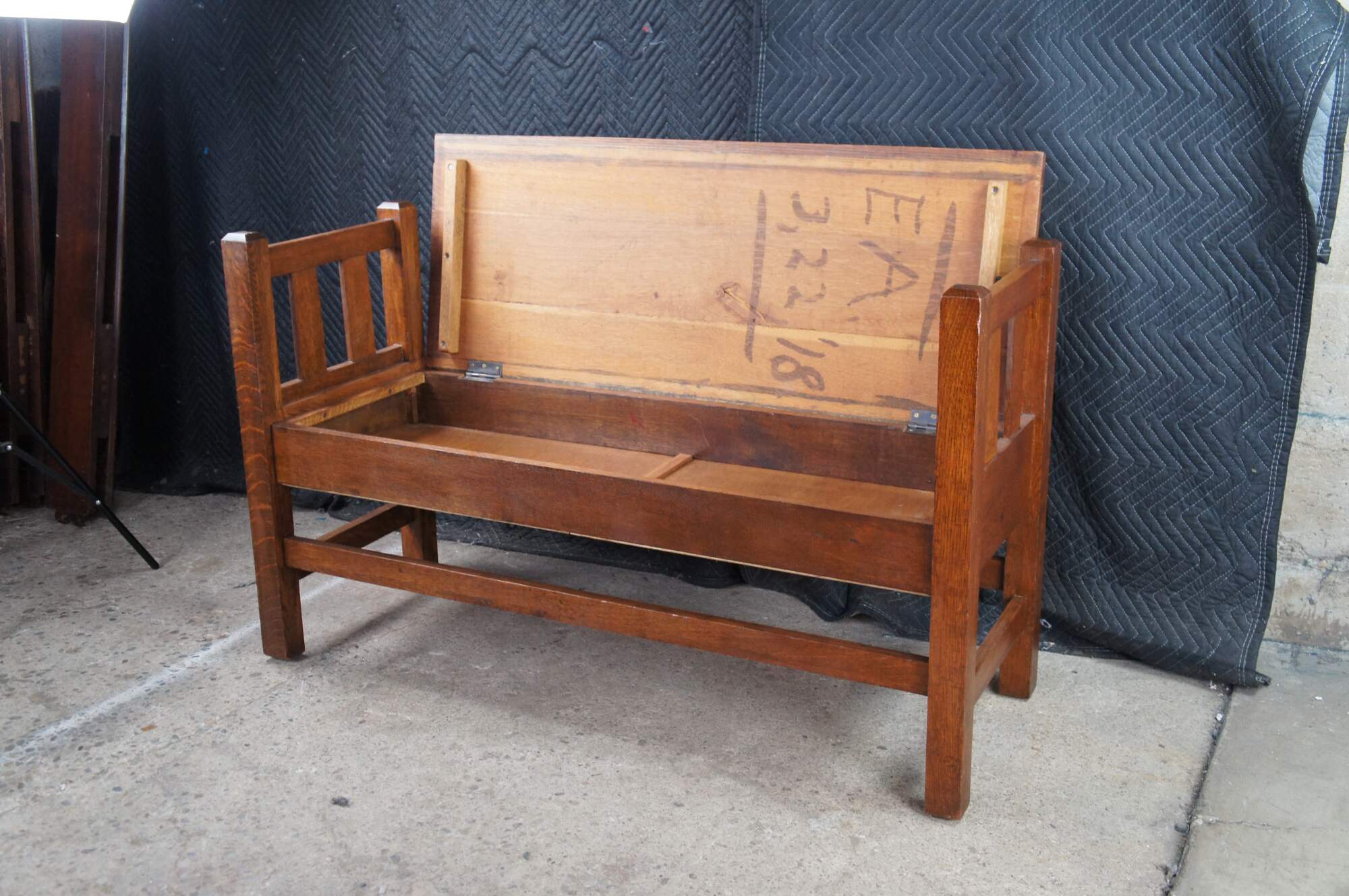 Antique Mission Arts & Crafts Quartersawn Oak Hall Storage Bench Seat Settee 50"