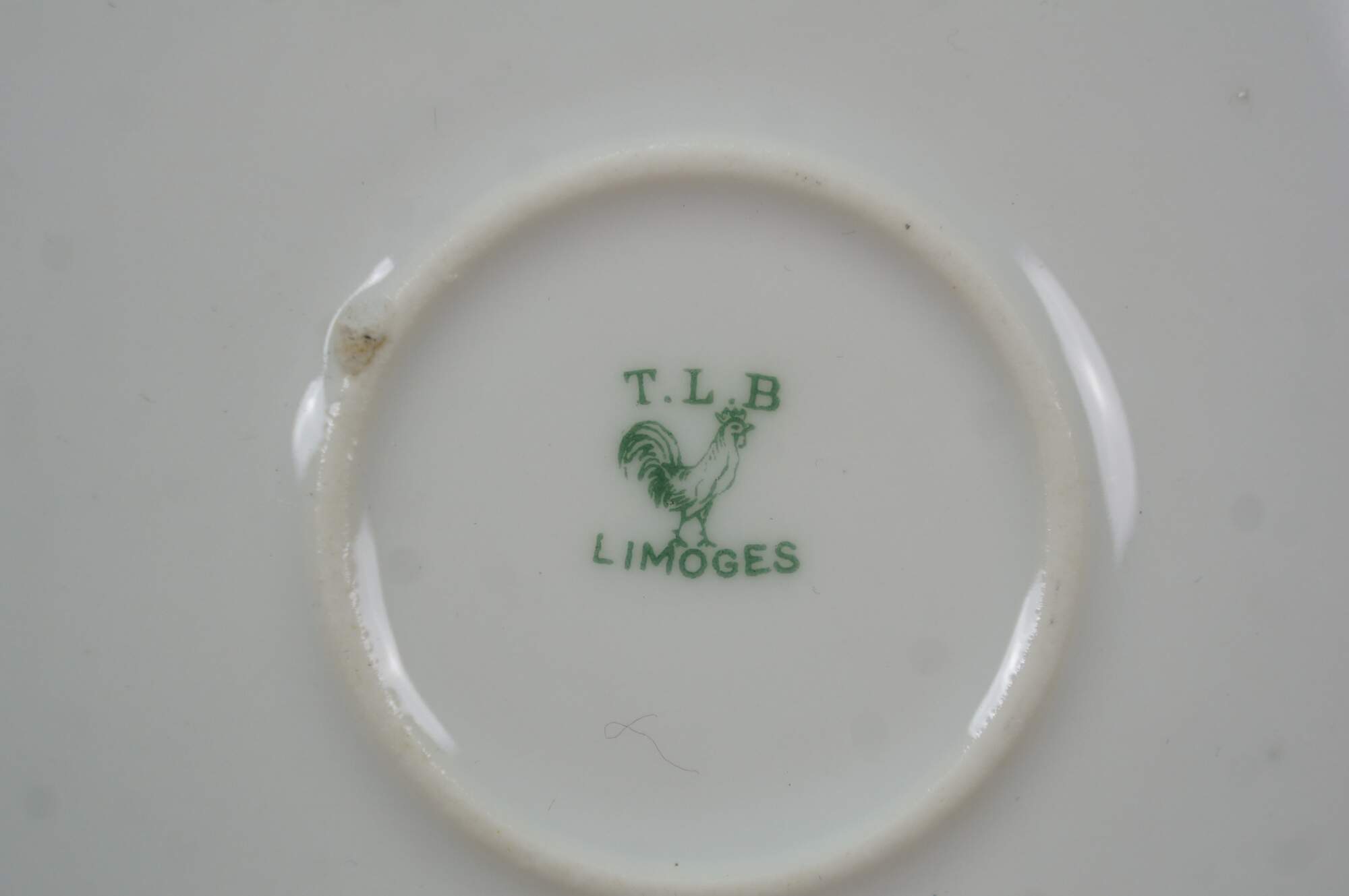 "The story of the Touze family in the porcelain business dates back to 1863 when Michel Touze and his associate Soudanas founded a decorating studio in Limoges at the boulevard des Petits Carmes which Touze continued alone from 1869, moving to brand new facilities the following year. In 1878 his widow took charge of the family business, followed by their son a few years later. The mark J.B.T & Cie was used from 1901 to 1913. During World War I the company ceased activity. T.L.B. (Touze, Lemaître Frères & Blancher) was created after the war, in 1918. The manufacture produced tea, coffee and table sets in several shapes. Some patterns were entirely hand painted. The manufactory participated in the 1925 Modern Decorative Arts Exhibition, in the 1931 Colonial Exhibition and in the 1937 International Exhibition. Like many other factories in the Limoges region, the company ceased activity during World War II. From 1950 onwards the former facilities of T.L.B. were used by the porcelain decorators Georges Jammet and Henri Seignolles who founded J. Seignolles, a factory that still produces high quality porcelain manufactured and decorated exclusively in Limoges. " (Art Deco Limoges Porcelain)