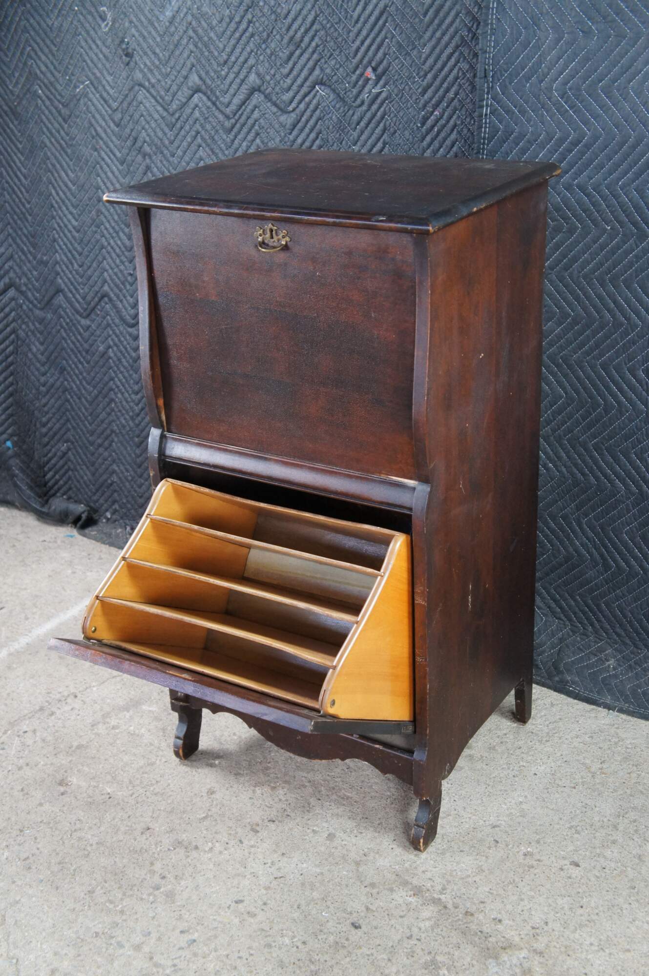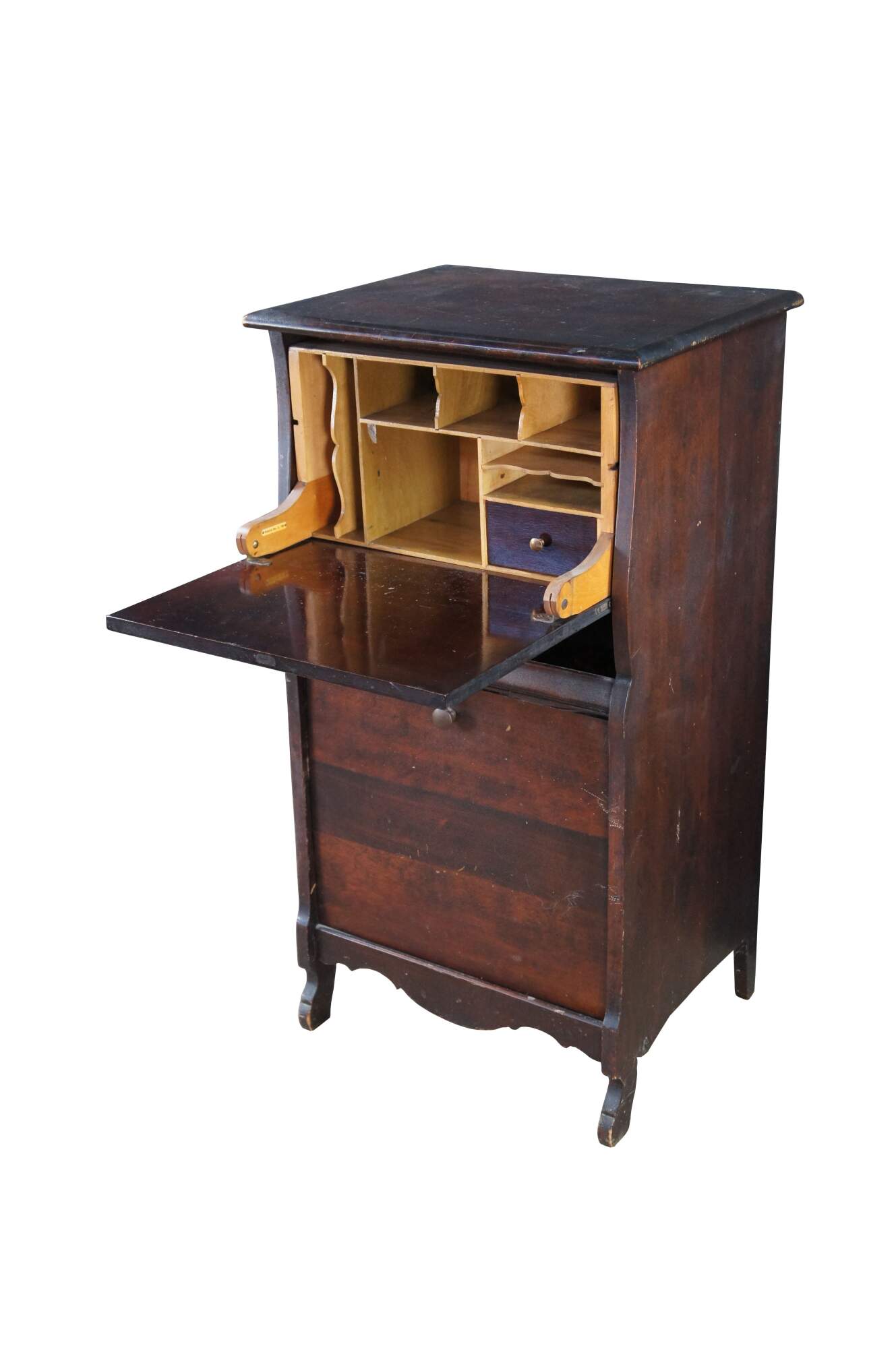 Rare Antique Edwardian filing cabinet secretary desk / console / music stand. Made of mahogany featuring a unique stacked design with upper secretary and lower filing cabinets. Patented Dec. 22, 1908.