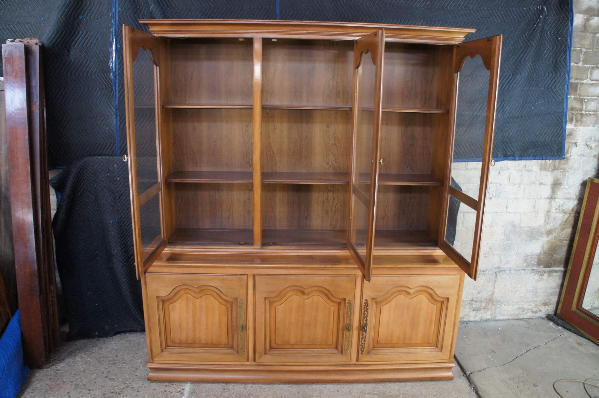 Century Furniture Italian Provincial Walnut China Cabinet Breakfront Cupboard