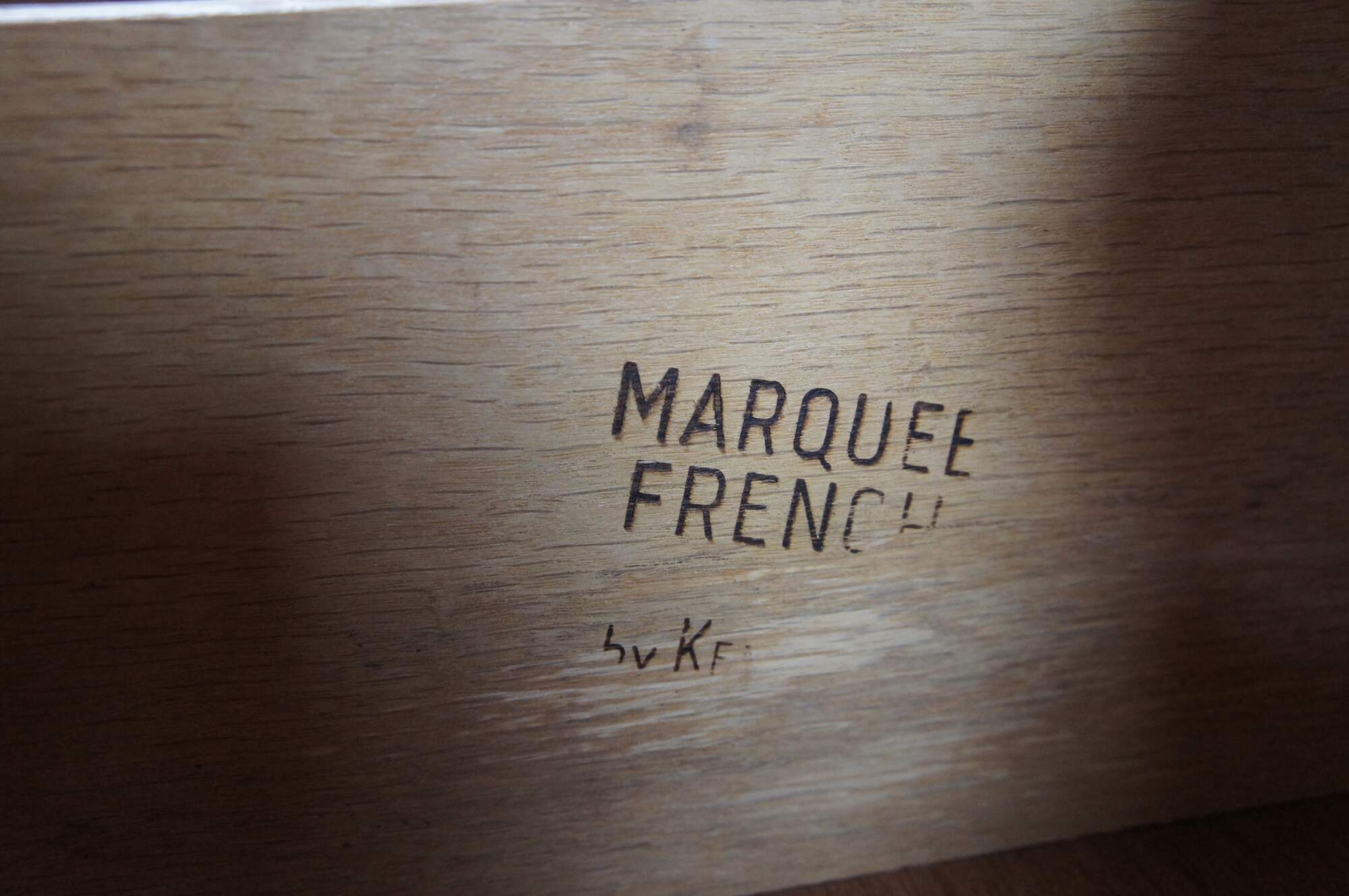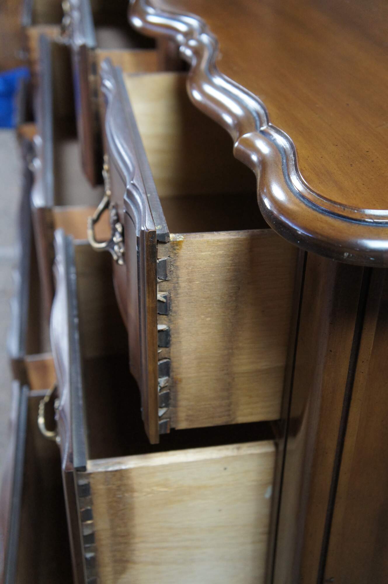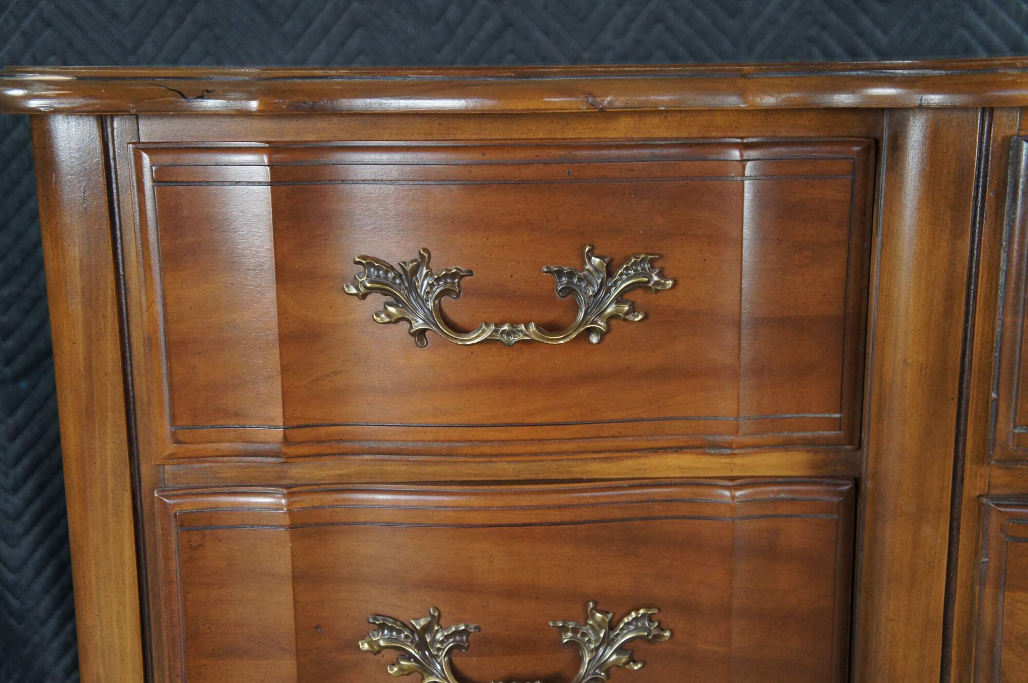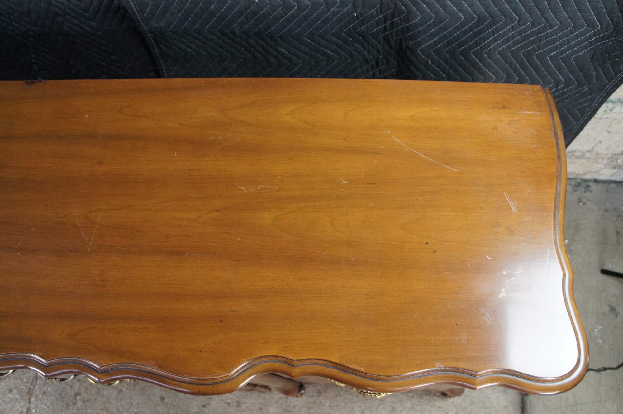 Vintage dresser / sideboard / console by Kent Coffey. From the Marquee French collection, featuring French Provincial styling with scalloped / serpentine top over nine drawers and scrolled cabriole feet. 300-102, Fruitwood.