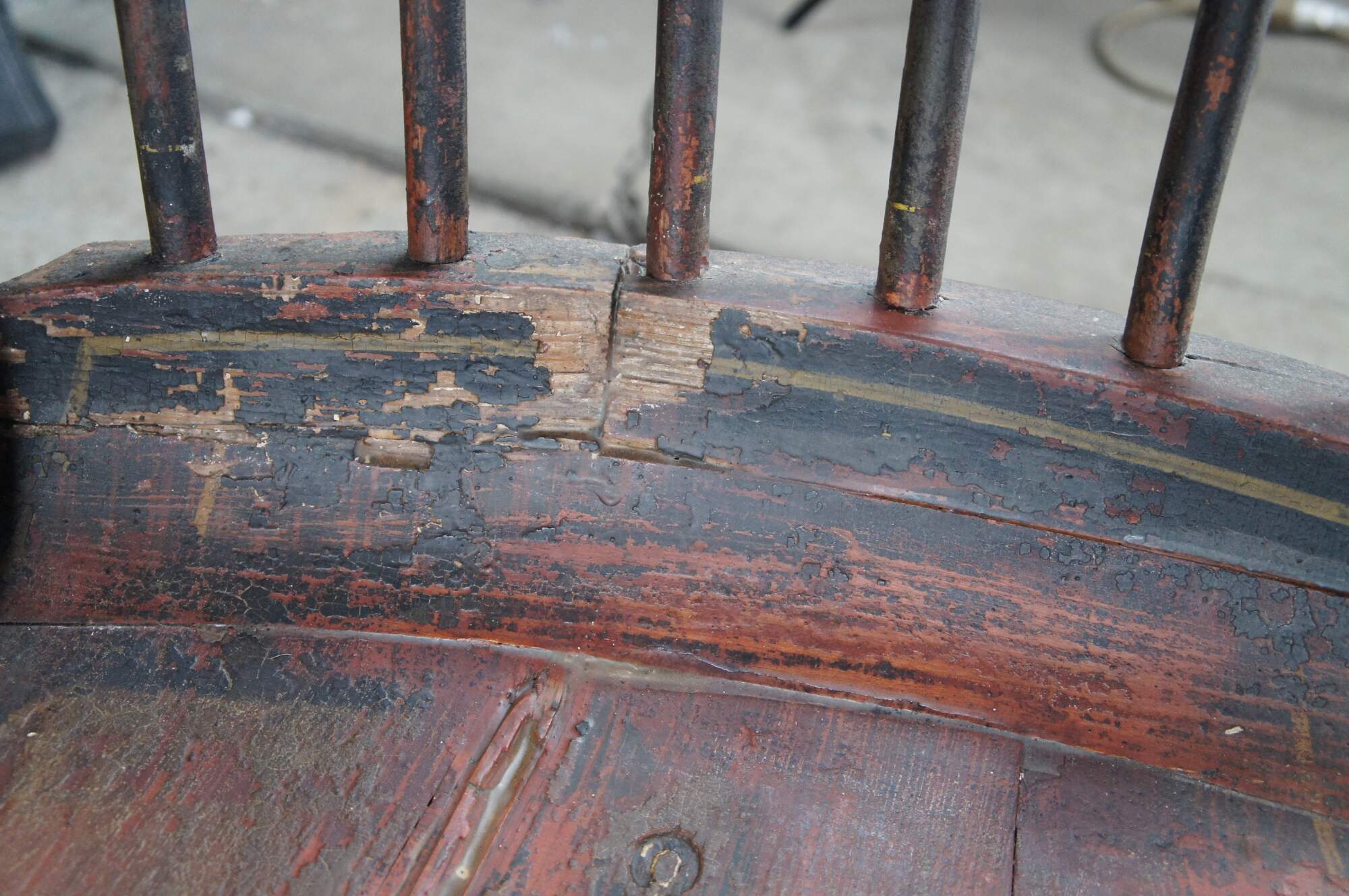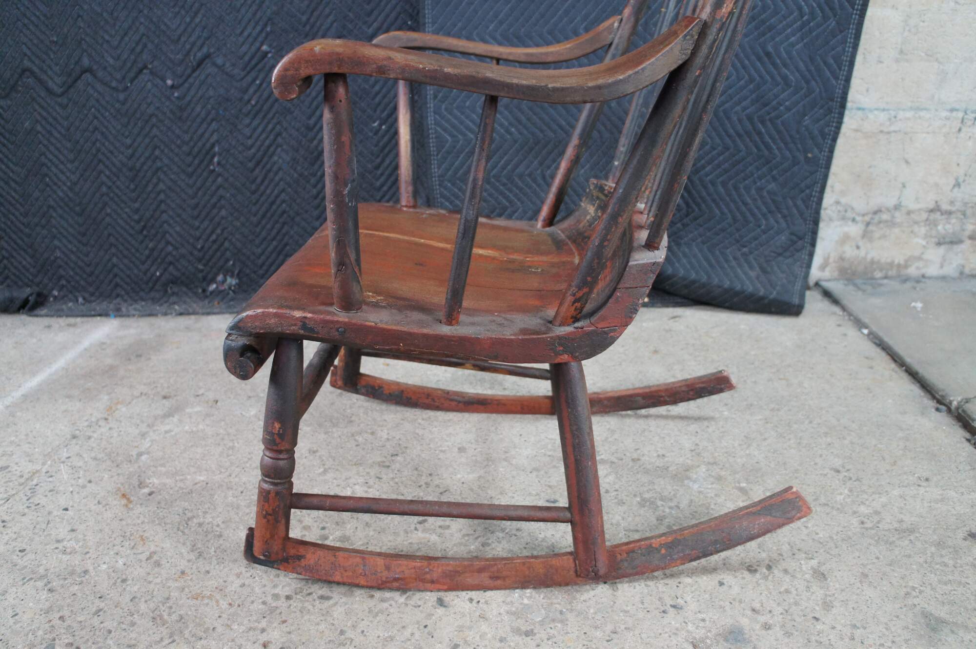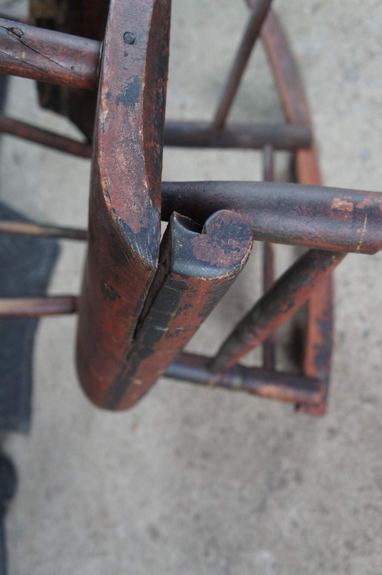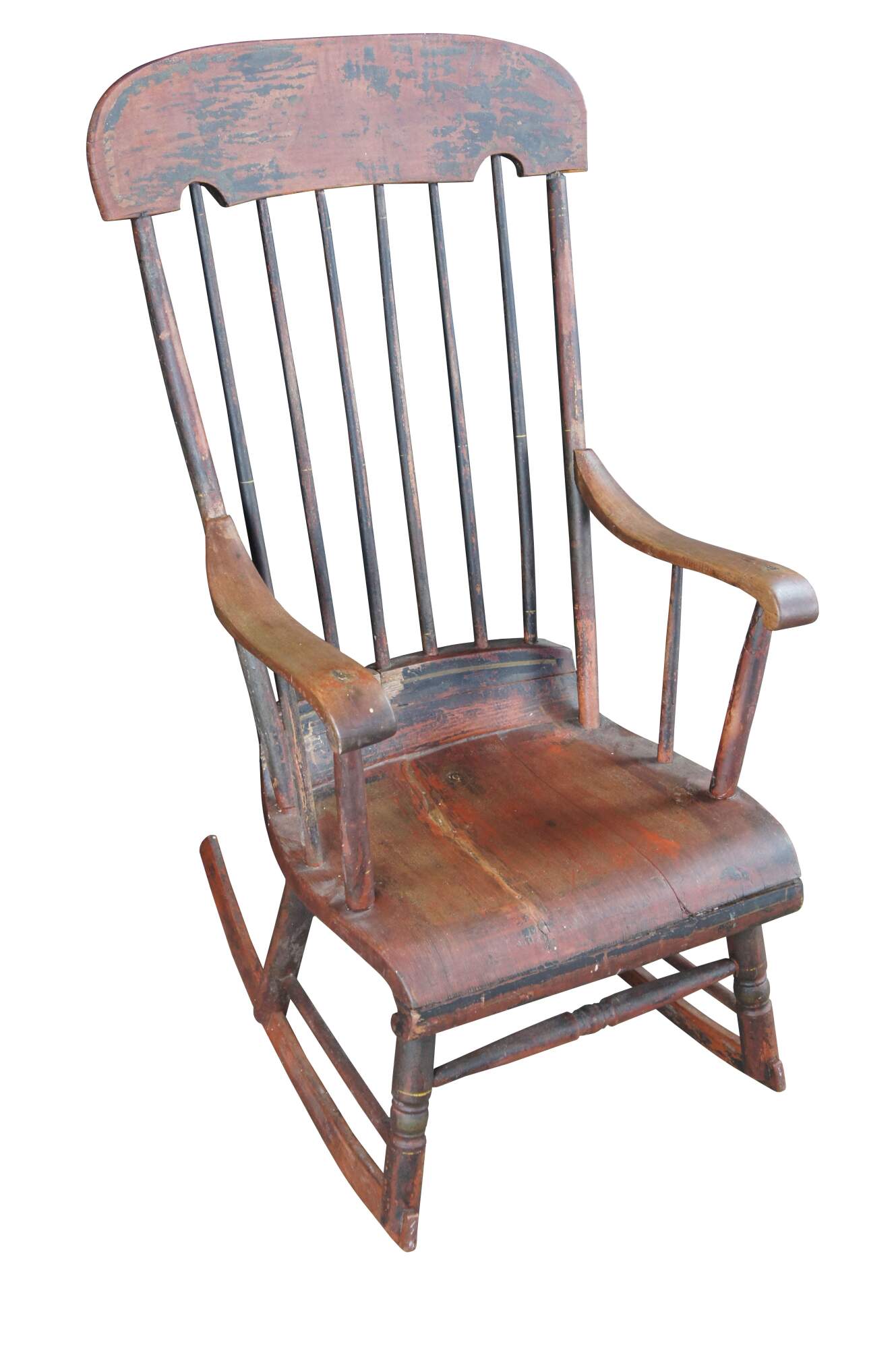 Antique Early American Country Farmhouse Windsor Hitchcock style slat back rocking armchair. Likely an old Boston stenciled rocker, but has been repainted / heavily faded.