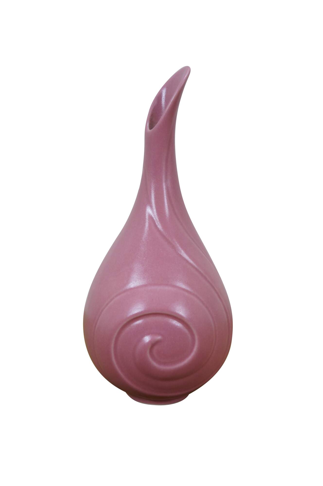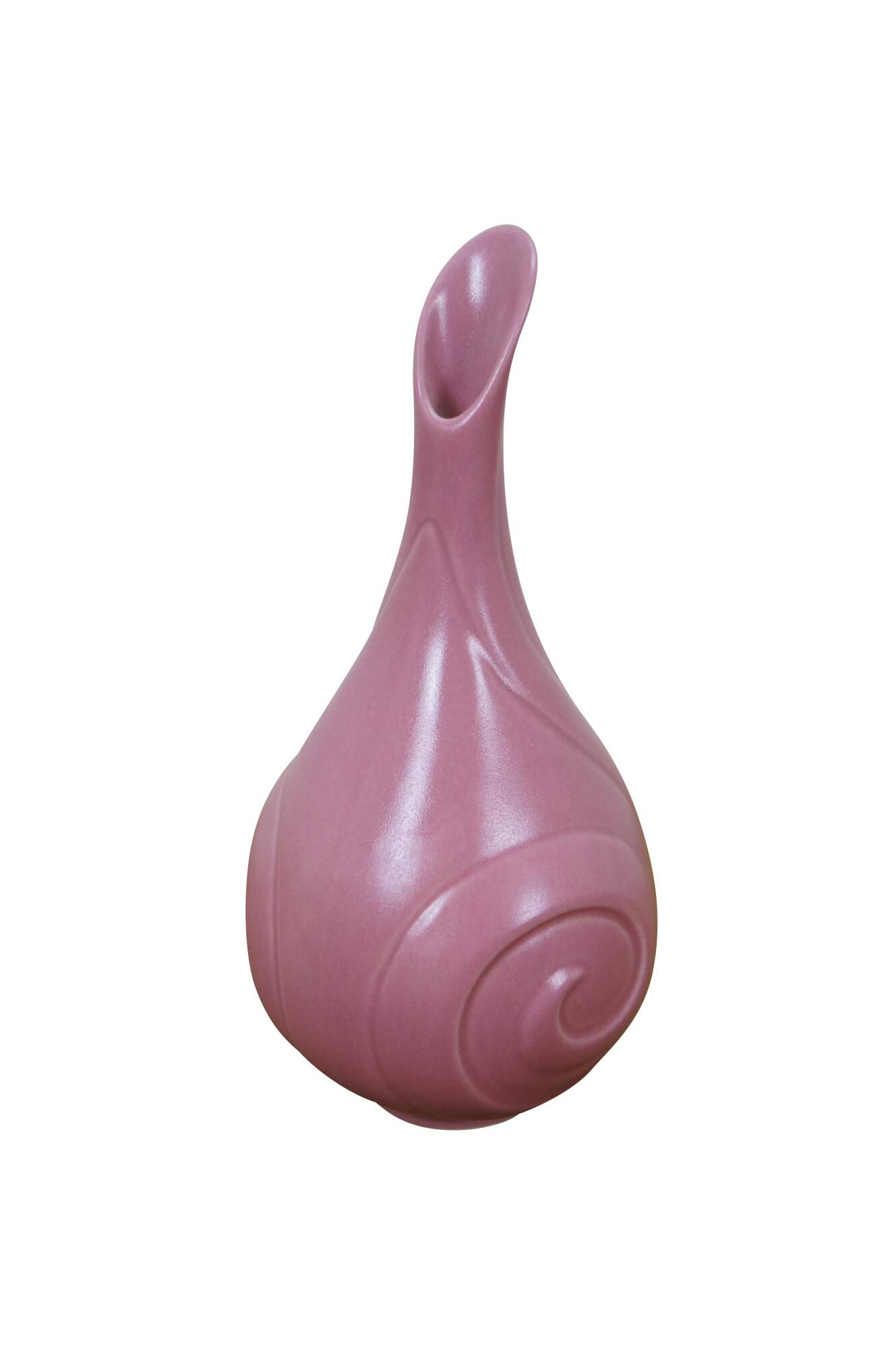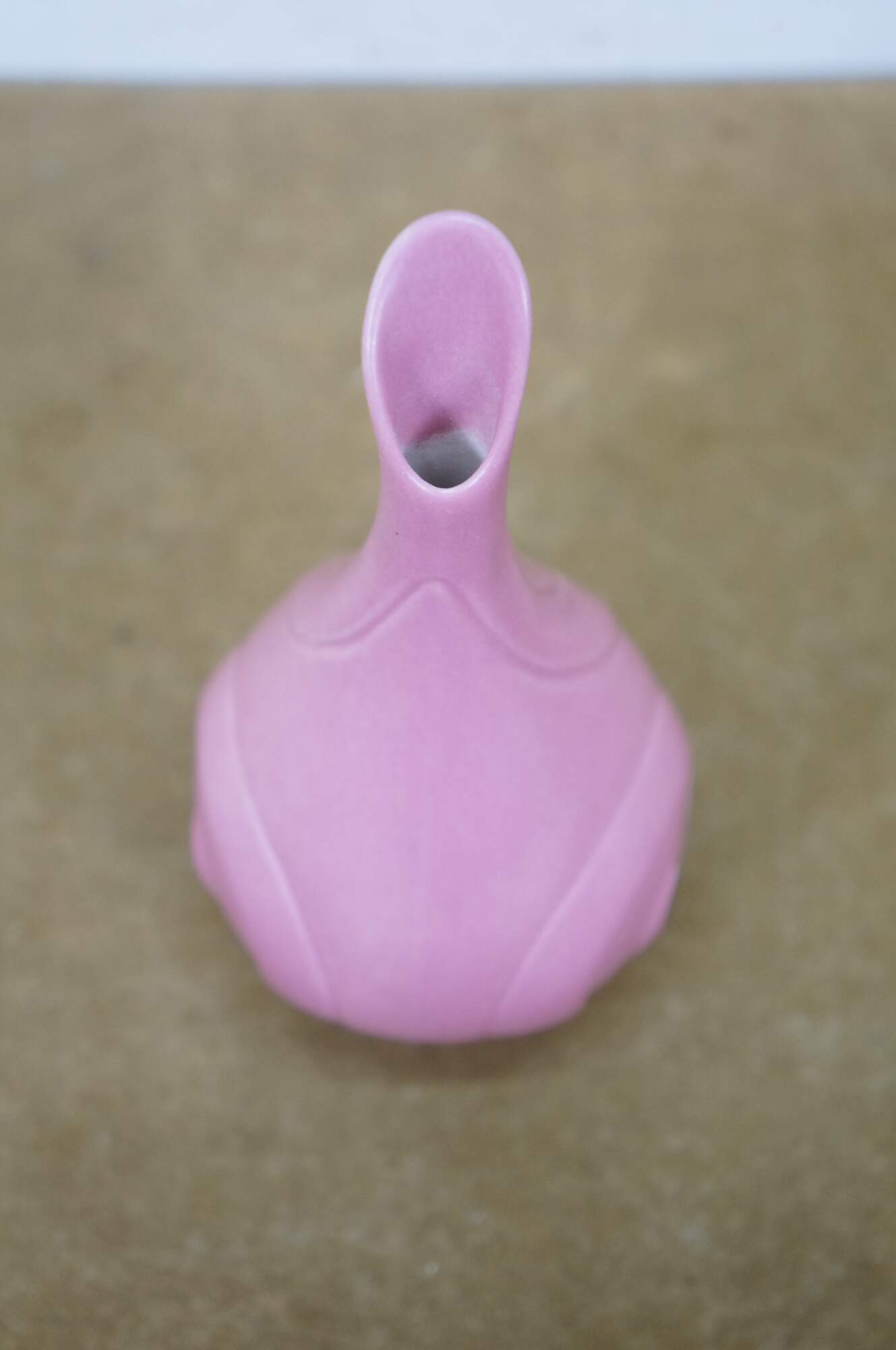 Early 21st century Rookwood Pottery bud vase - teardrop / bulb shaped vase with a soft pink glaze and a raised Art Deco inspired spiral / swirl design on the side. Marked 10106 D - MMXV (2015).