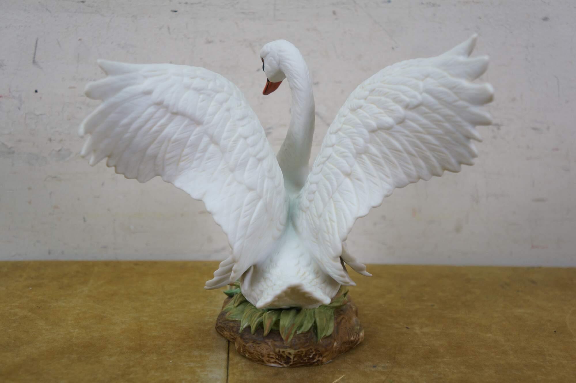 Vintage 1987 Homco Masterpiece Porcelain figurine in the shape of a swan with spread wings. Made in Mexico.