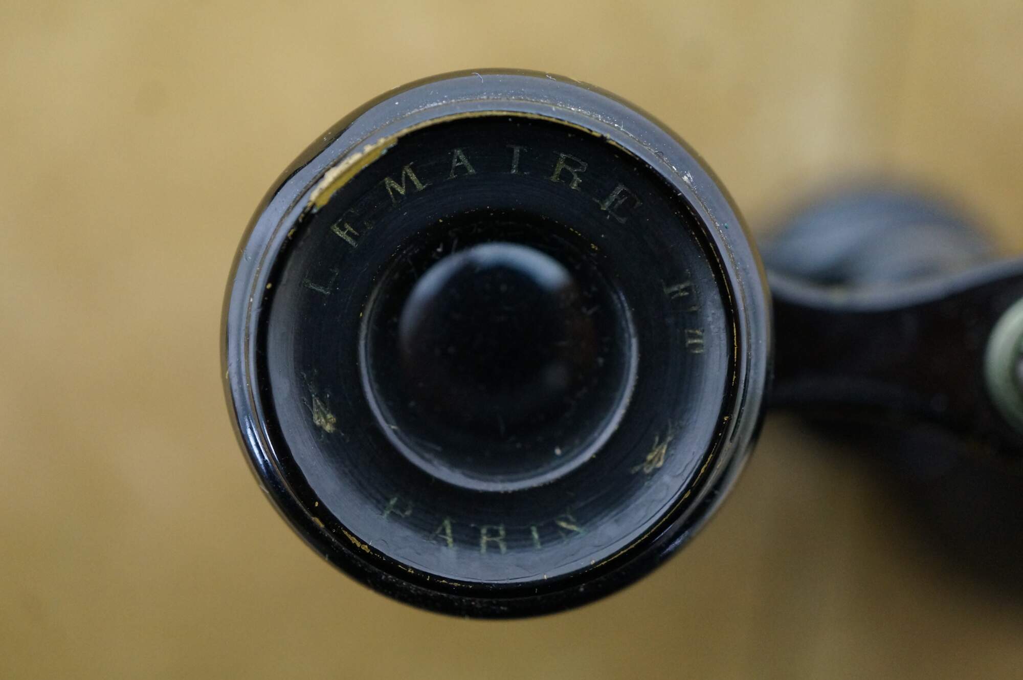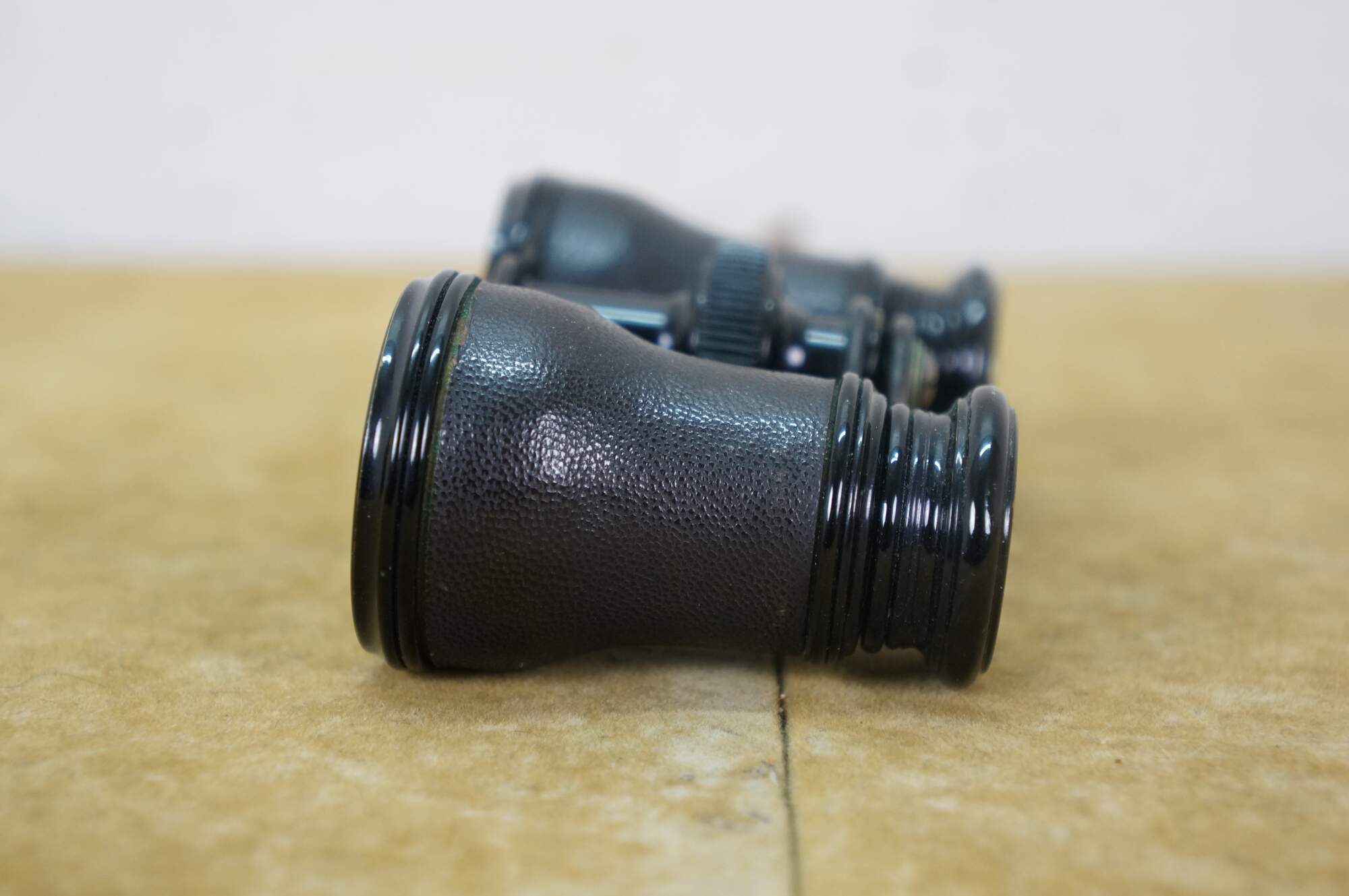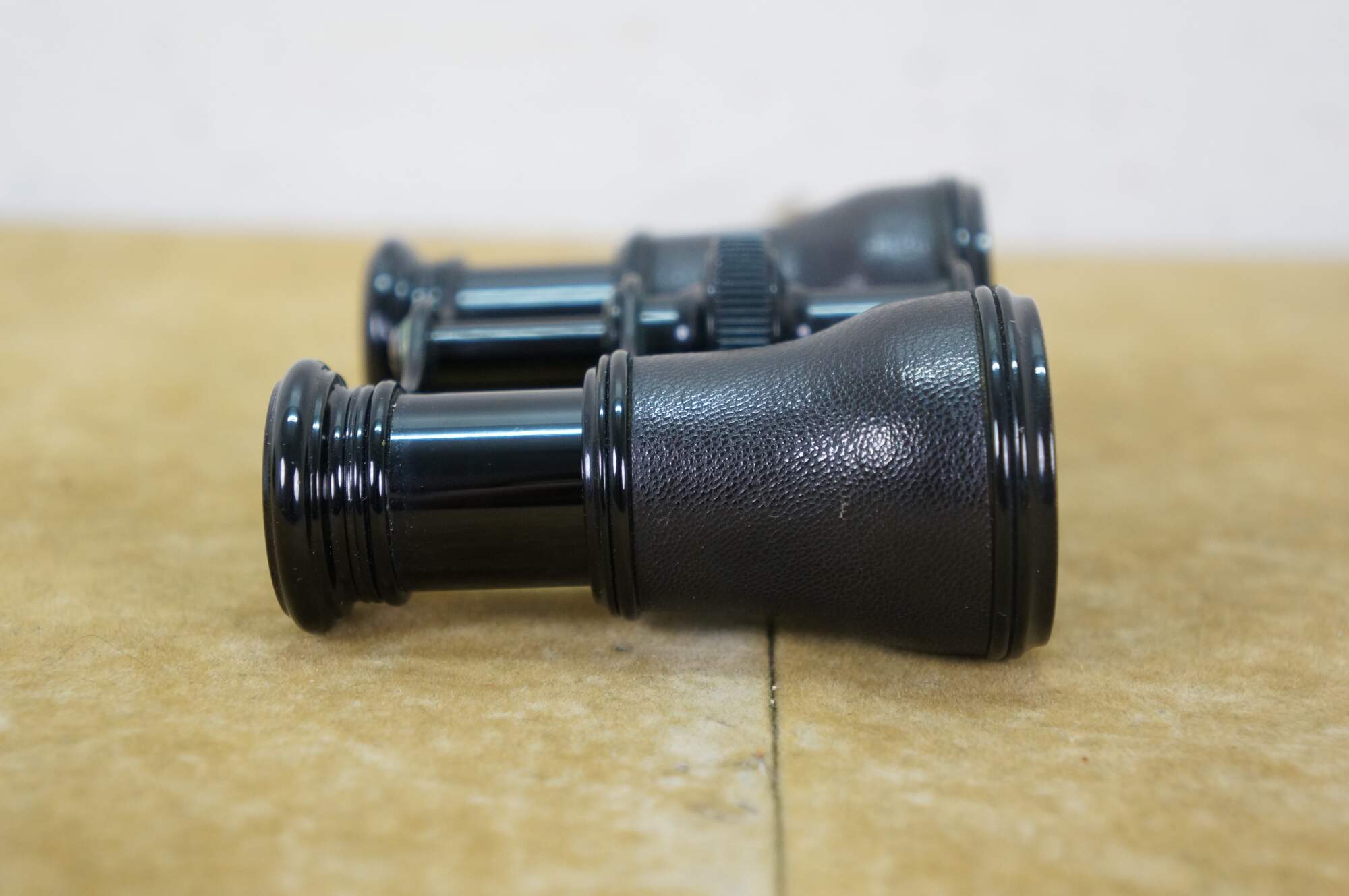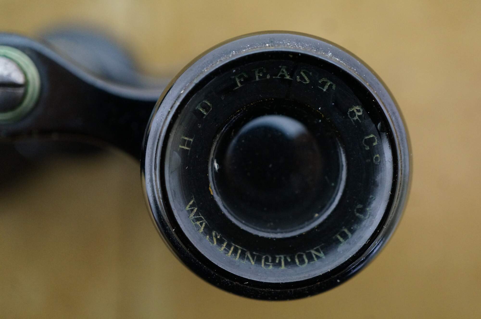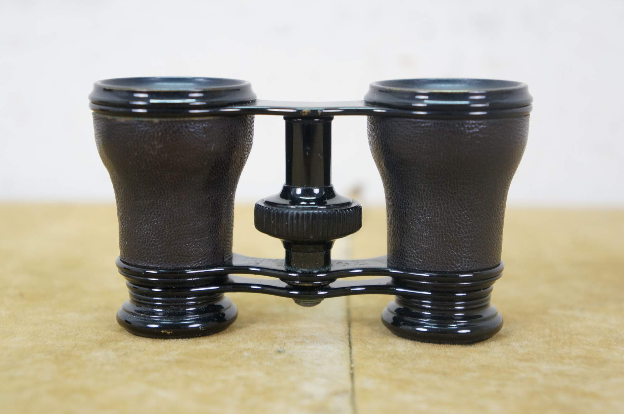 Circa late 19th century pair of Lemaire opera glasses / binoculars. Leather wrapped black enamel over brass. Sold by H.D. Feast and Co, Washington, DC. Includes black leather and silk lined case.