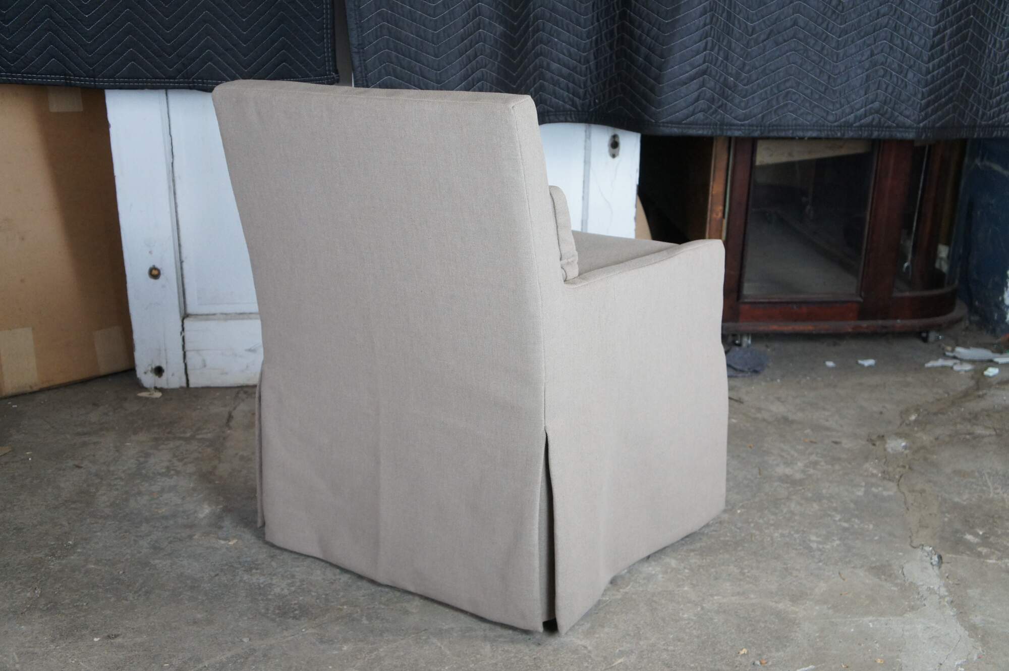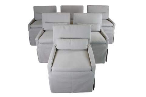 6 Low Belgian Slipcovered Track Arm Dining Side Chair