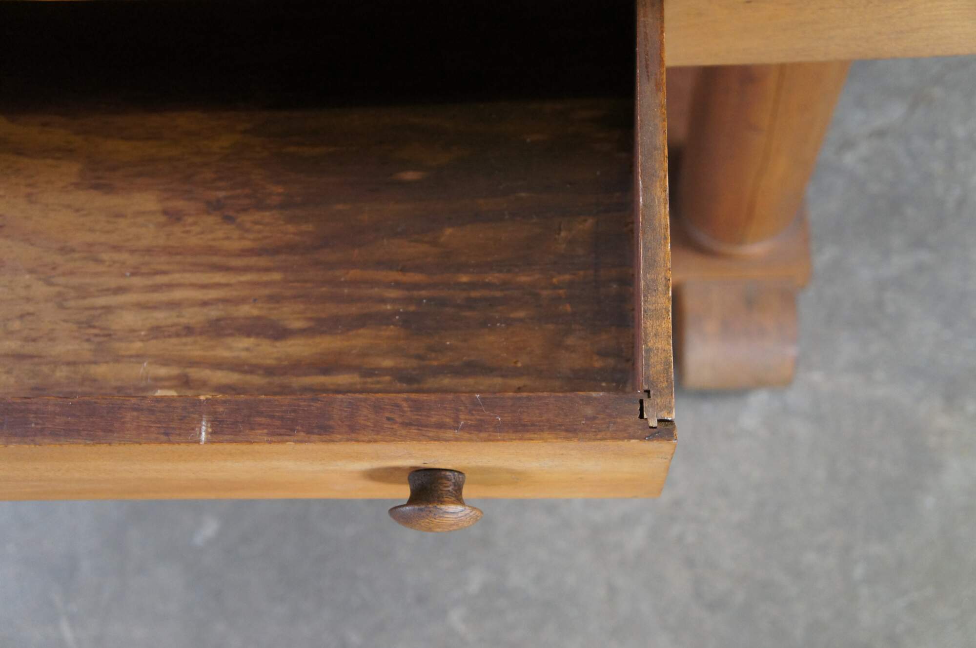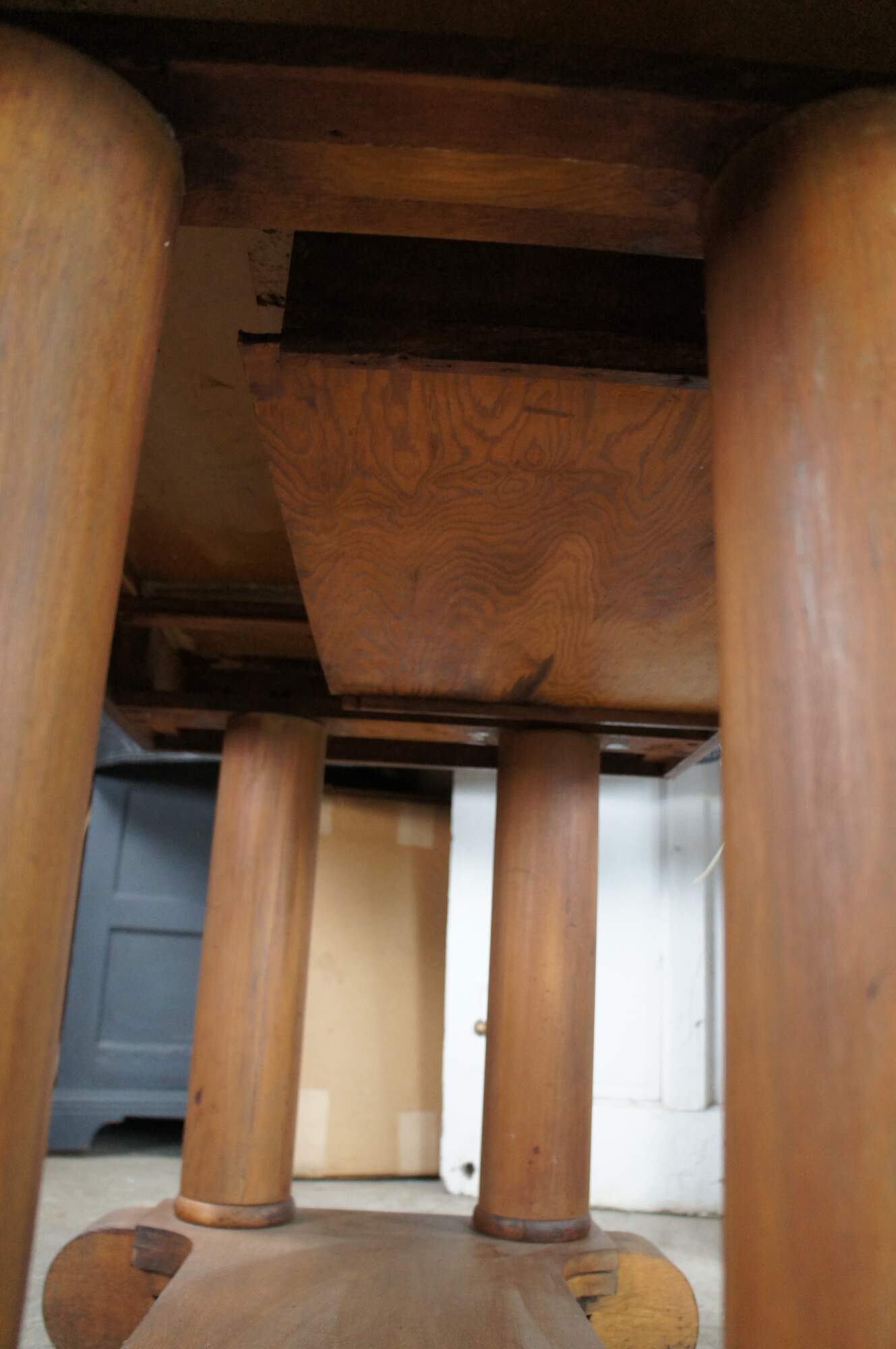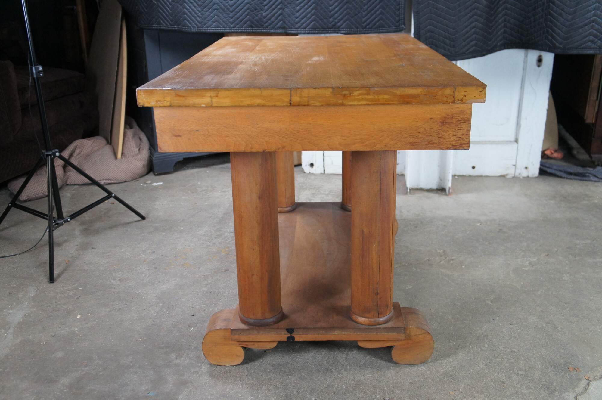General age related wear; marking and distressing from use. A few surface splits along base and columns.