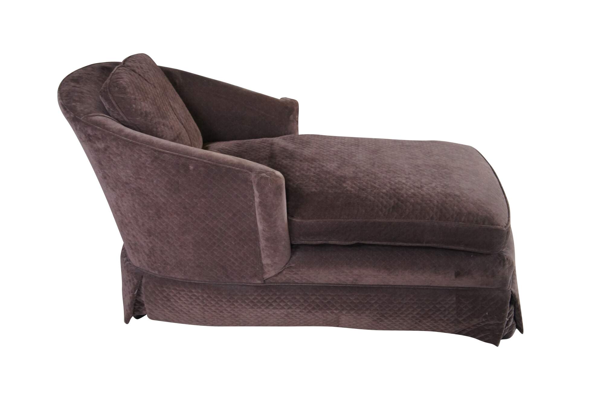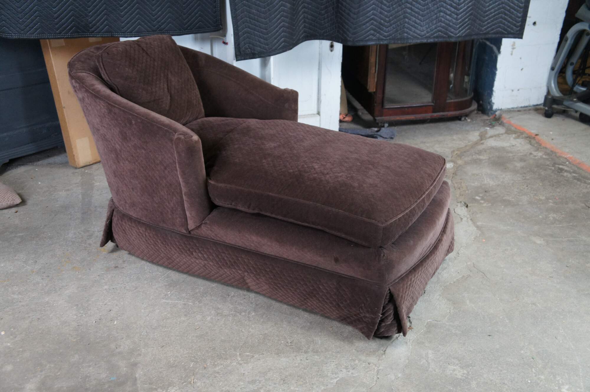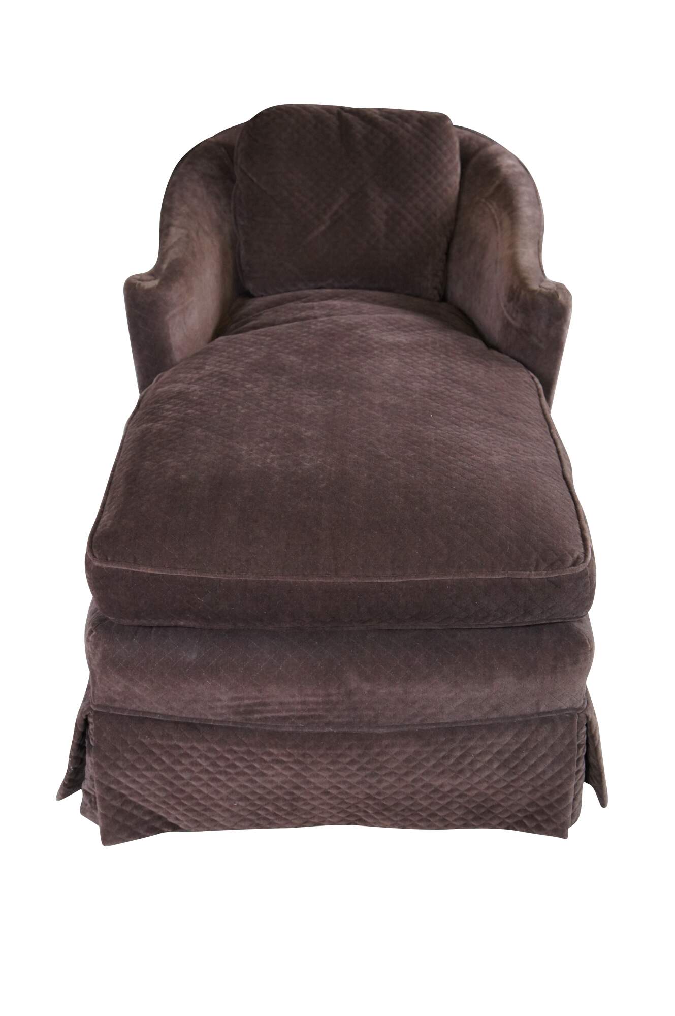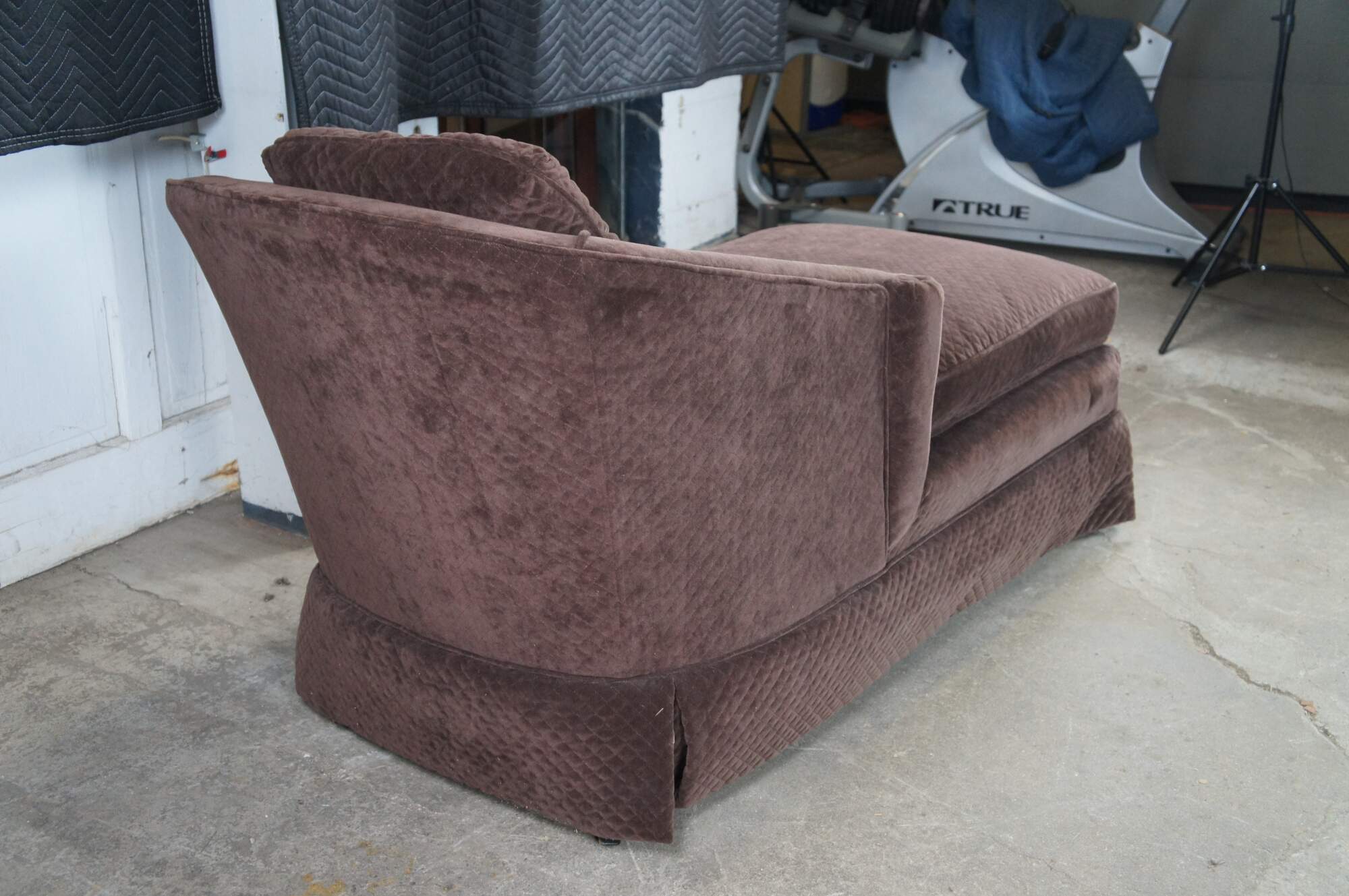 Late 20th Century Modern Chaise Lunge by Edwards Furniture Inc. Features a brown upholstered and quilted velvet fabric with a scrolled barrel back and comfy cushions.
