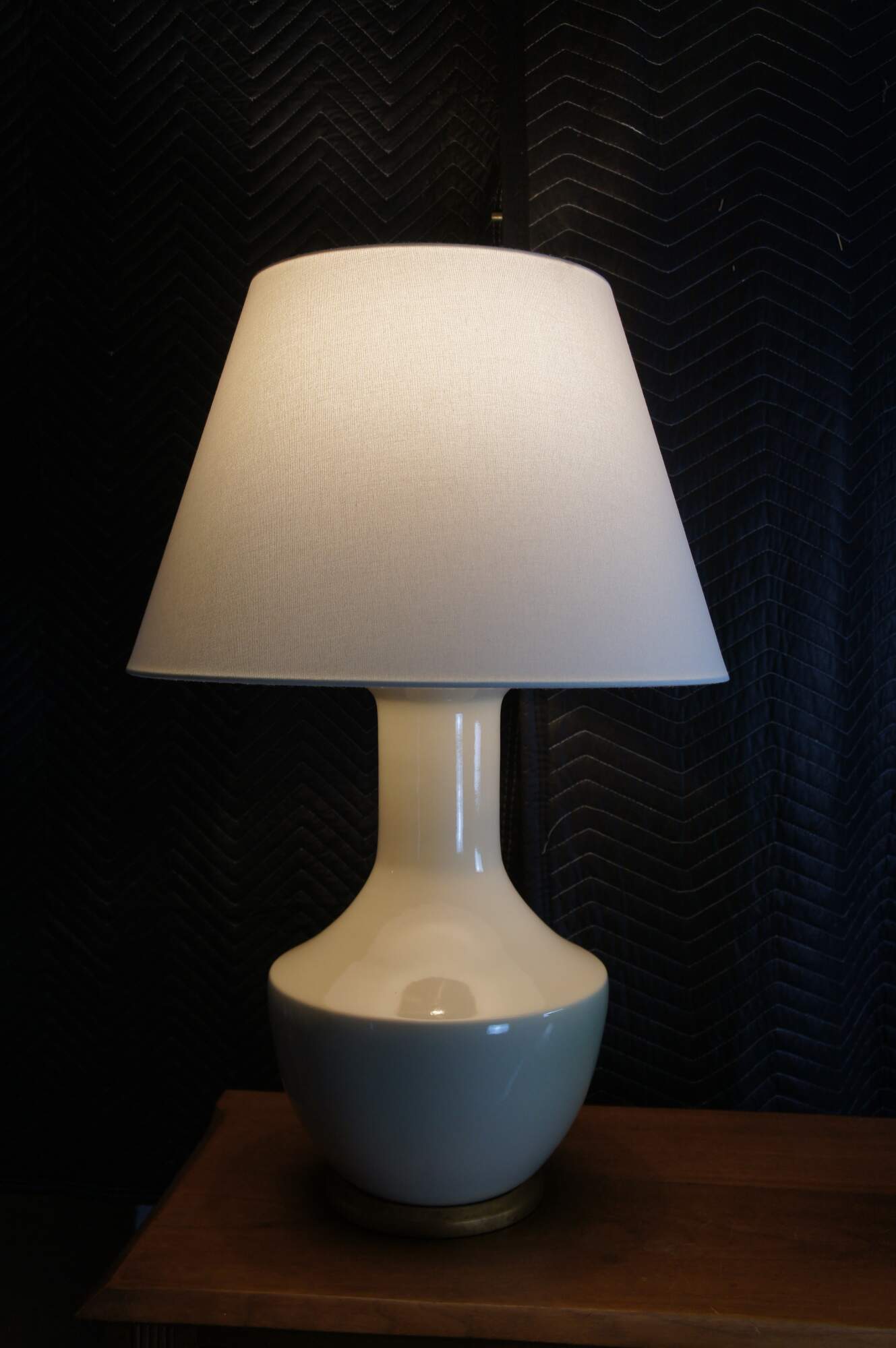 2 Visual Comfort Lambray Lamps. Drawing inspiration from Chinoiserie Gourd Shapes with a modern design. Constructed of ceramic with an ultra shapely silhouette, the Lambay Table Lamp from Visual Comfort Signature comes close to delivering a glam-inspired touch of coastal charm.