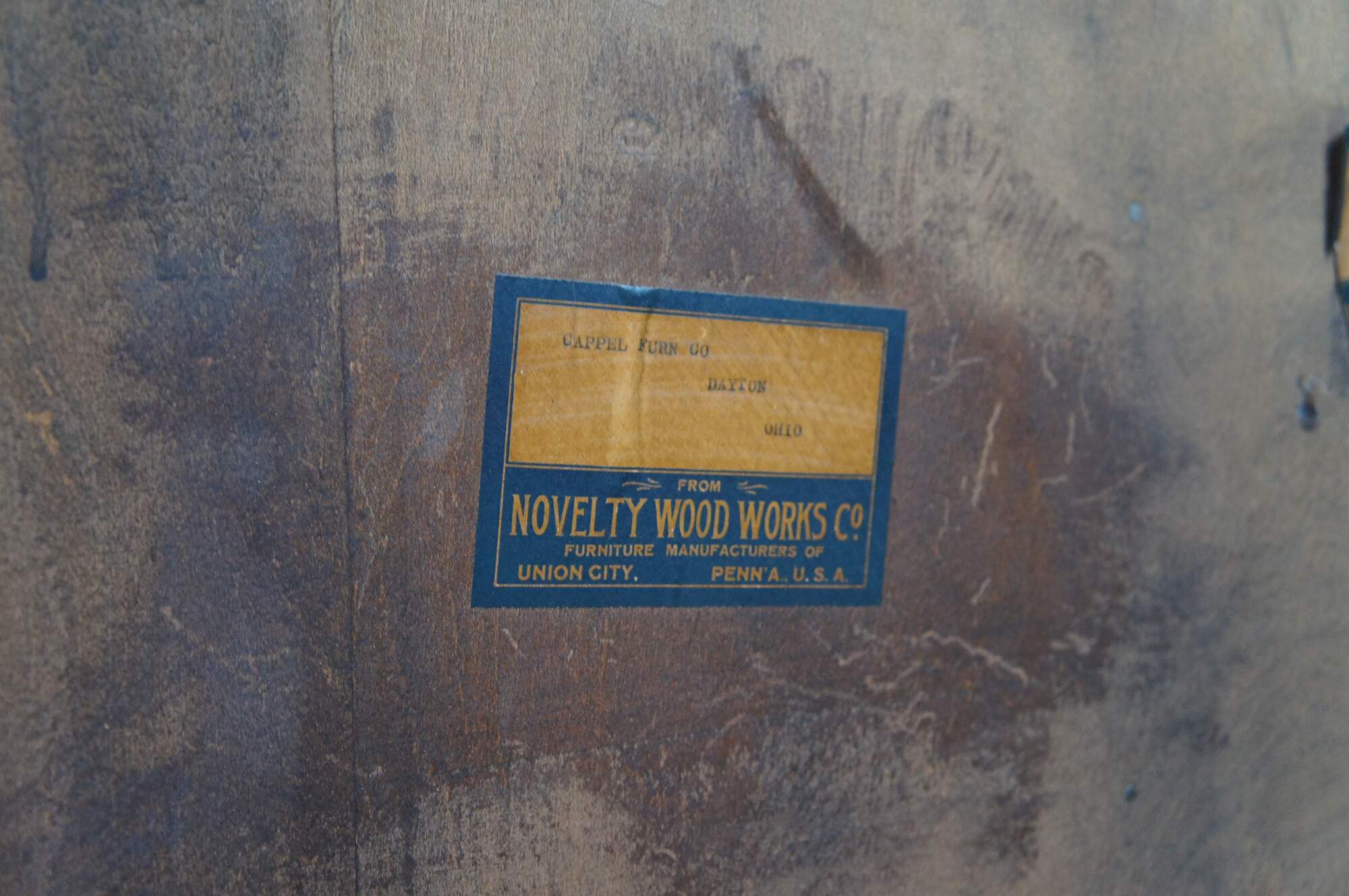 Novelty Wood Works Company was a manufacturer in Union City, Pa. They made this piece and sent it to Cappel Furniture company in Dayton Ohio for resale.
