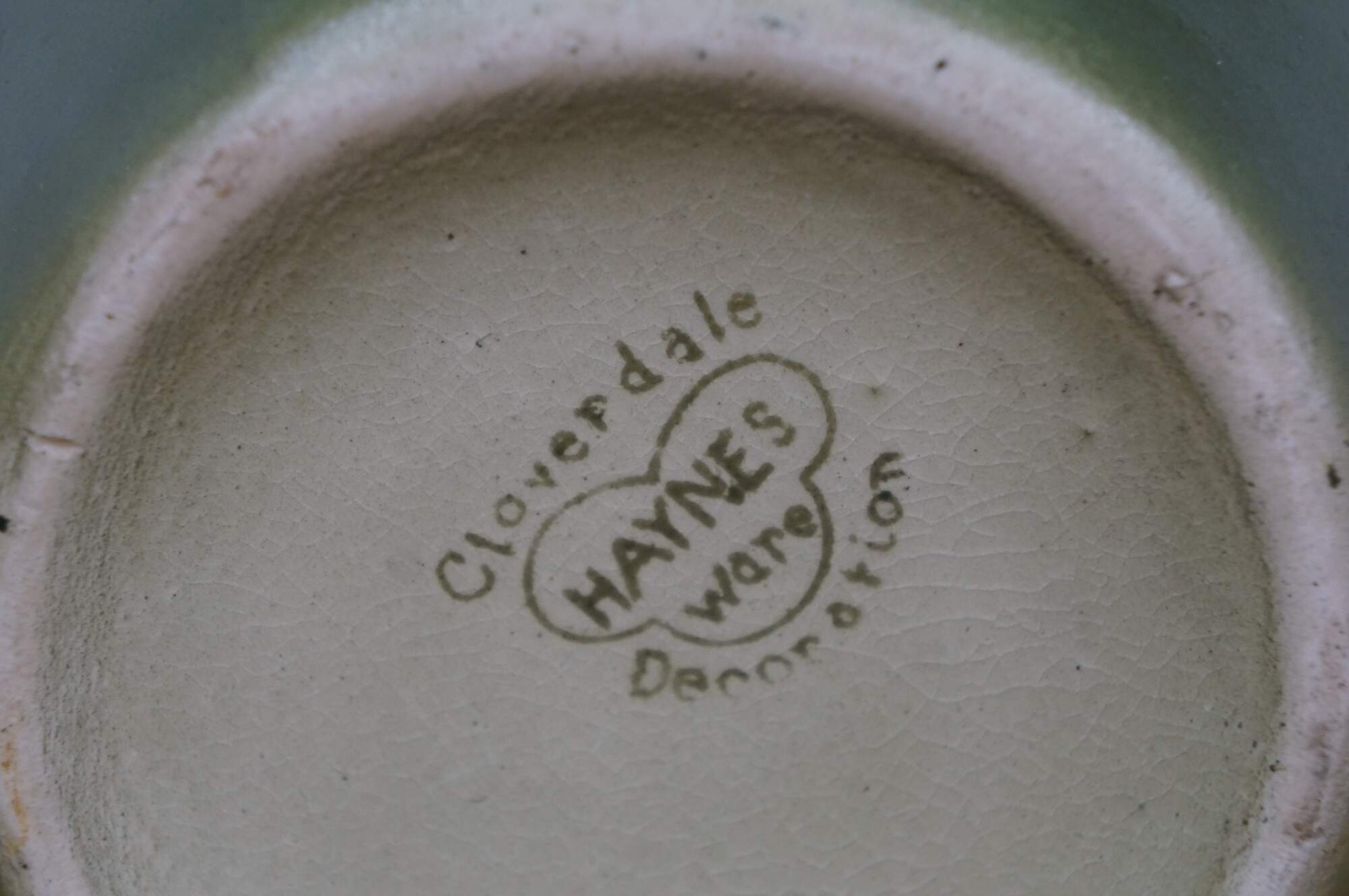 "D.F. Haynes & Co. / The Chesapeake Pottery Co. / Haynes Bennett & Co. / D.F. Haynes & Son - David Francis Haynes, born in 1835, embarked on a journey that would see him become a central figure in Baltimore’s porcelain industry. His early experiences in Lowell, Massachusetts, and subsequent travels to England laid the groundwork for his deep understanding of the ceramics trade. Haynes, along with skilled English potters, established Chesapeake Pottery in 1879 as an art pottery. Primarily an artist, Haynes was one of the main designers. The pottery’s initial years were characterized by rapid expansion and an unwavering commitment to quality. Haynes introduced hard-paste porcelain and a variety of lines, including “Real Ivory” and “Baltimore Majolica,” which showcased the pottery’s artistic ambitions. The employment of sculptor James Priestman to design parian porcelain plaques was a testament to Haynes’s dedication to blending artistic excellence with commercial success. In 1882 he purchased the Chesapeake Pottery which had two buildings and a single kiln. Despite its artistic successes, Chesapeake Pottery faced numerous challenges, including labor unrest, financial setbacks, and intense rivalry with contemporaries like Edwin Bennett. The company was called D.F. Haynes & Co. until 1887 when The Chesapeake Pottery Company was organised. The name changed to Haynes Bennett & Co. when he merged with the Edwin Bennett Pottery Company, in 1890. The sale of the pottery to Bennett marked a shift towards more utilitarian production, illustrating the delicate balance between artistic pursuits and commercial viability in the decorative arts. The name then became D.F. Haynes & Son in 1895. The closure of D.F. Haynes Ceramics in 1914 signified the end of an era in American porcelain production." (Stein Marks / Encyclopedia.Design)