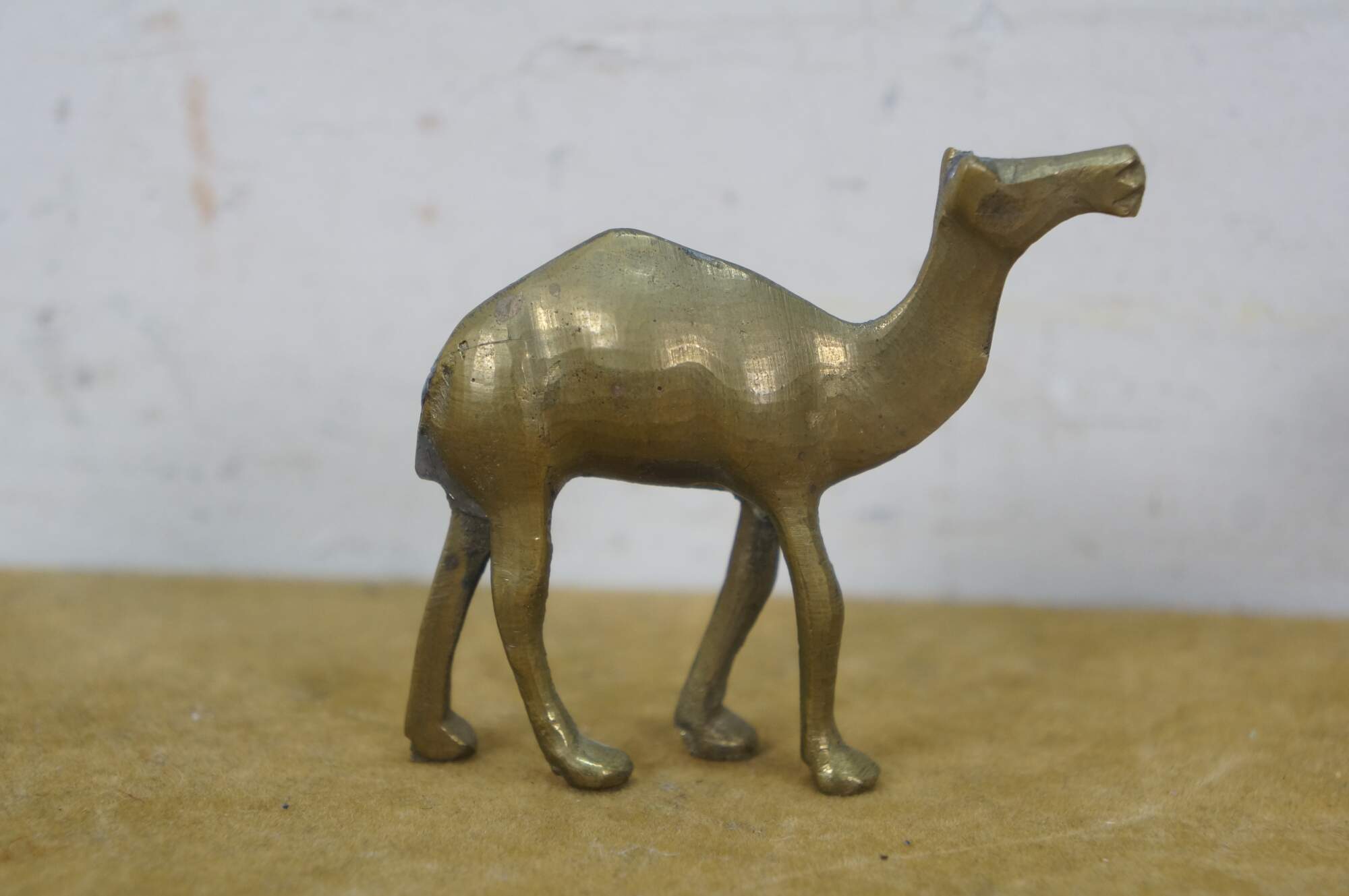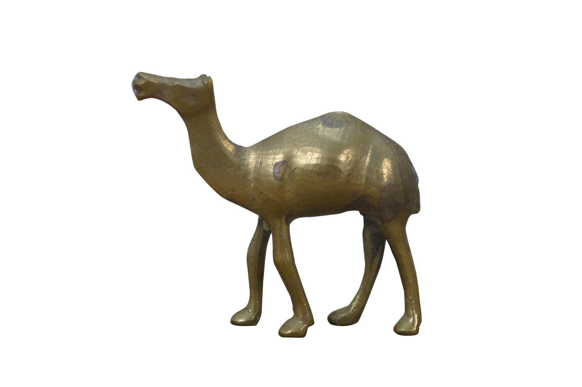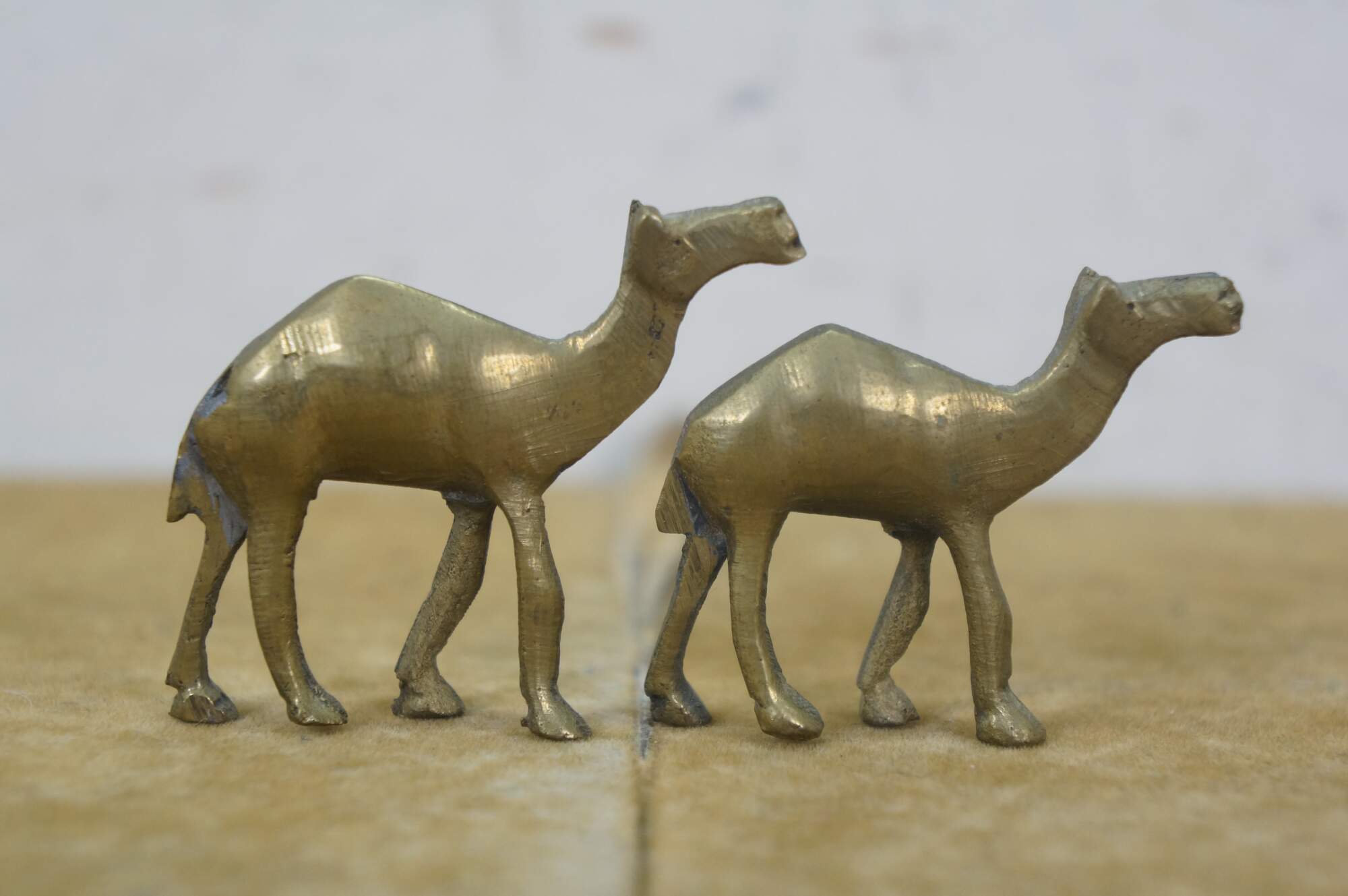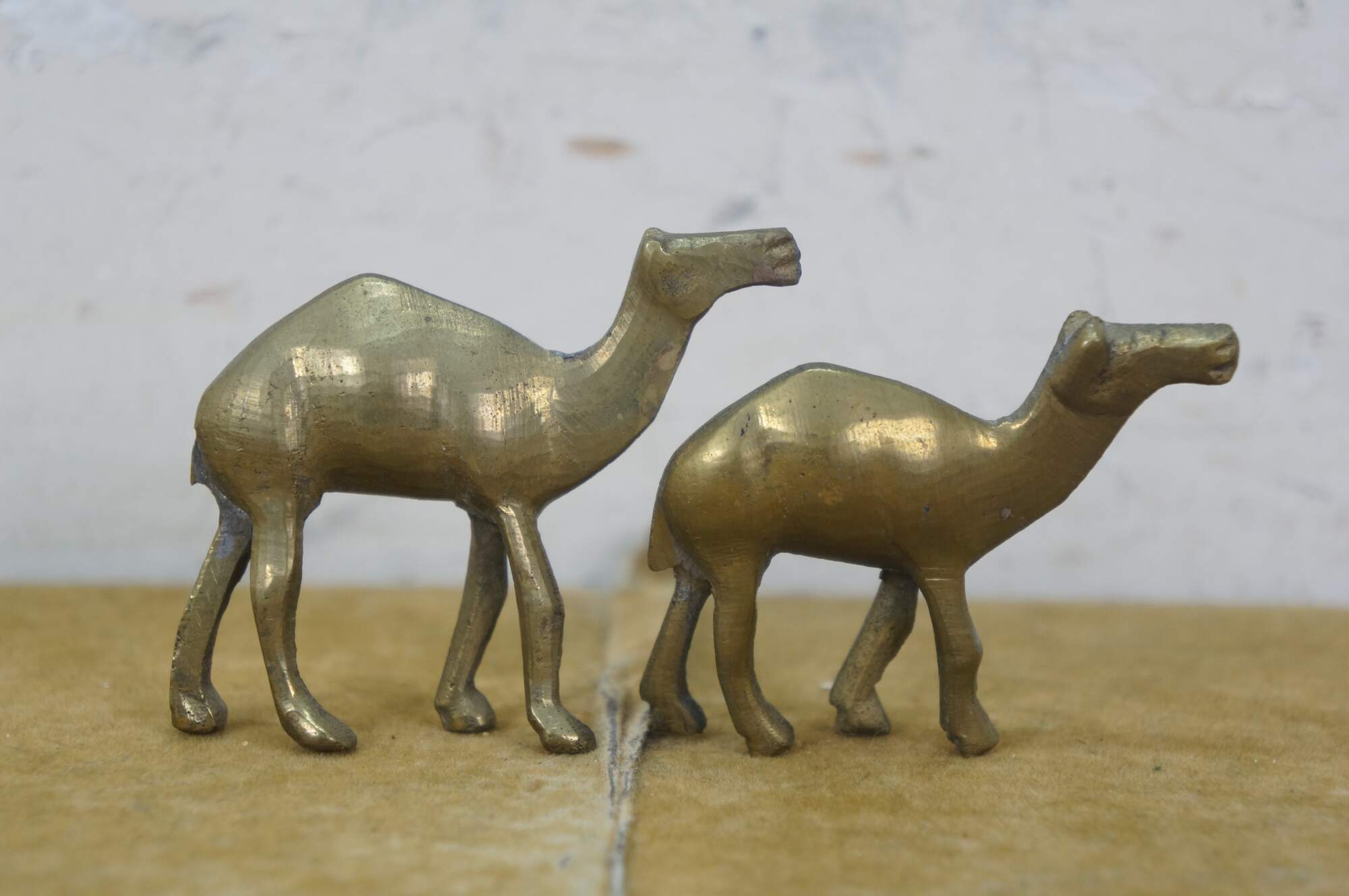 Set of seven vintage 20th century brass miniature camel figurines of slowly decreasing size.