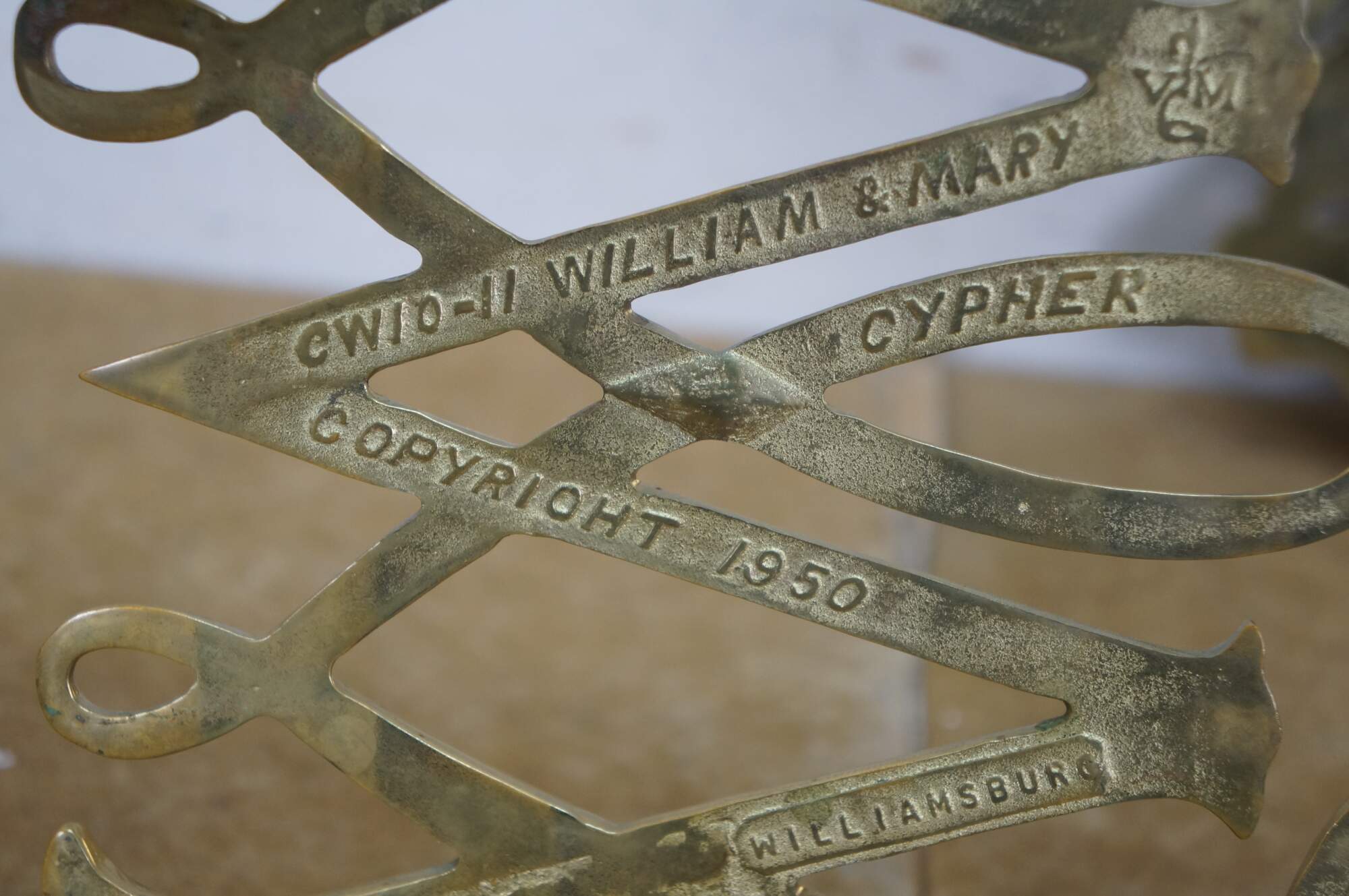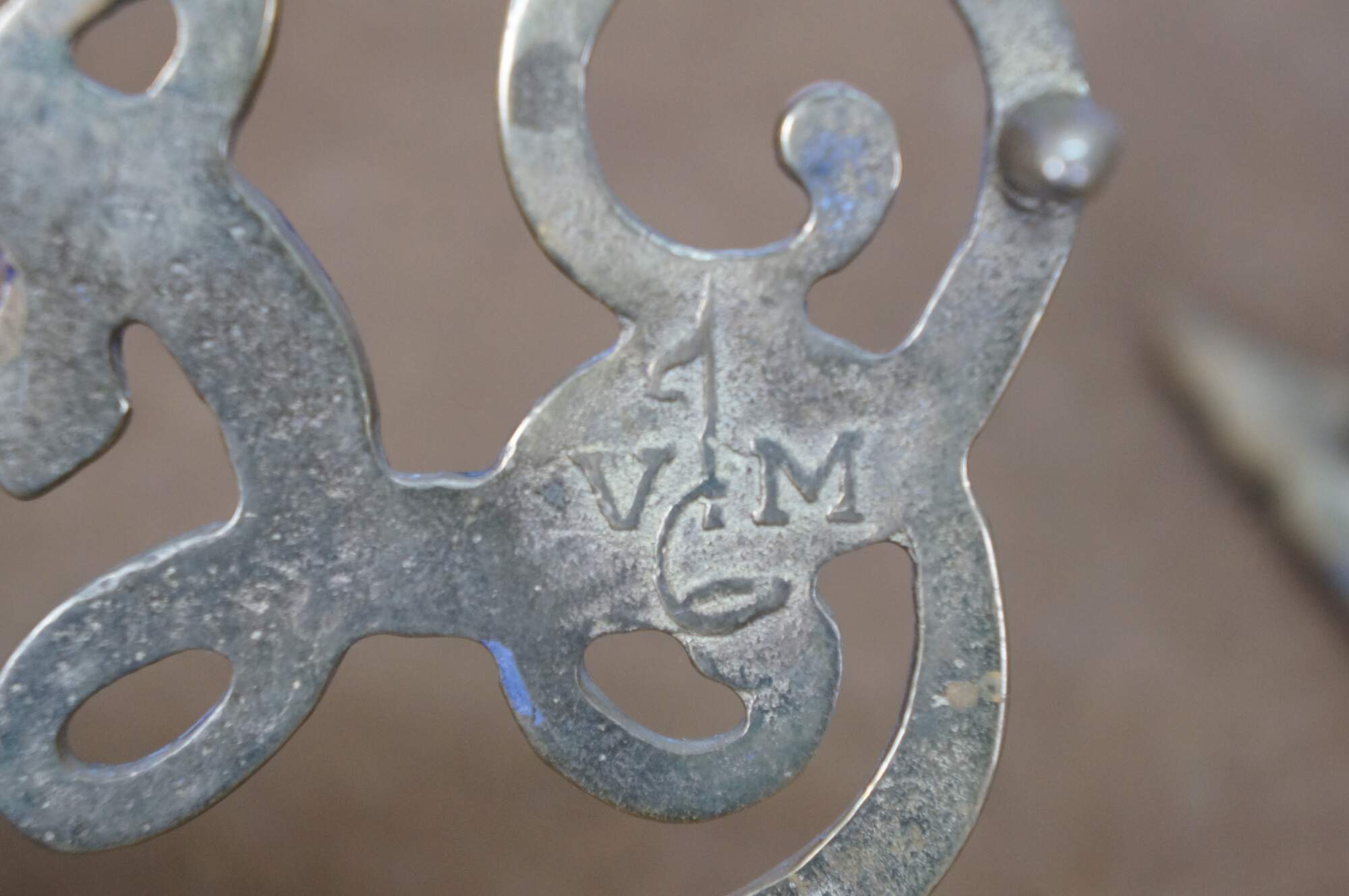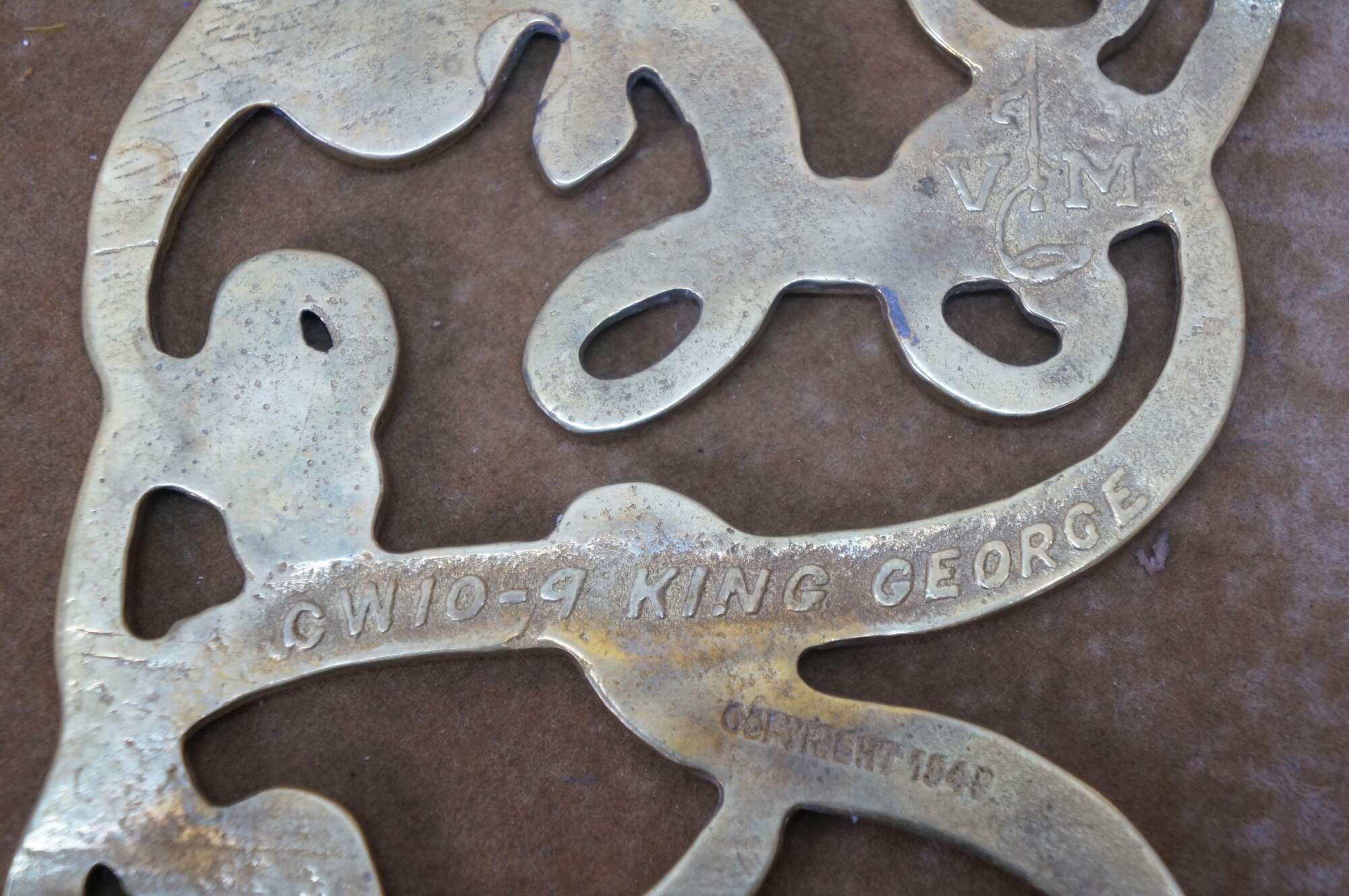 "Virginia Metalcrafters (VM) was founded in 1895 as the W. J. Loth Stove Company of Waynesboro, Virginia. (In 1890 it was called the Waynesboro Stove Company – still run by Mr. Loth.) They initially manufactured cast iron stoves and wood and coal heaters. In 1938 Loth installed a brass foundry and Virginia Metalcrafters became the brand name of the company’s brass and iron giftware line. March 1, 1940 marked the first use of the VM Betty Lamp hallmark on their products. When brass was once again available after World War II, production was resumed and their gift line was expanded. Charles Eckman bought the firm in 1953 and incorporated under the name Virginia Metalcrafters, Inc. In 1956 Virginia Metalcrafters acquired the Harvin Company of Baltimore, makers of fine brassware. In addition to their own original designs, Virginia Metalcrafters produced souvenir trivets for a variety of American touist destinations as well as many reproduction pieces for Colonial Williamsburg / Williamsburg Restoration, Inc. The Waynesboro foundry doors closed in 2006. " (Source: Trivetology)