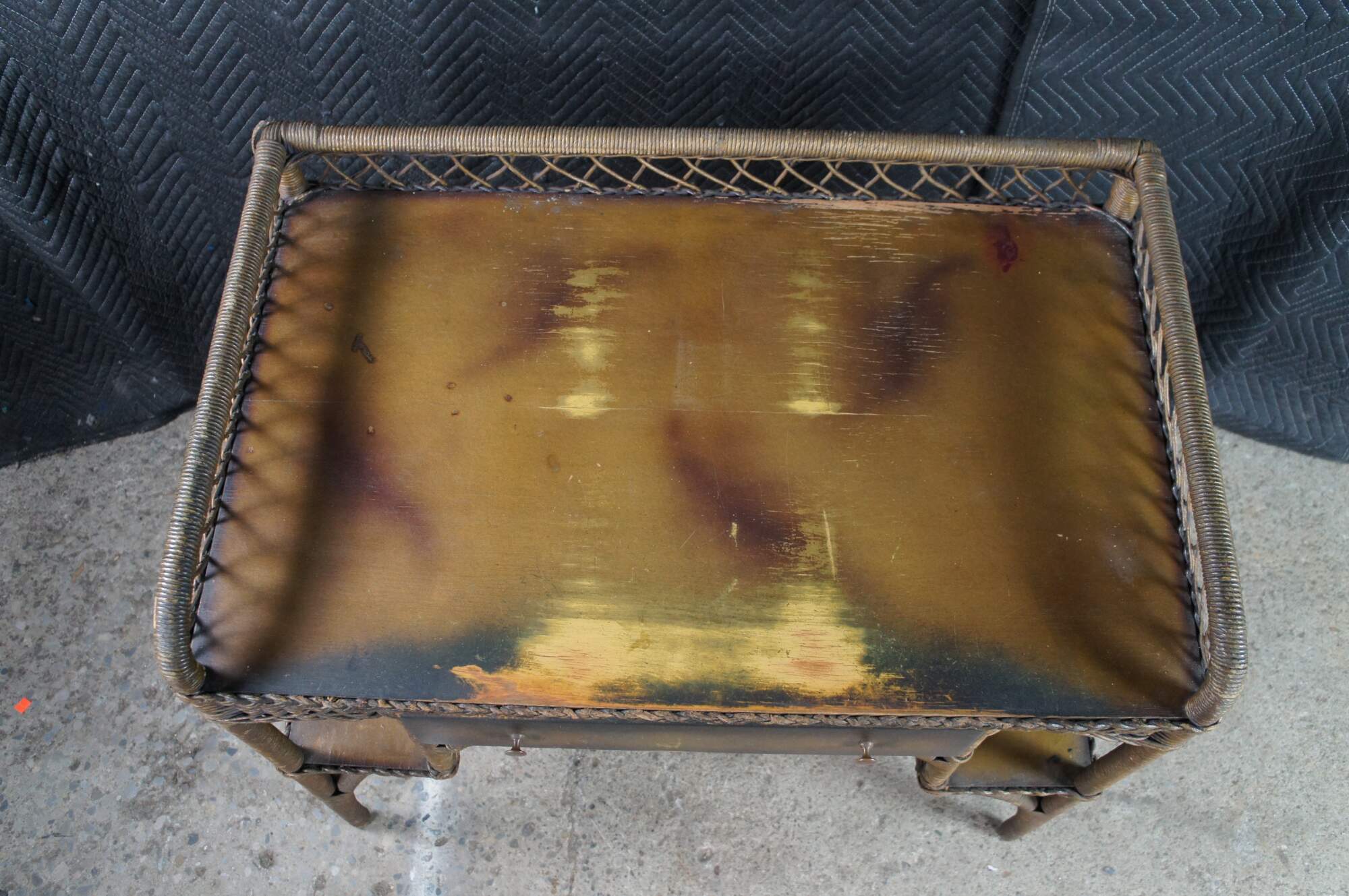 Structurally solid, heavy wear and distressing, finish loss, marking, scuffing, water damage at feet, oxidation, brakes, splits.