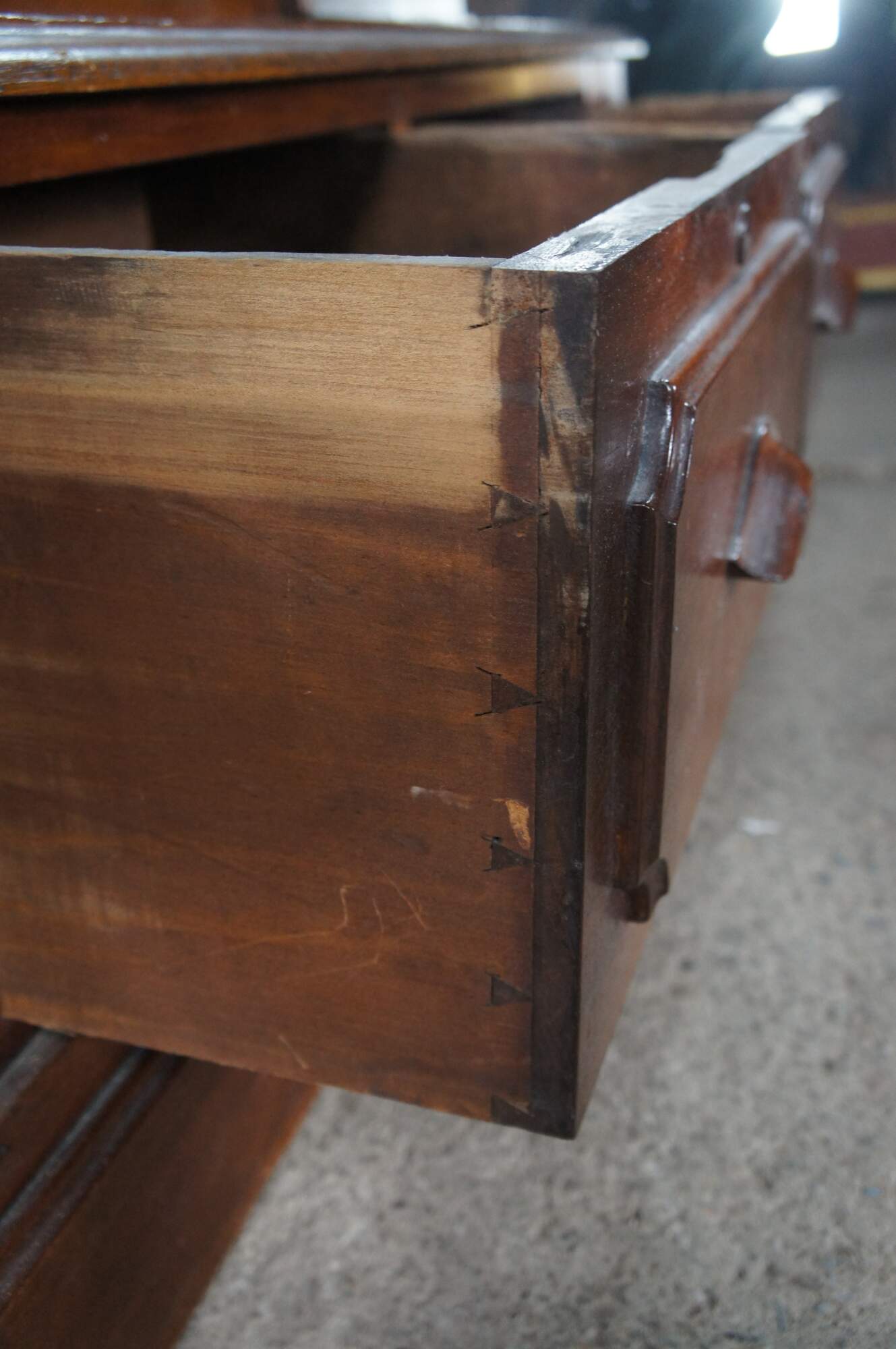 Structurally solid, wear and distressing from age and use, scuffing, fading, missing locks, missing trim, interior unfinished.