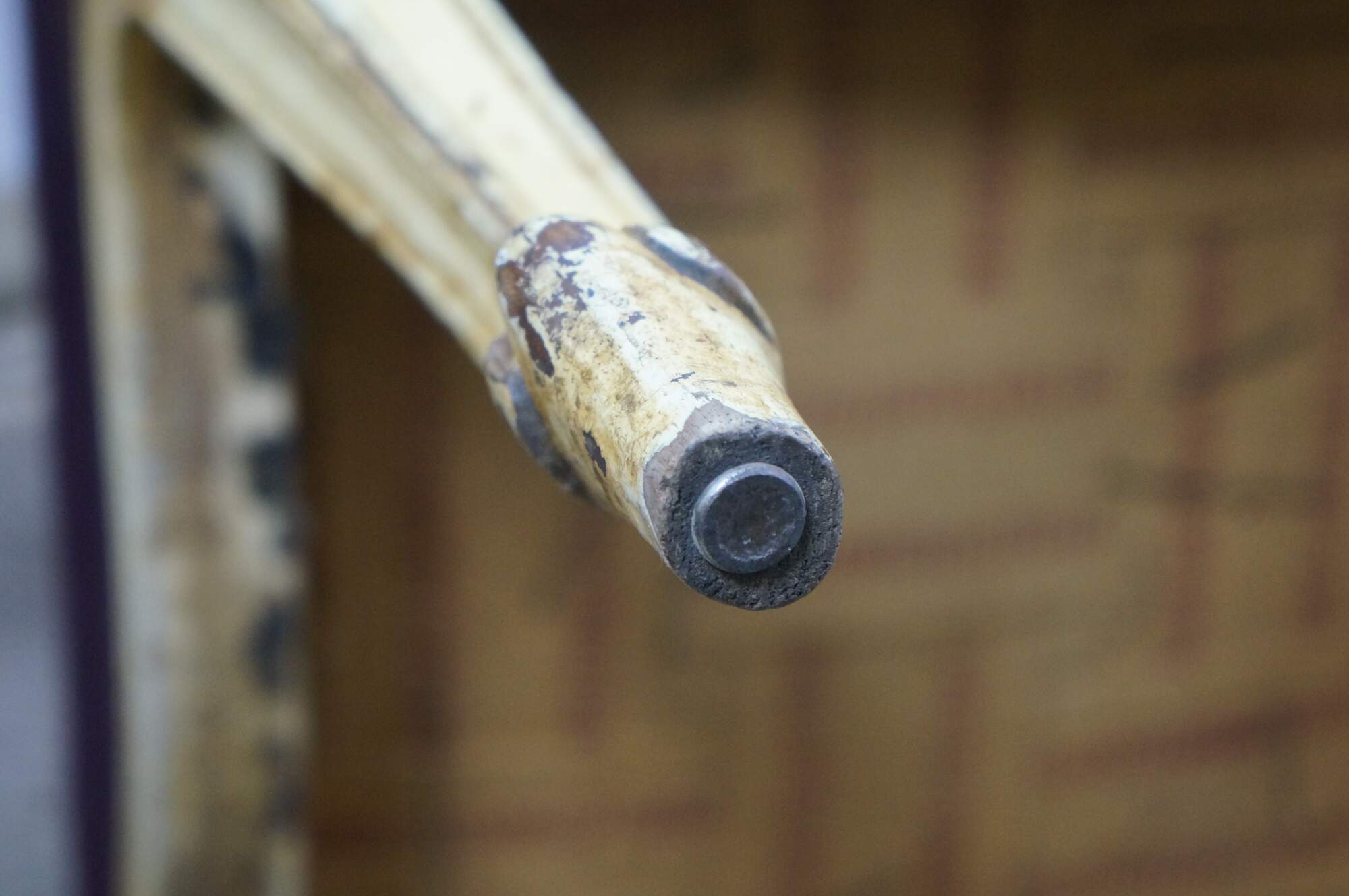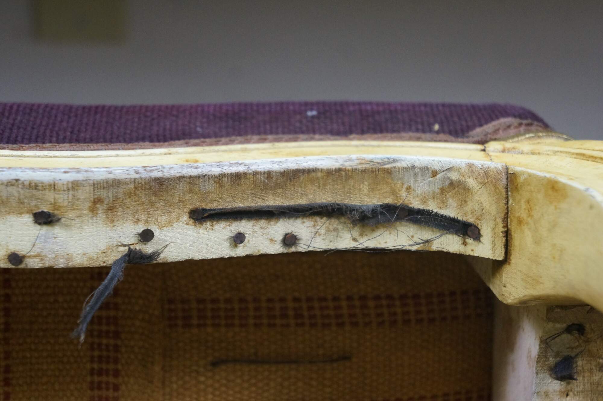 Scuffs/wear/finish loss/staining to legs; wear/fading to top; splitting