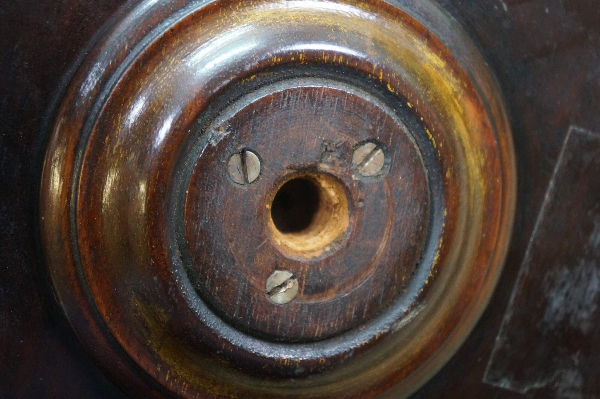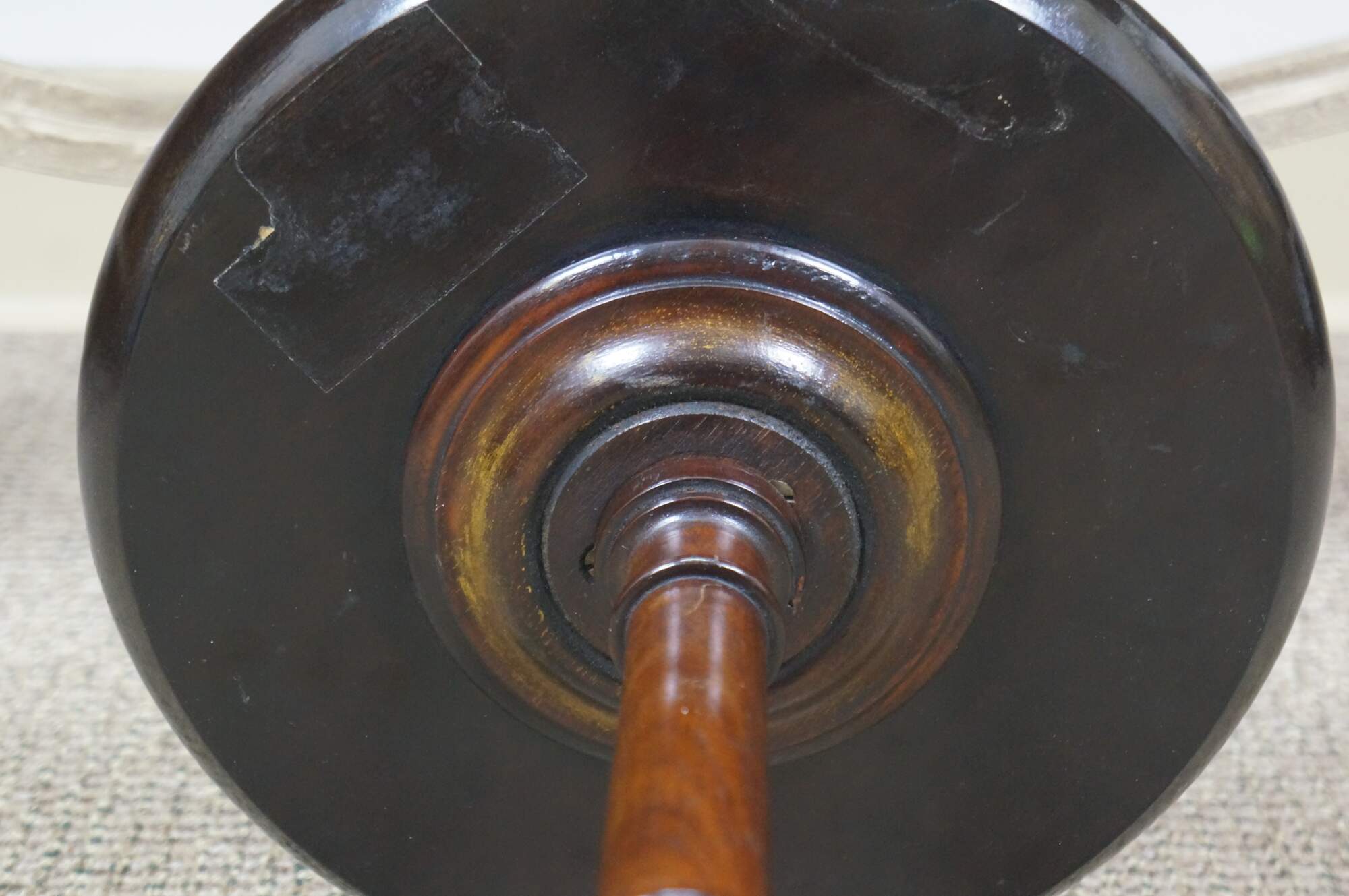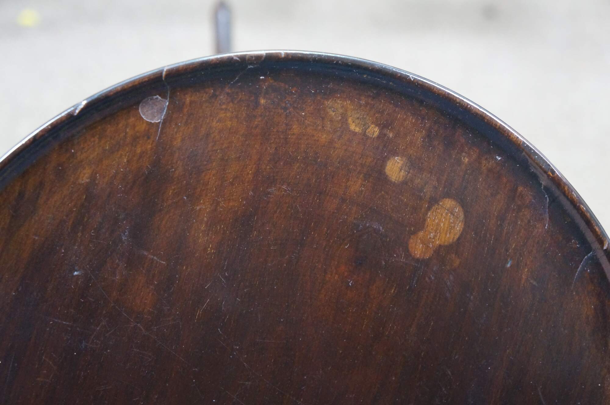 Good Overall - scuffing/finish loss/water spots; damage to wood screw - does not affect stability; one loose leg.