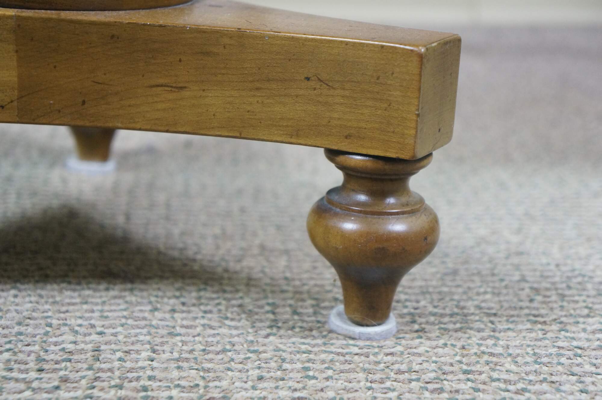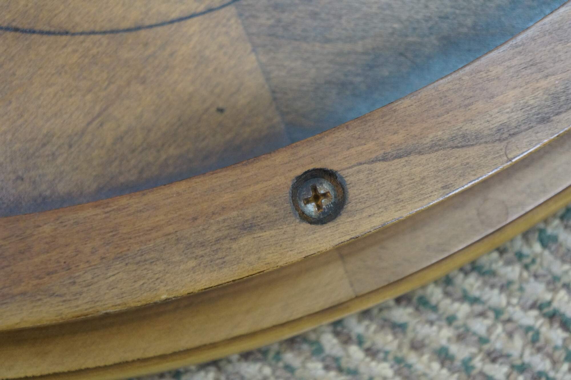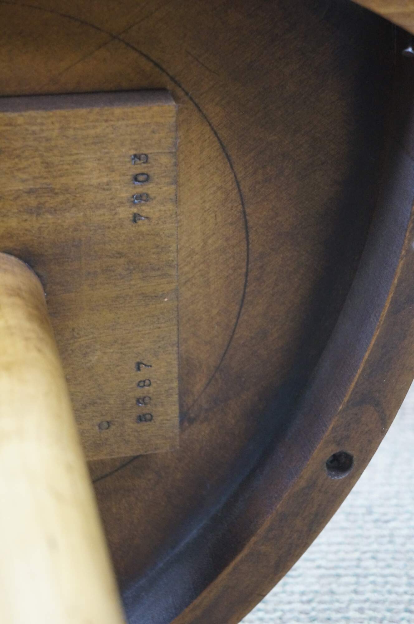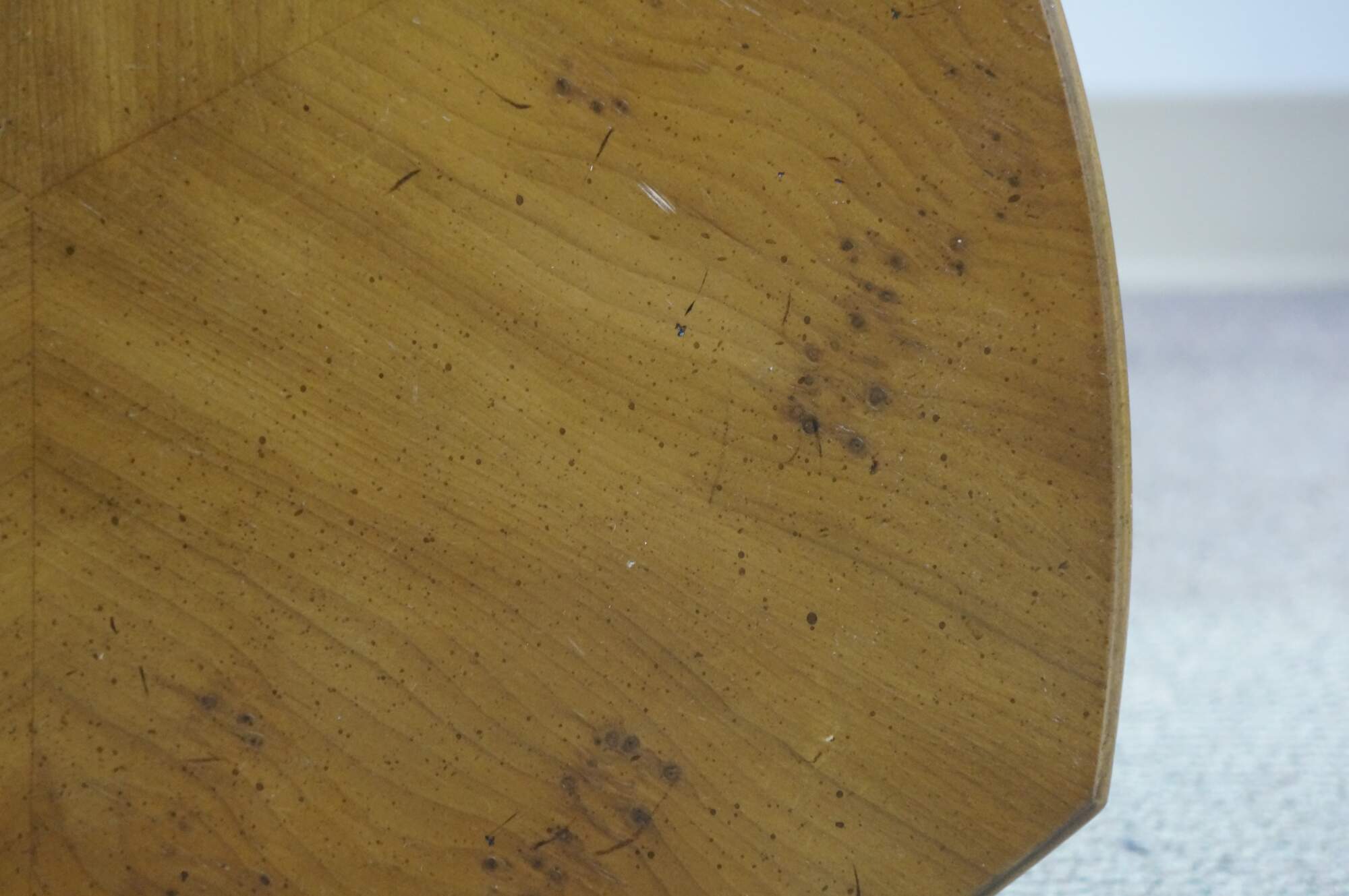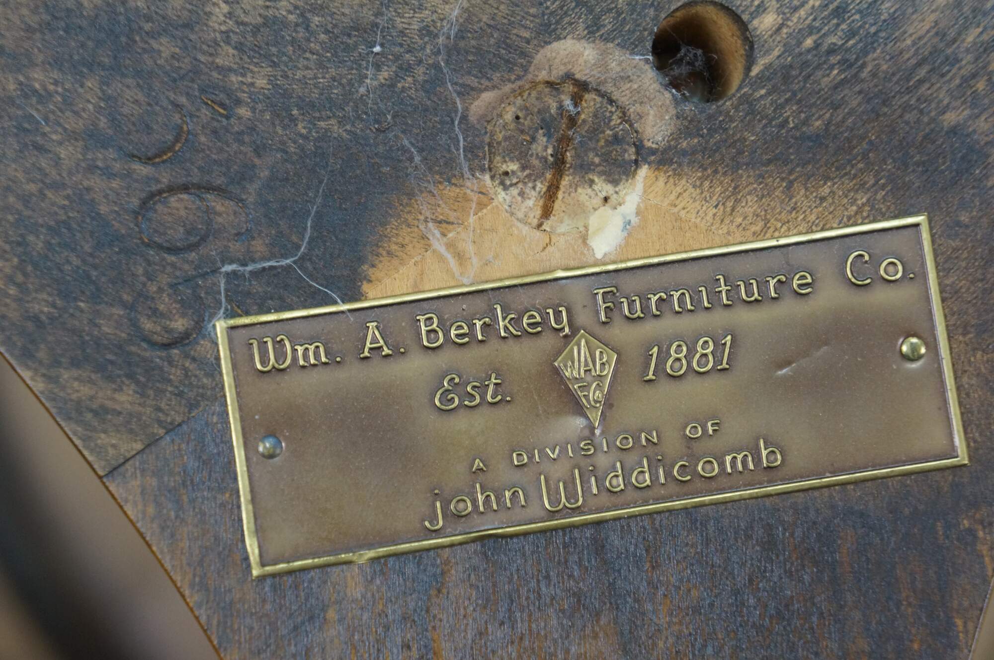Mid century William A. Berkey / John Widdicomb Olive wood side / end / accent table. Rounded triangular top with pedestal base and onion shaped feet.