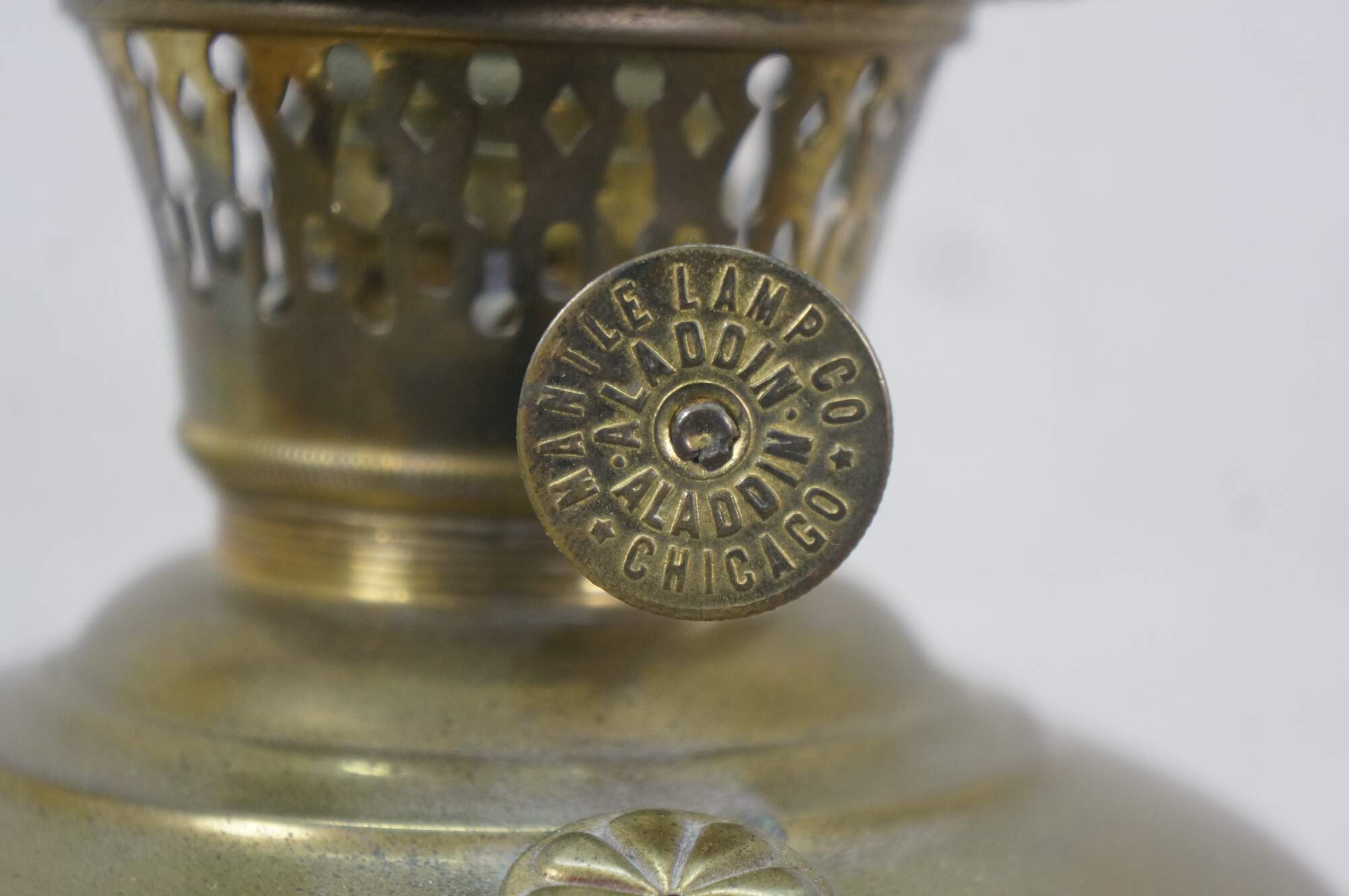 "As a small boy on a farm in Nebraska, Victor Samuel Johnson (Feb. 6, 1882 – Aug. 29, 1943) read the Arabian Nights story of Aladdin in a room of darkness except for the flickering yellow light of an open flame coal oil lamp. Later, as an adult, he found a new, bright light – it was called the “Practicus” from Germany. Johnson obtained rights to sell this lamp and then improved on its design. He would go on to call his new lamp the “Aladdin,” from the stories of his childhood, and the rest, is history. 1908 – Victor S. Johnson founded the Mantle Lamp Company of America in Chicago, Illinois and obtained the Aladdin trademark. An incandescent burner called the Practicus (or Praktus) was imported from Germany and is first sold under the Aladdin name. 1909 – The first model of the American-made Aladdin lamp was sold. 1911 – First mantle designed and patented by Charles H. Smith for Aladdin, called the Kone Kap mantle, first used on Model 3. 1915 – The Aladdin Model 6 lamp won a gold medal at the Panama Pacific International Exhibition for the best kerosene lamp in the world. 1926 – The name of the company was changed to Aladdin Industries. Johnson bought the Lippincott Glass factory in Alexandria, Indiana to make glass lamps, chimneys and shades. A factory was built on a 13-acre site, which was incorporated into a village called Aladdin with 22 residents. Agents were recruited to sell throughout the country door-to-door, leaving lamps in the home for an overnight trial. 1928 – The company turned solely to franchise dealers (some 15,000 in the 1930s). Model 12 introduced the first Lox-On chimneys and the first Lox-On mantles. 1930 – Electric lamps first sold. 1931 – The Lox-On Mantle is patented. 1932 – Model A introduced a switch from central draft to “Nu-Type” side draft burners; with the center draft tube removed, lamp fonts could now be made of glass as well as metal. 1937 – Ohio River flooded Louisville and Cincinnati; Aladdin rushed lamps to thousands stranded without power. 1944 – Aladdin aided the war effort in WWII: they were granted permission by War Production Board to use copper to make burners which reduced need for copper wire to electrify homes; burners used in Servel refrigerators helped preserve serum and plasma on the battlefields; Aladdin also developed the midget foxhole stove, pressure lantern, barometric bomb detonation fuse, and permeability tuning for radios and precision parts for military radio equipment. 1945 – Victor S. Johnson, Jr. returned from service and took over, following the sudden death of his father in 1943. 1949 – The Mantle Lamp Company merged with its subsidiary Aladdin Industries, Inc. The company moved the central office from Chicago to Nashville, Tennessee. 1955 – Naugatuck River floods the Plume & Atwood fabricating plant, destroying all plant equipment, bringing an end to the production of the popular Model B burner. 1956 – Production of electric lamps ended. 1963 – Brass lamp manufacturing moved from USA to England. 1973 – Aladdin Knights collector organization is formed to collect and preserve memorabilia. 1977 – Burner manufacturing began in Hong Kong. 1999 – Aladdin Industries sold the lamp division to 14 members of the Aladdin Knights (collectors/investors), who changed the name of the company to Aladdin Mantle Lamp Company (headquarters located in Clarksville, Tennessee). 2015 – Crownplace Brands, Ltd. purchased the assets of Aladdin Lighting Technologies, Inc (ALT); all stock and assembly were relocated to Dalton, Ohio." (Source: Aladdin Lamps)