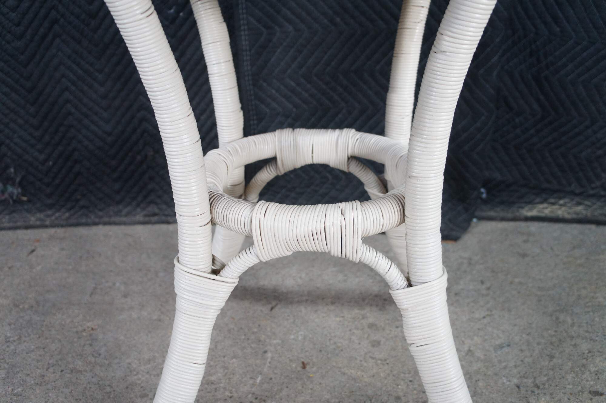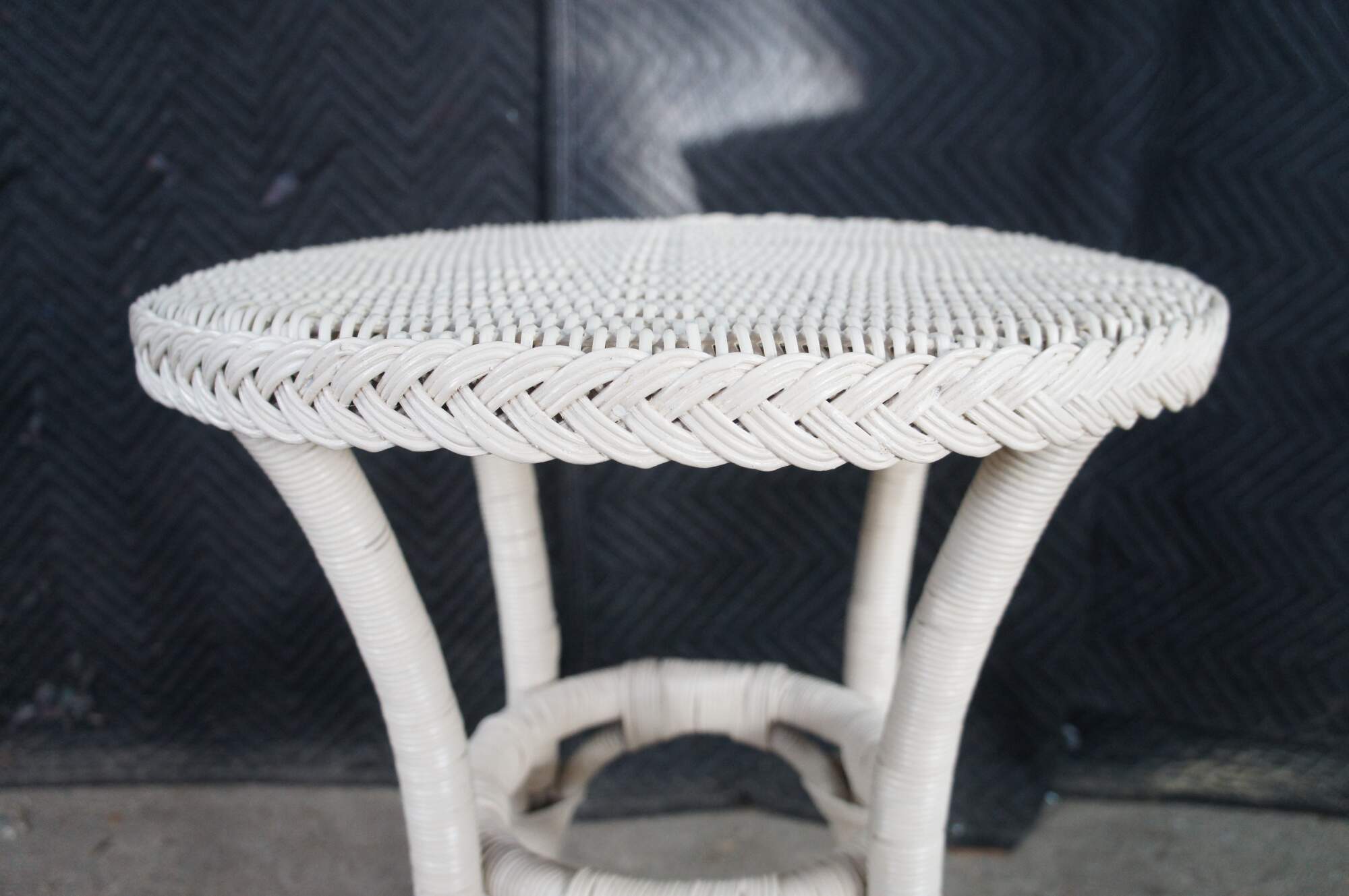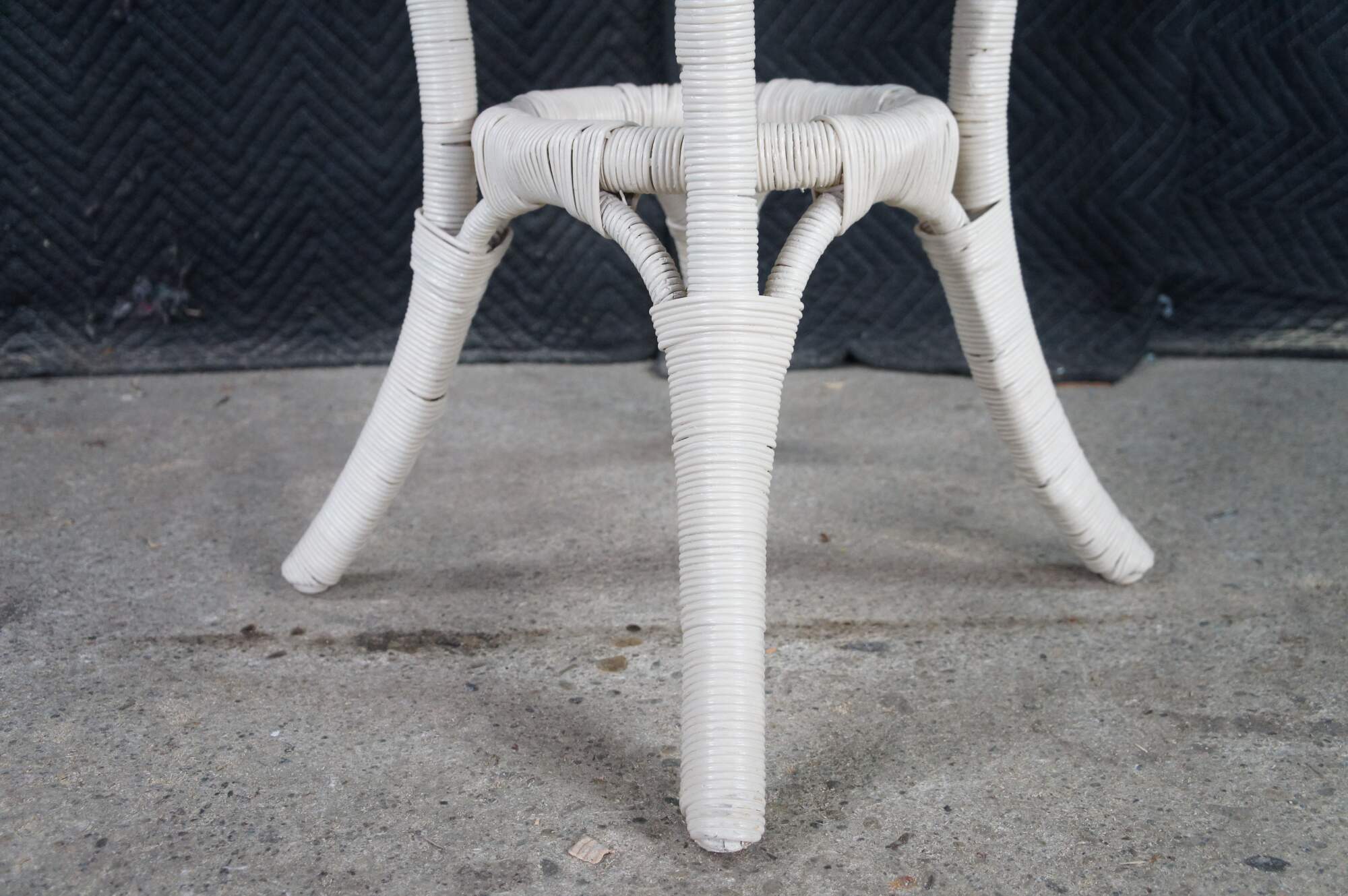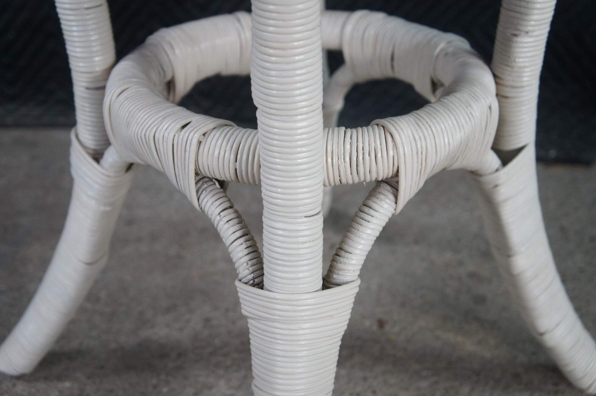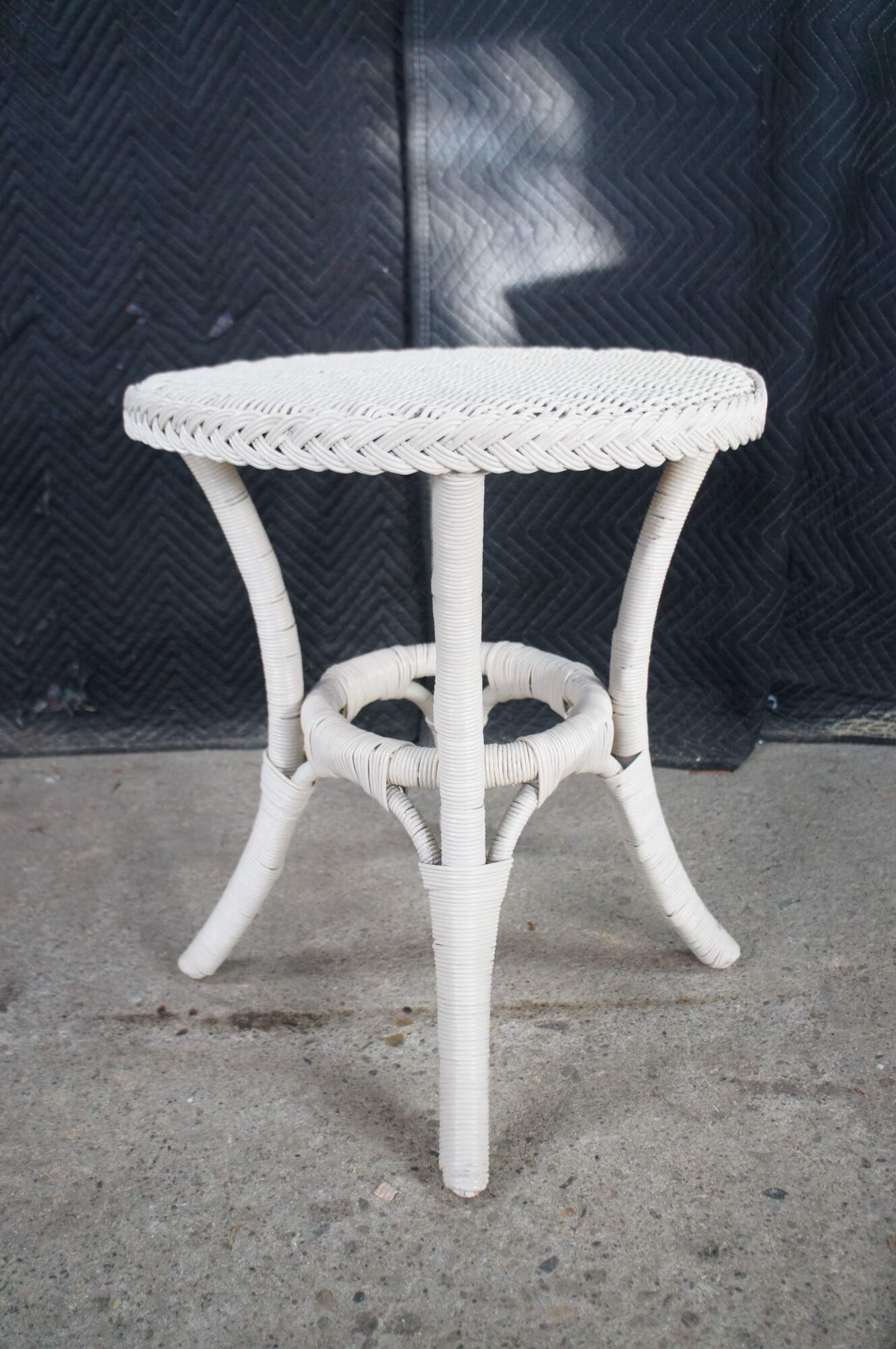 Vintage round white Boho Chic bamboo / wicker / rattan pedestal table / stand.