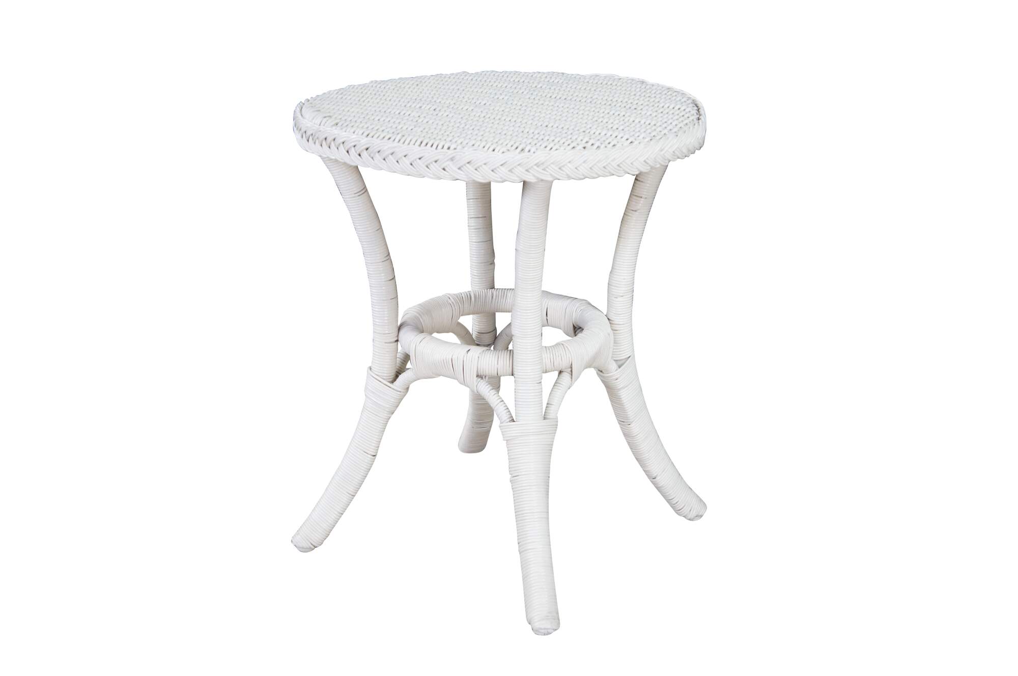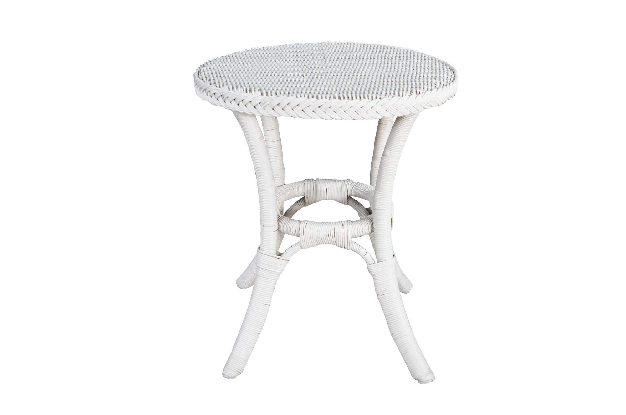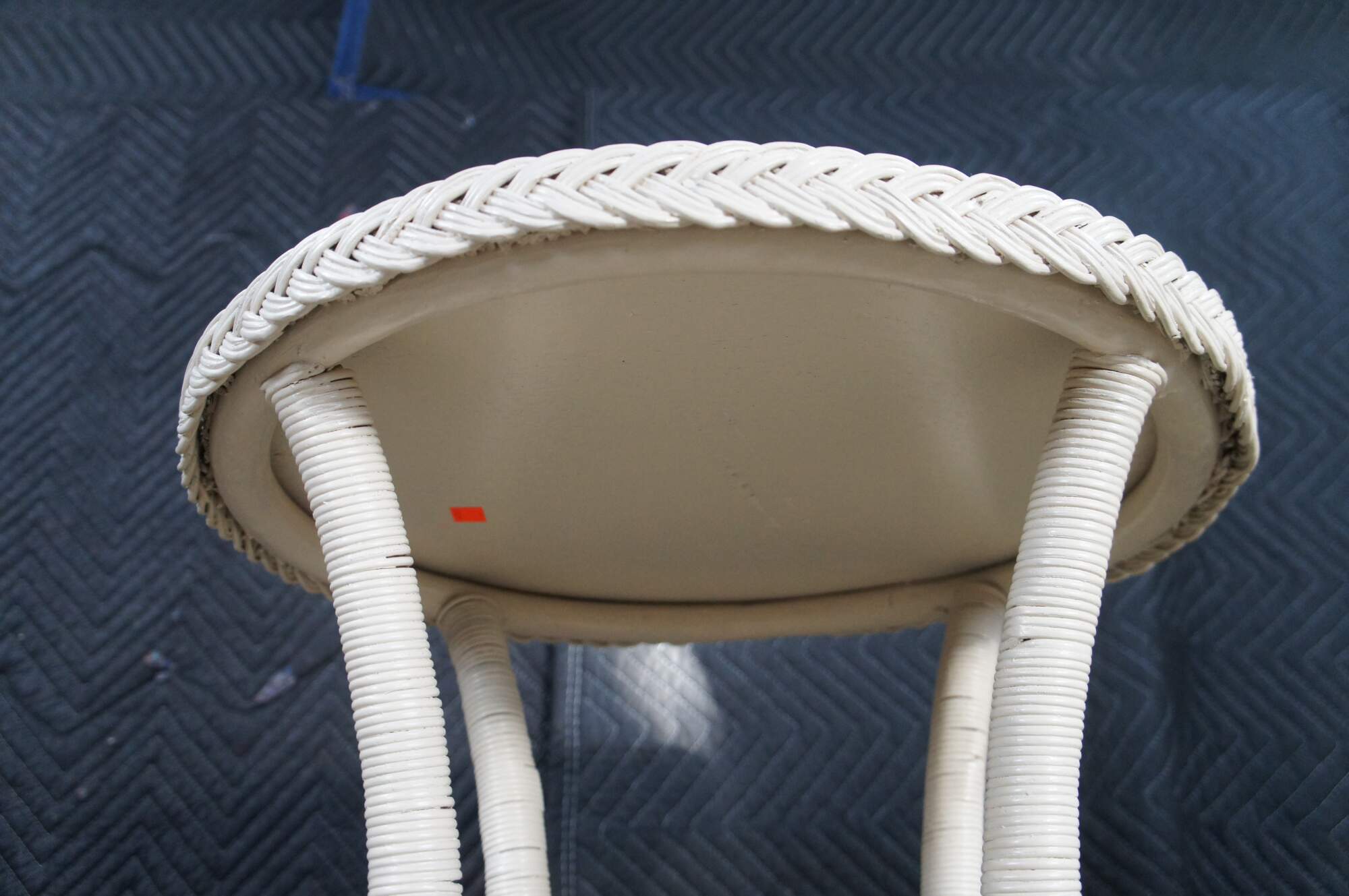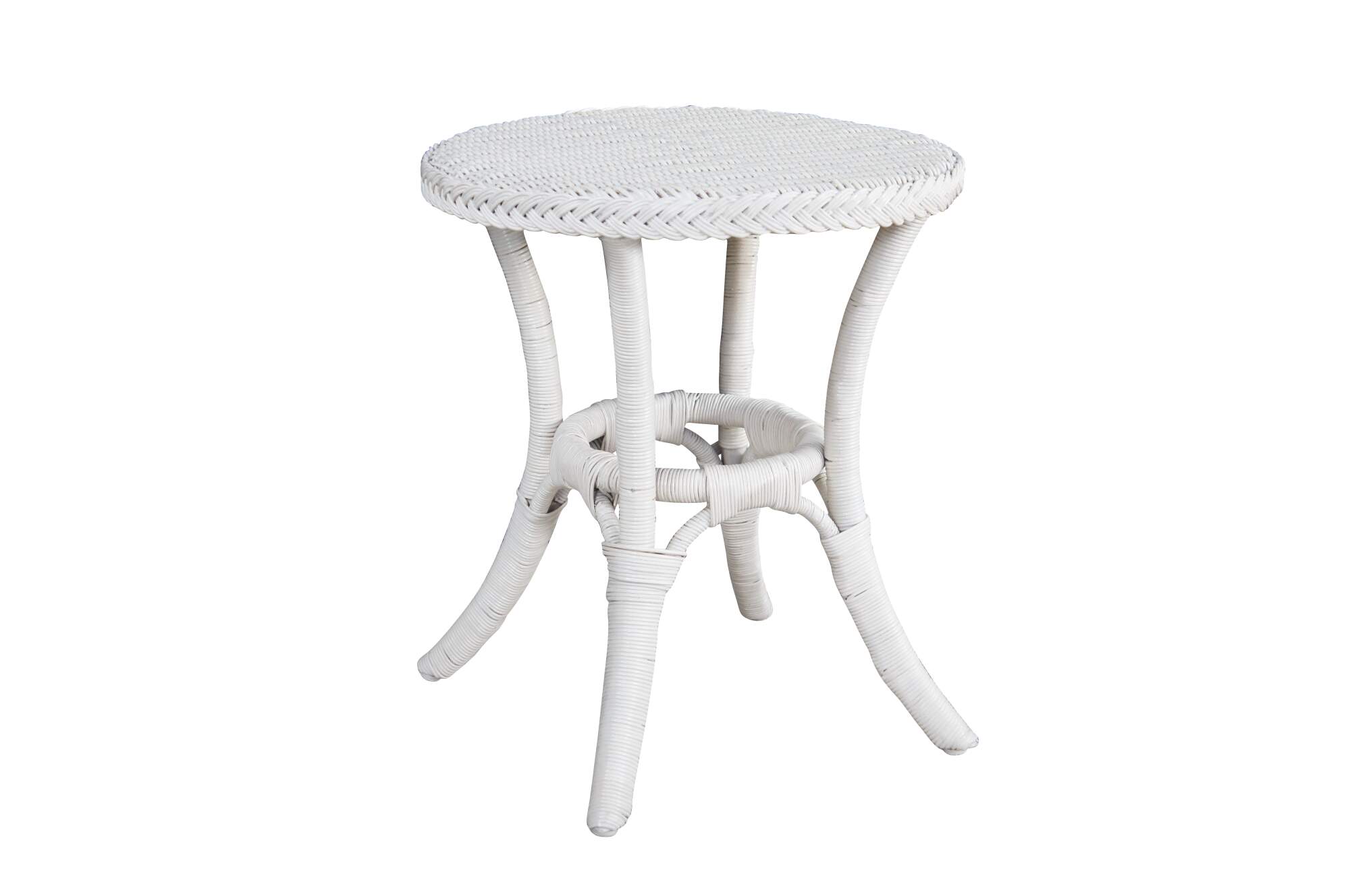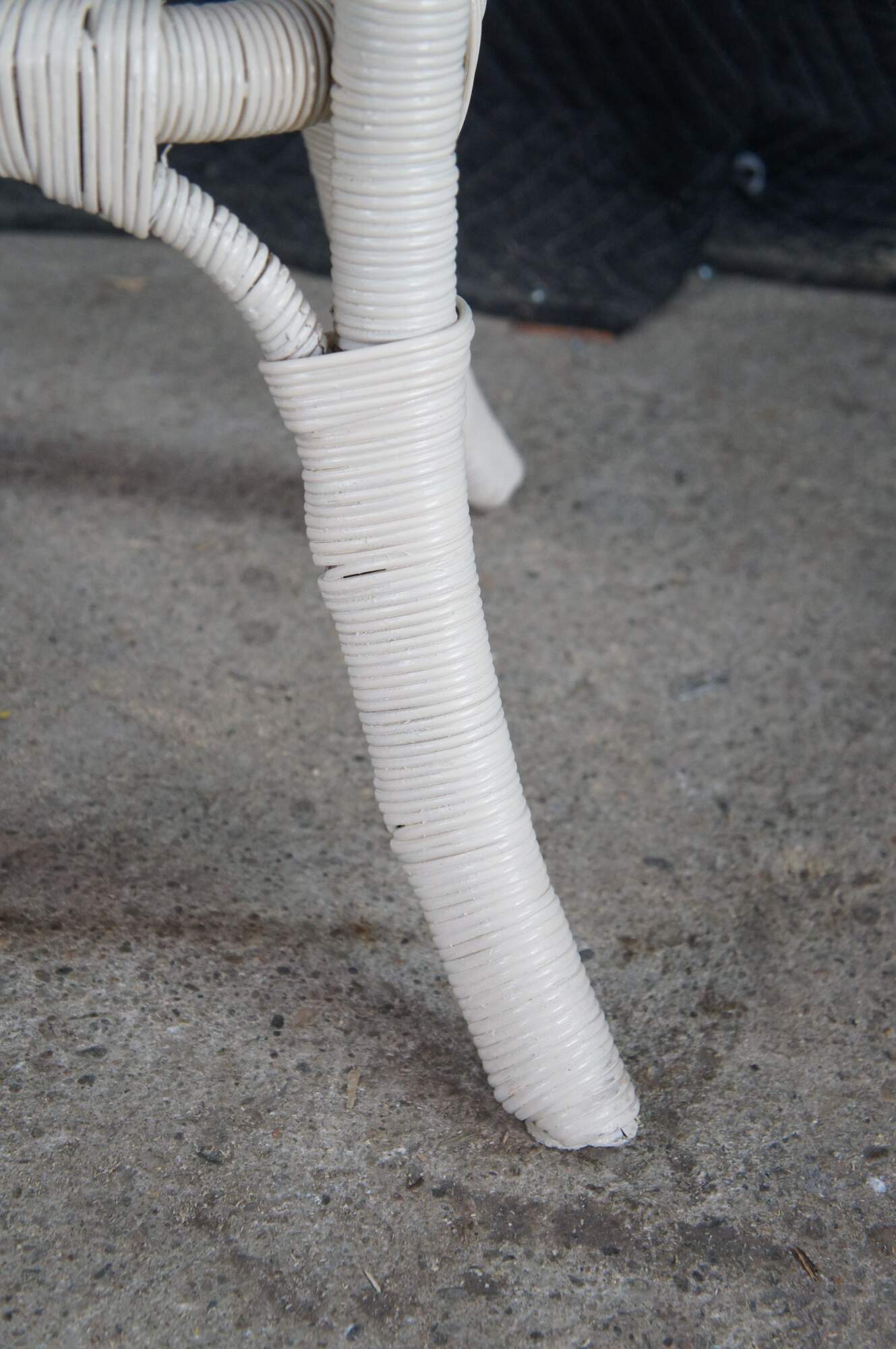 Vintage round white Boho Chic bamboo / wicker / rattan pedestal table / stand.