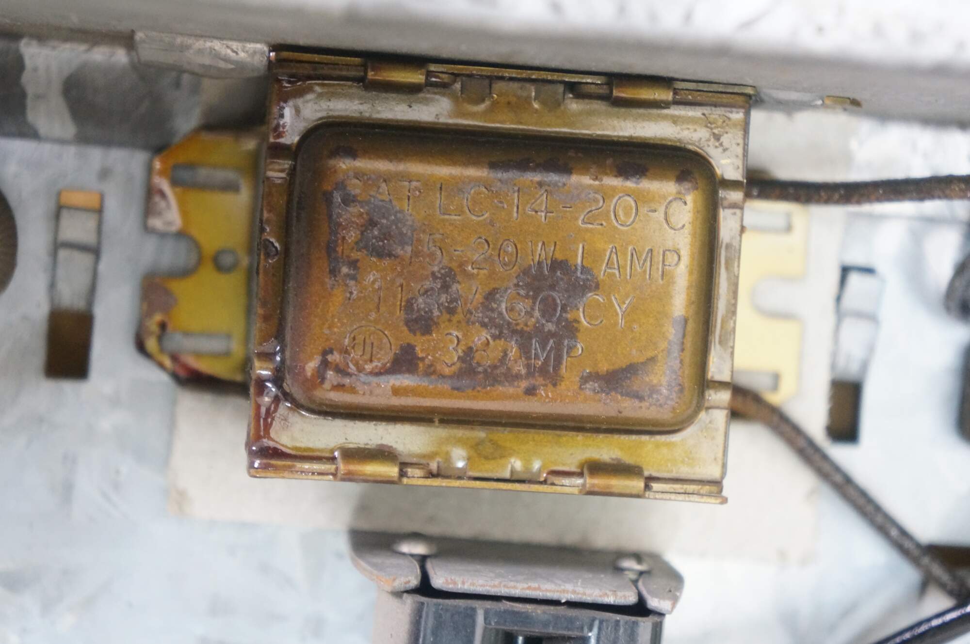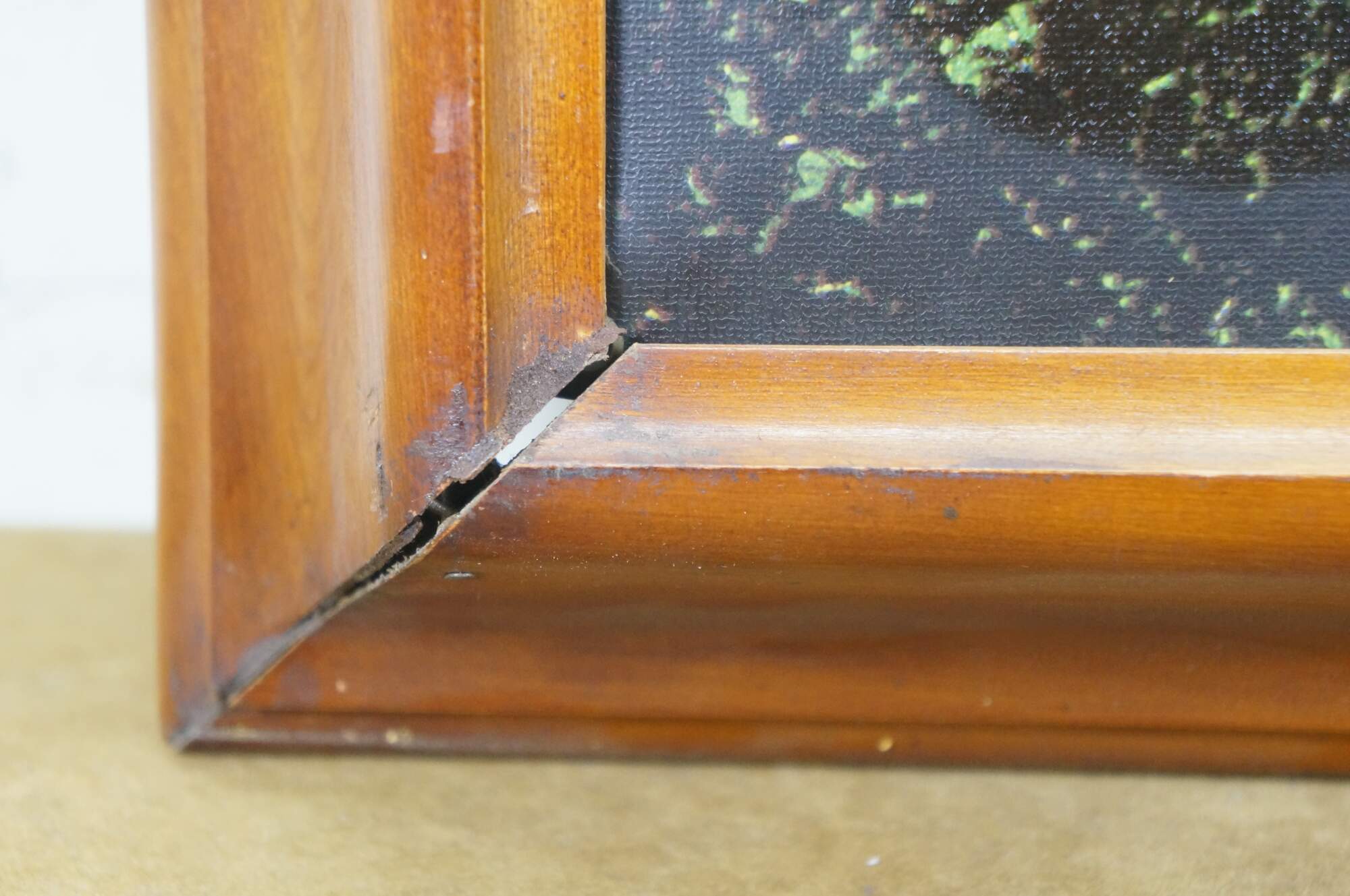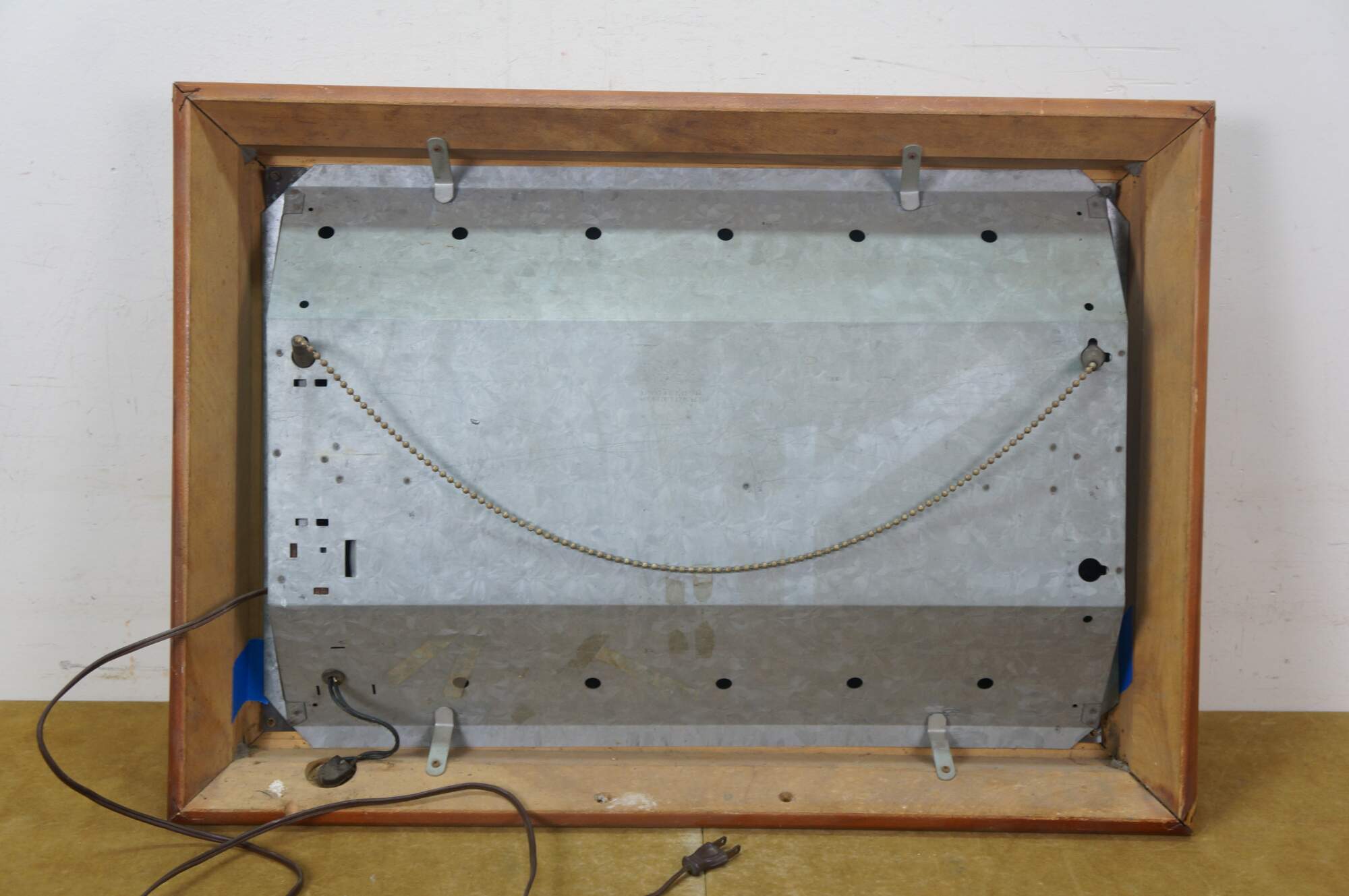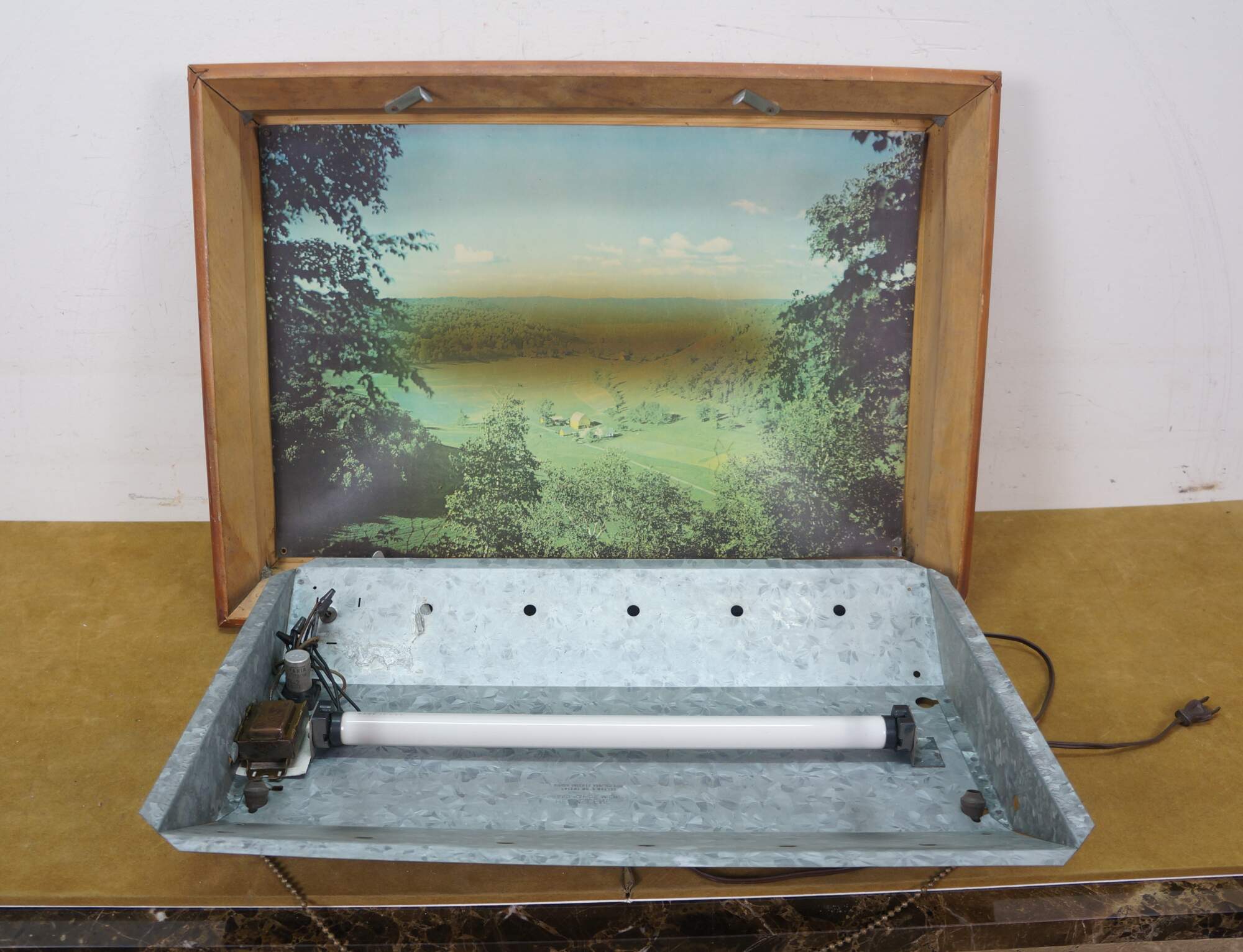 Wear and distressing; marking / scuffing; slight gaps at corners; needs new bulb