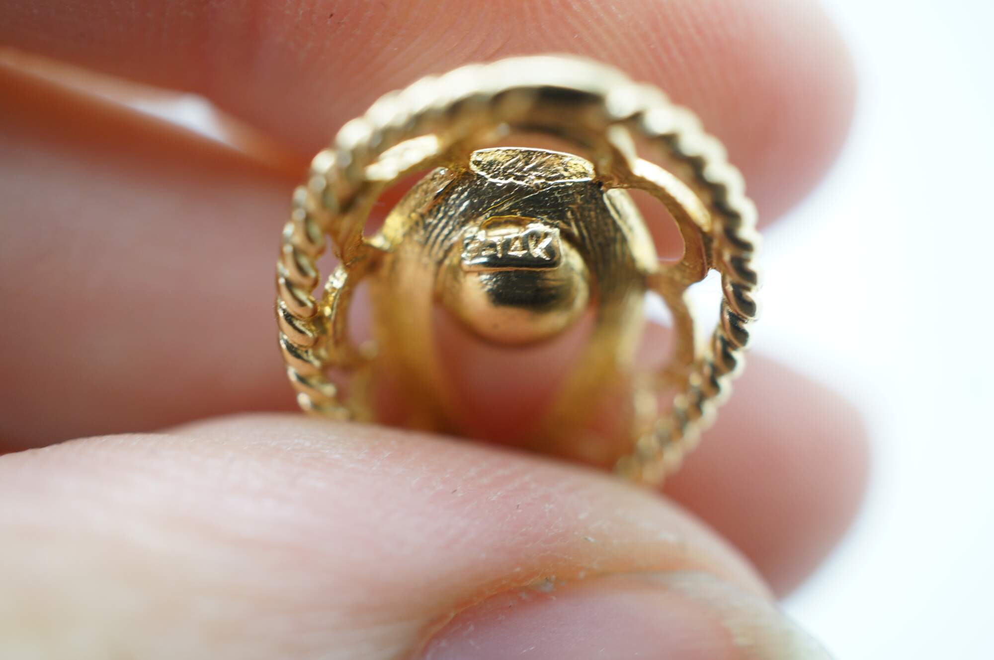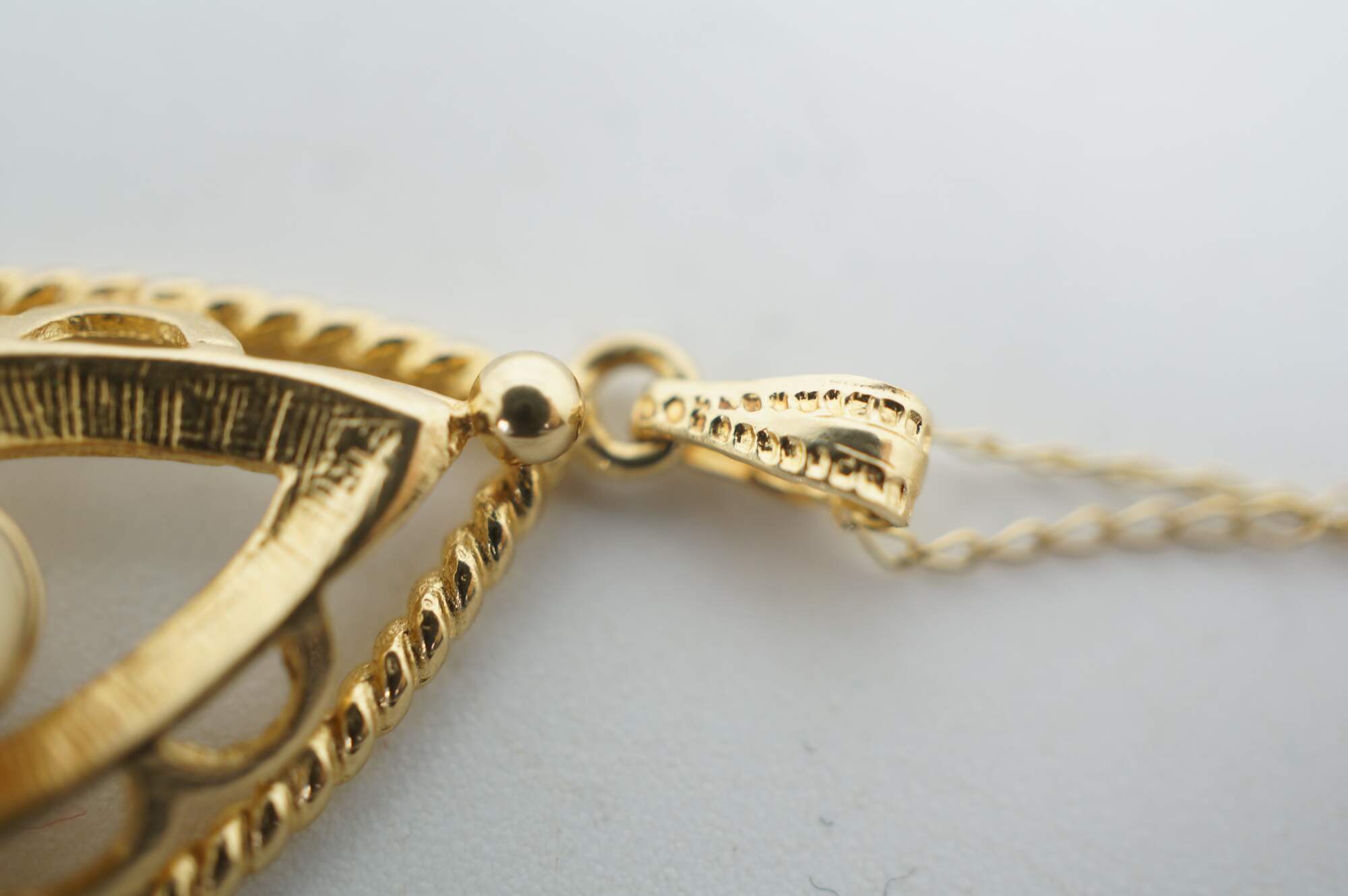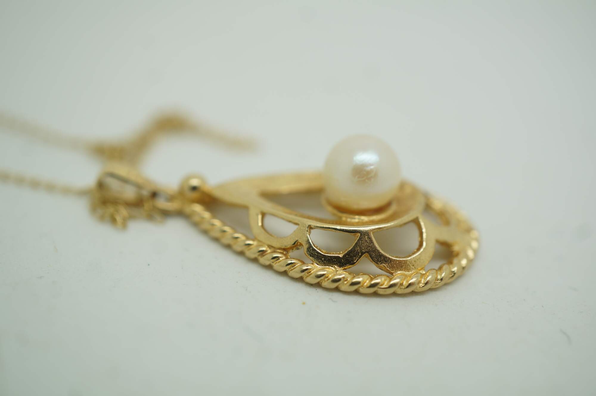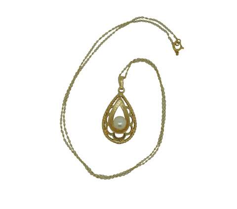 Vintage 14k Yellow Gold and Pearl tear drop shaped pendant statement necklace.
