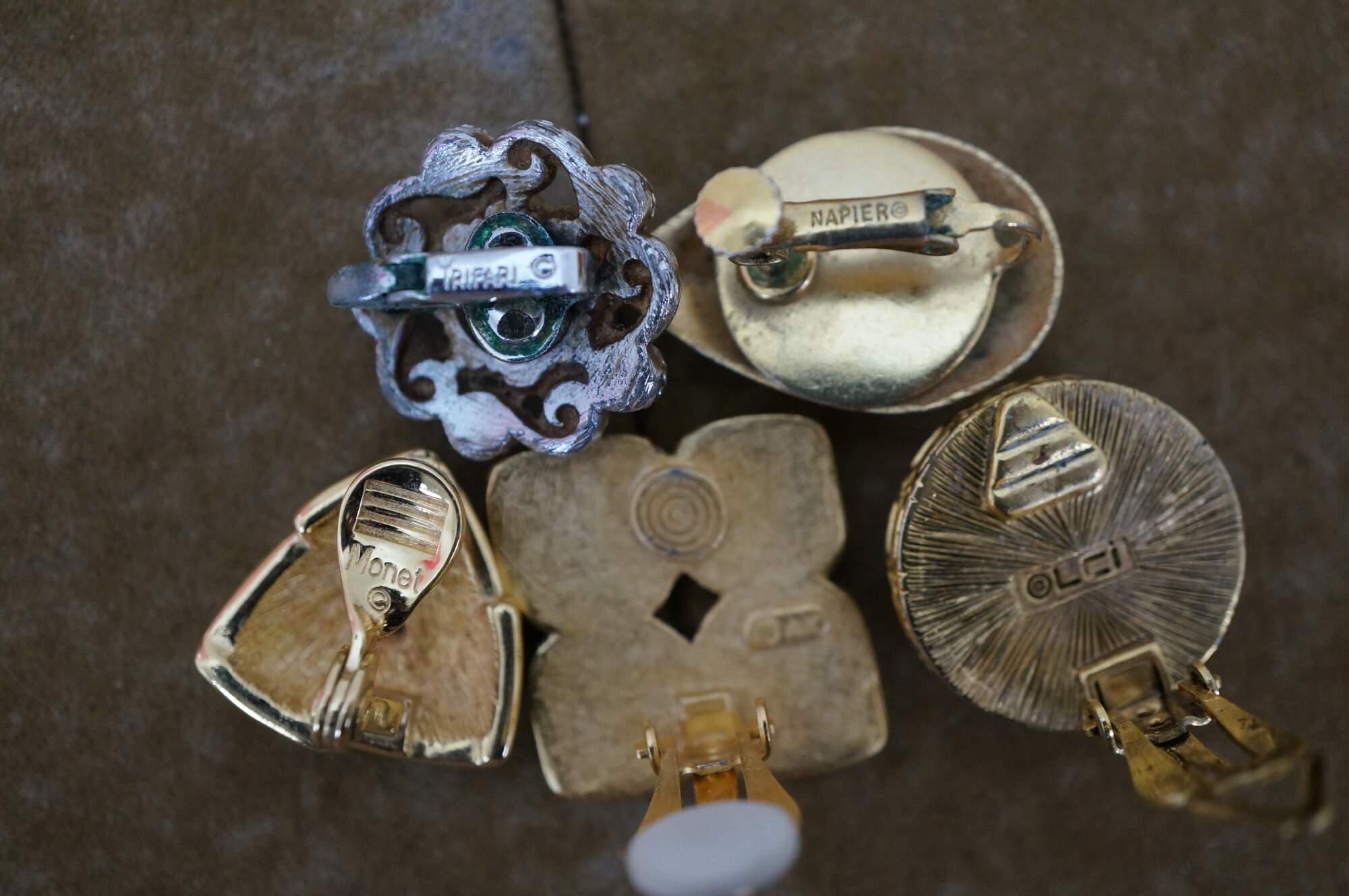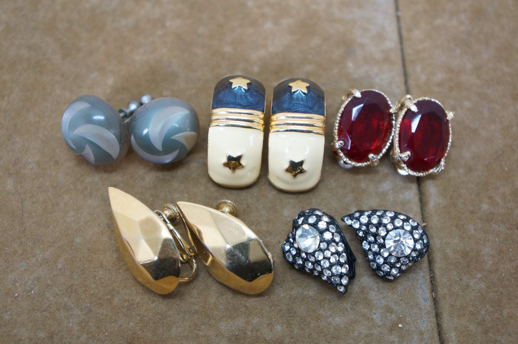 Lot of 21 vintage costume jewelry clip-on earrings.