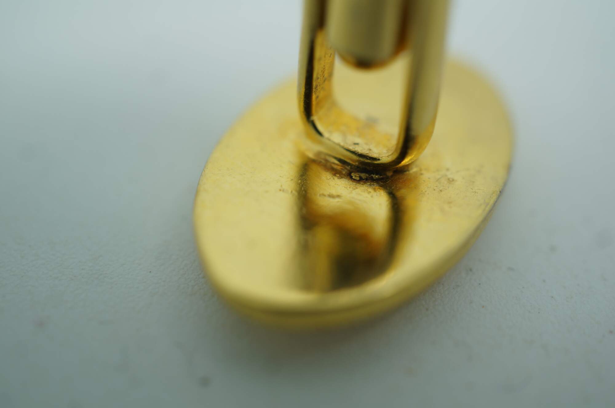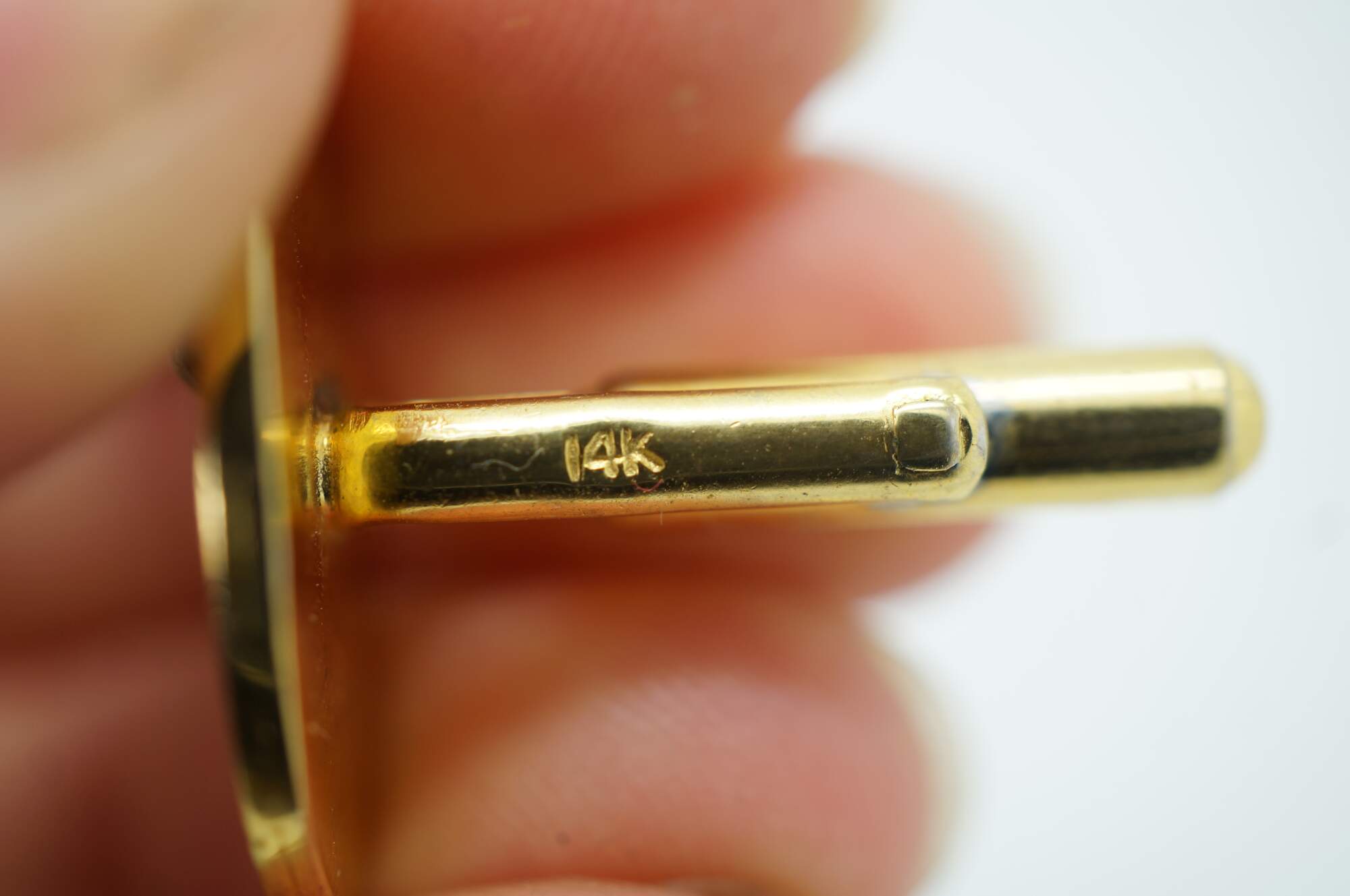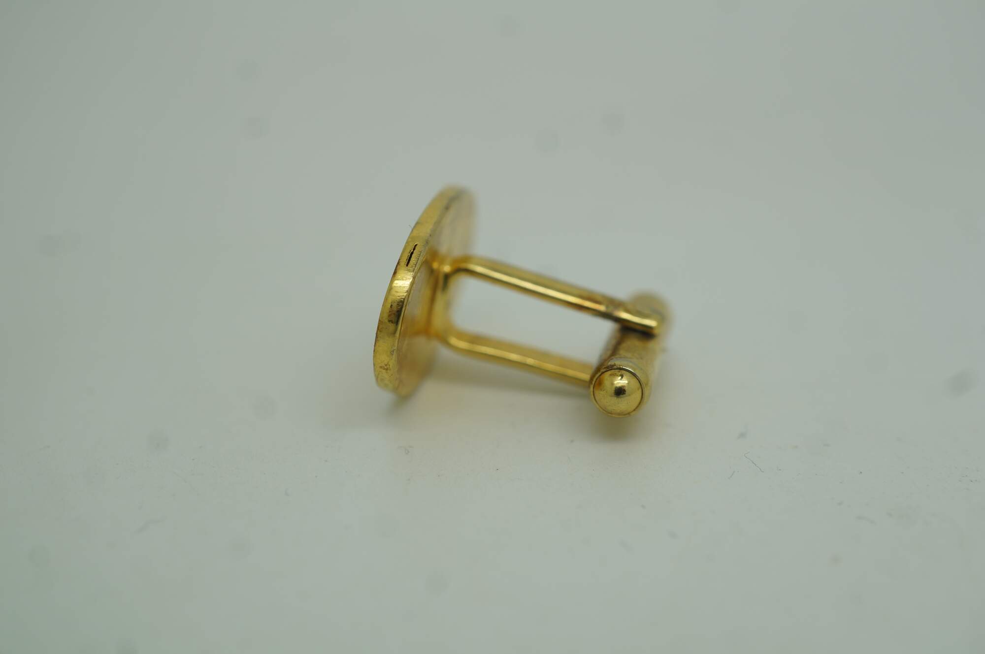 Vintage pair of oval 14k gold cufflinks featuring green jade cabochons and the Chinese character for "Fu" (福), which symbolizes good luck, happiness, and fortune.