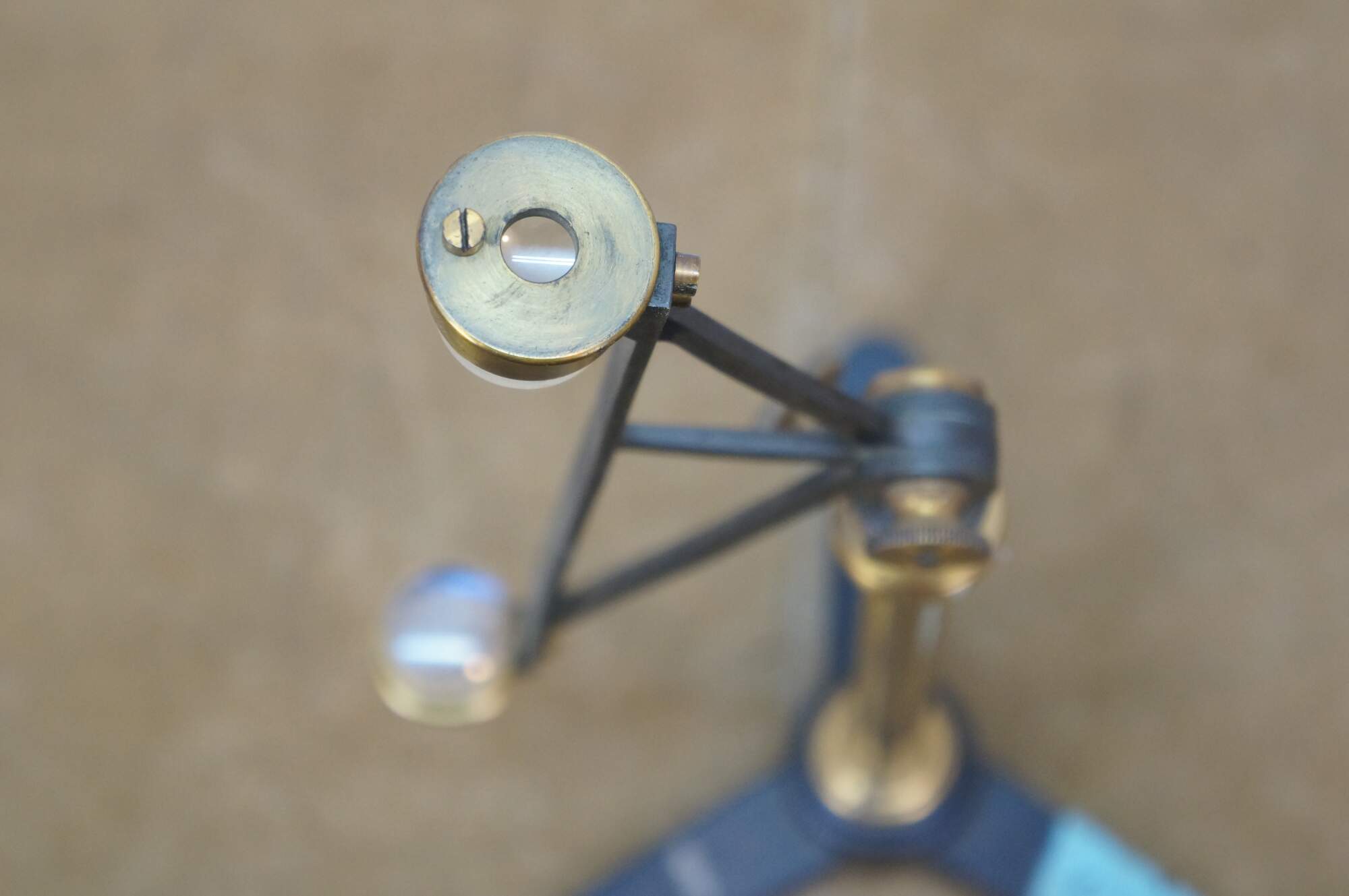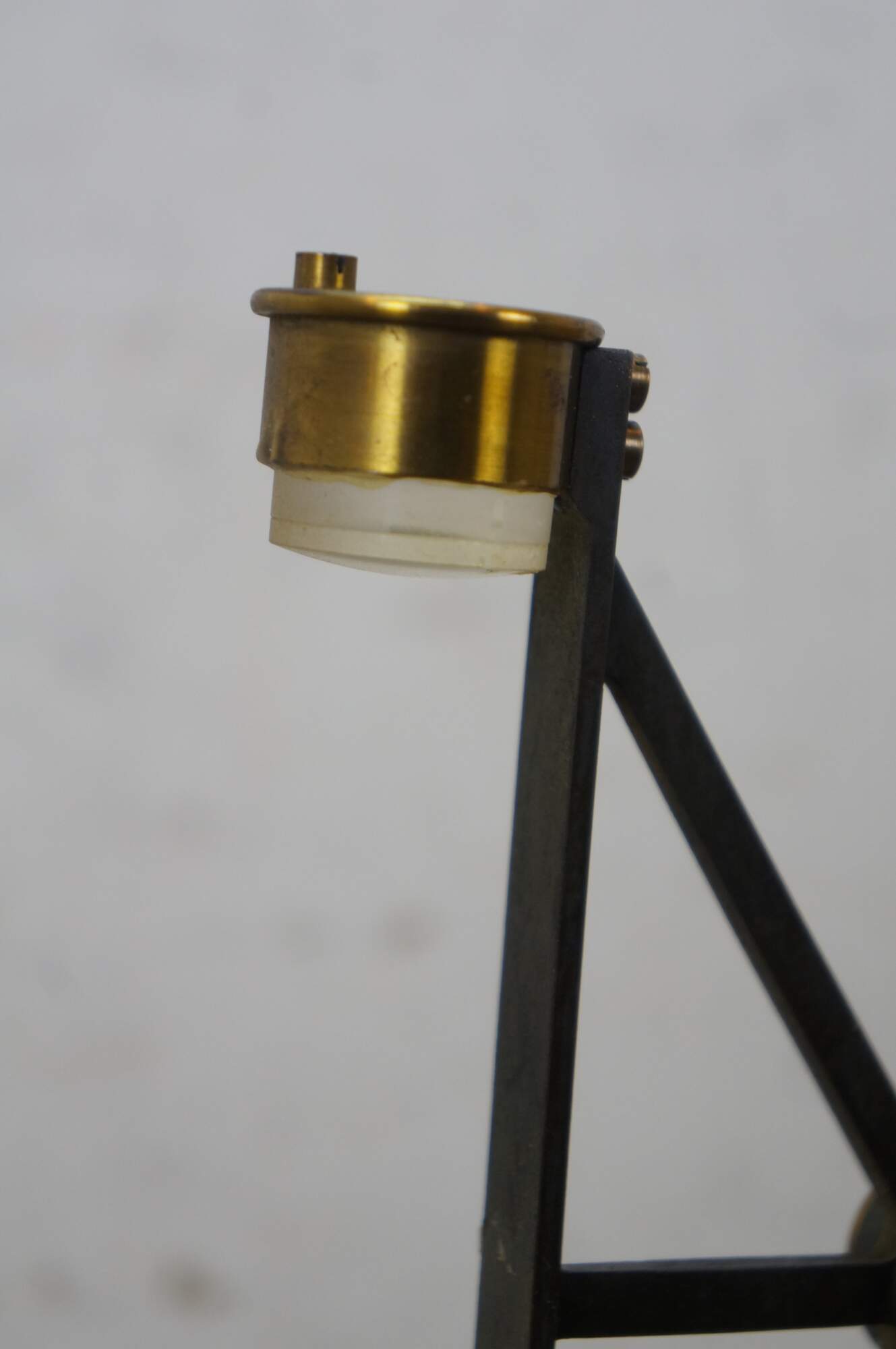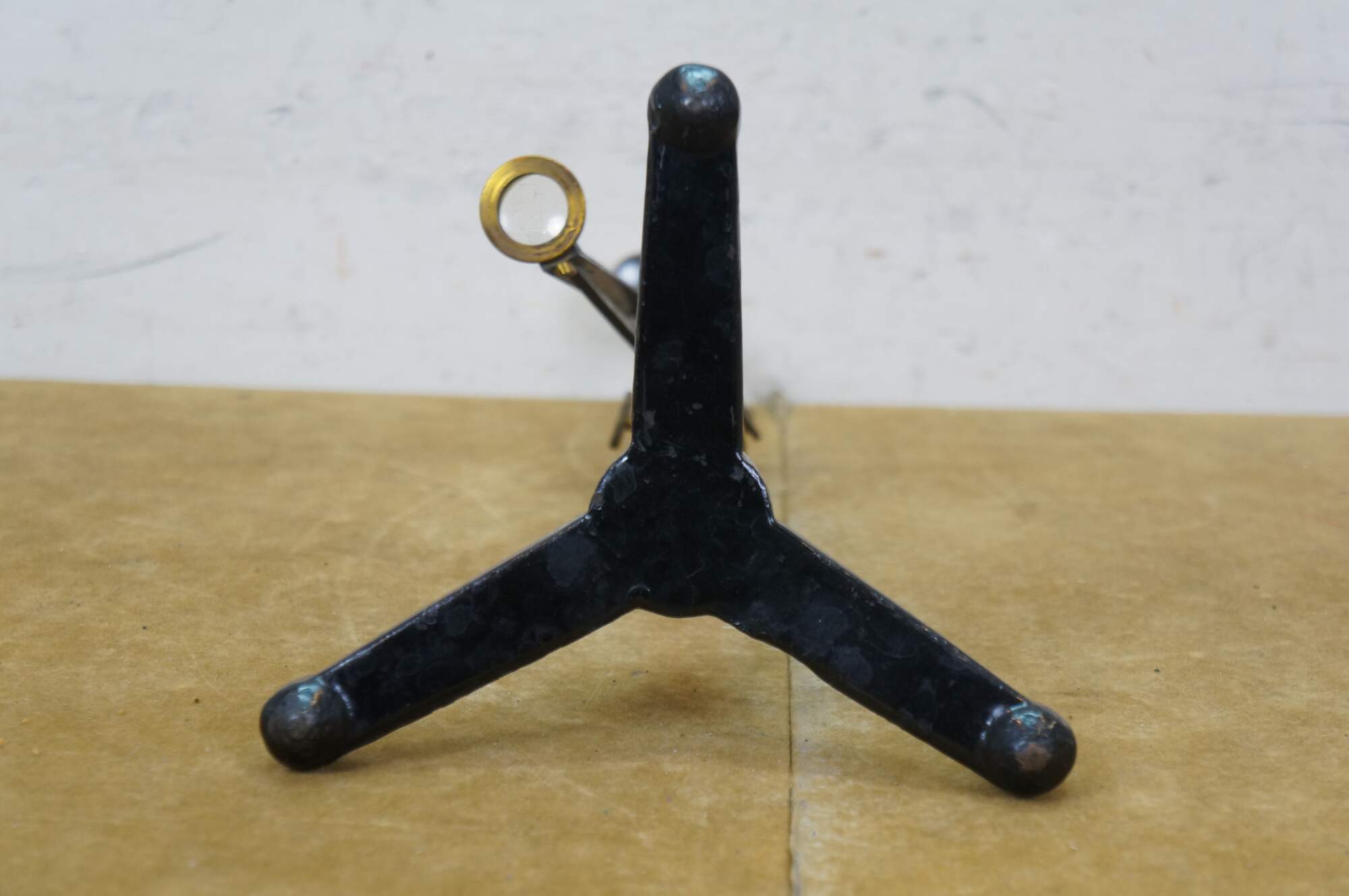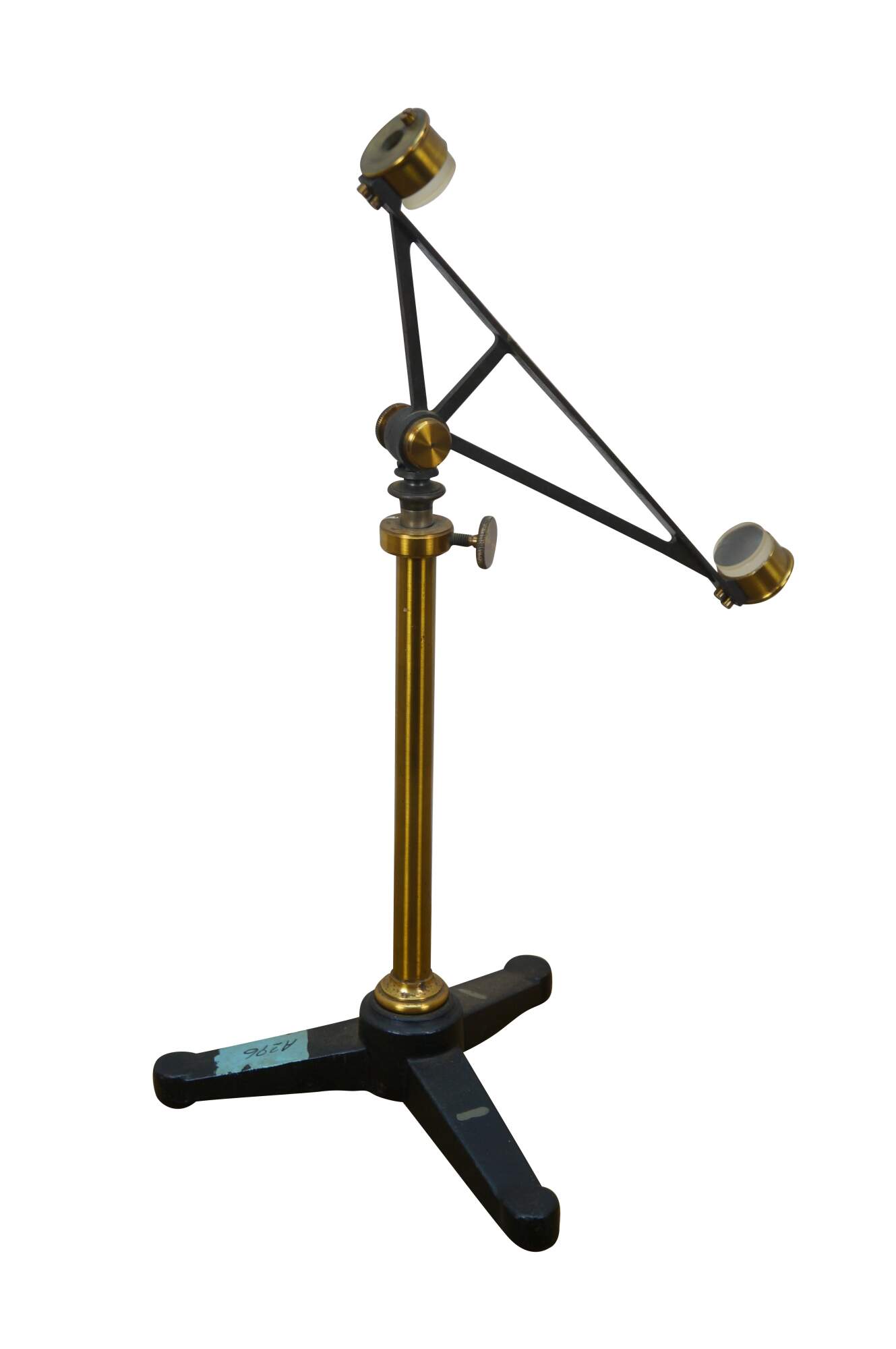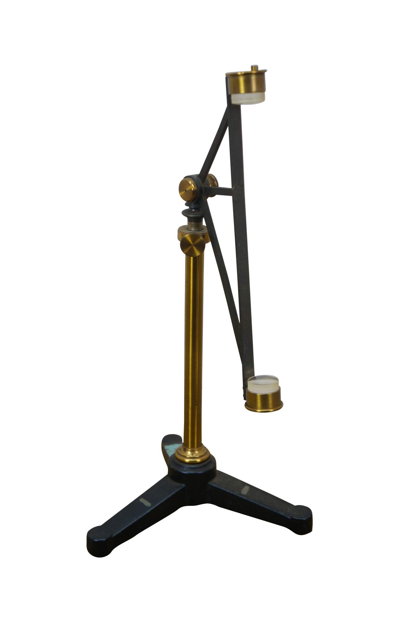 Rare antique Max Kohl, Chemnitz, Germany, microscope / polariscope. Made of brass and cast iron with tripod base and two lenses. Circa 1900.