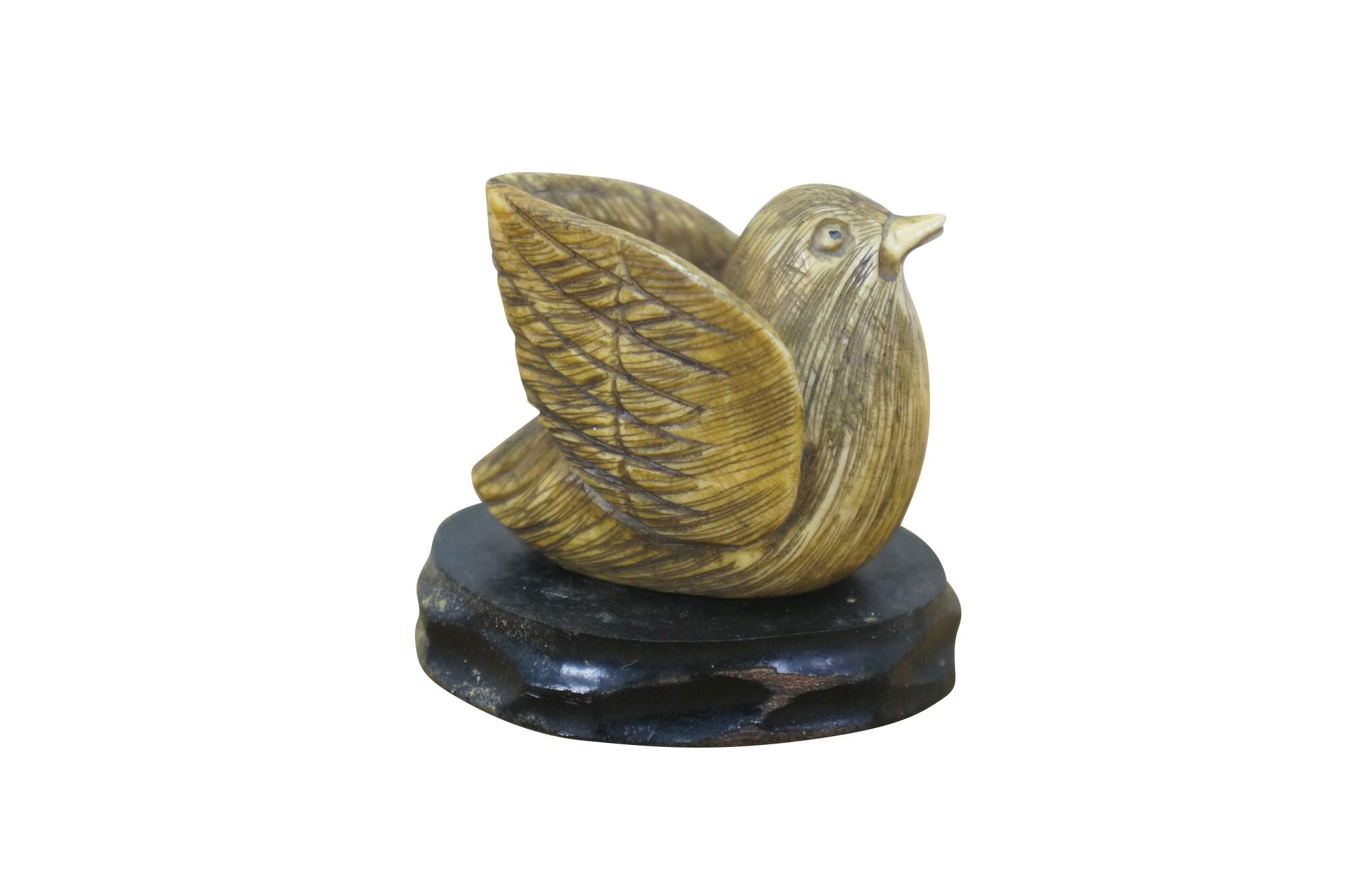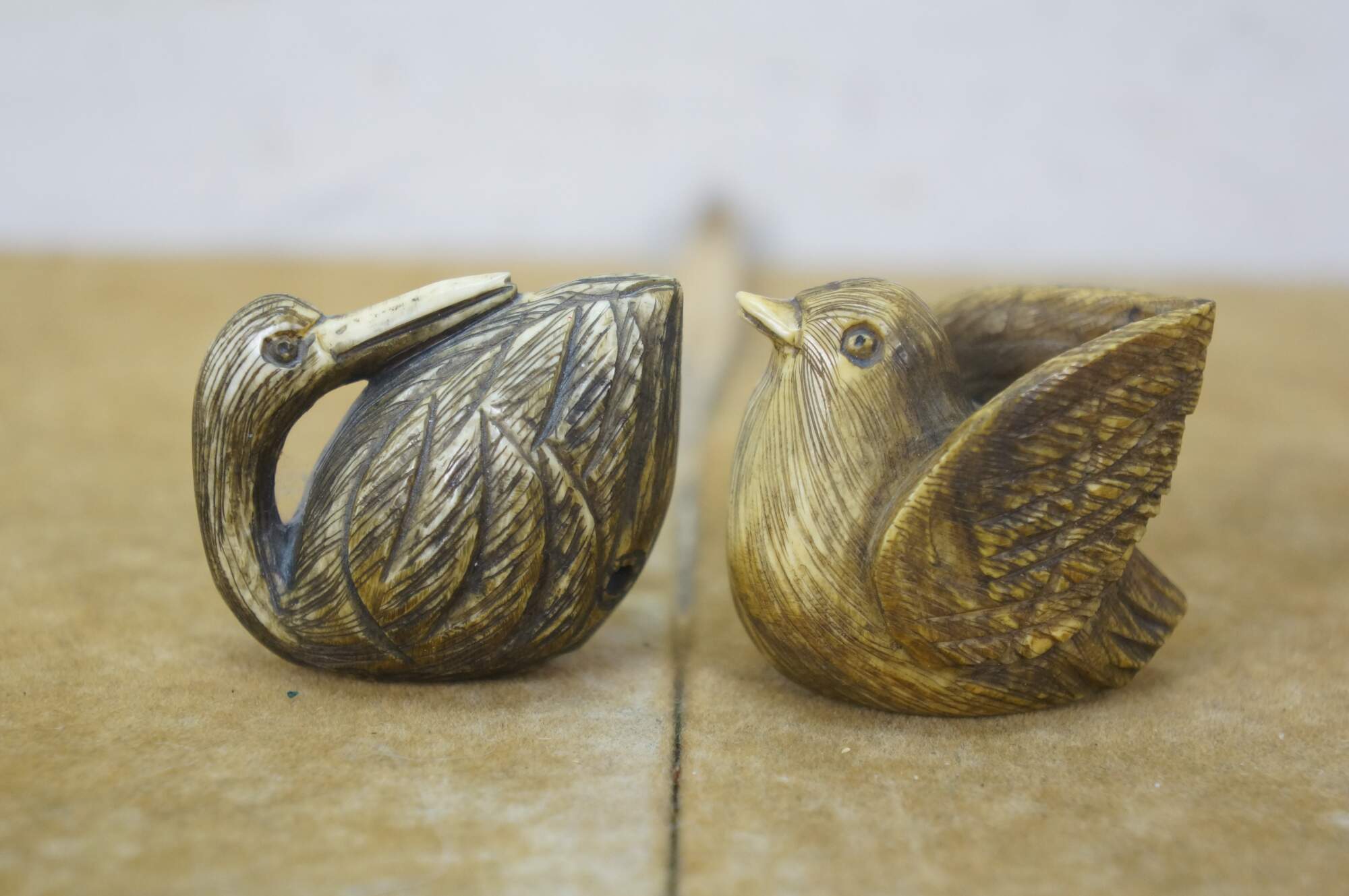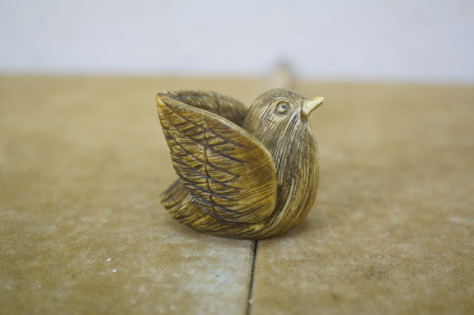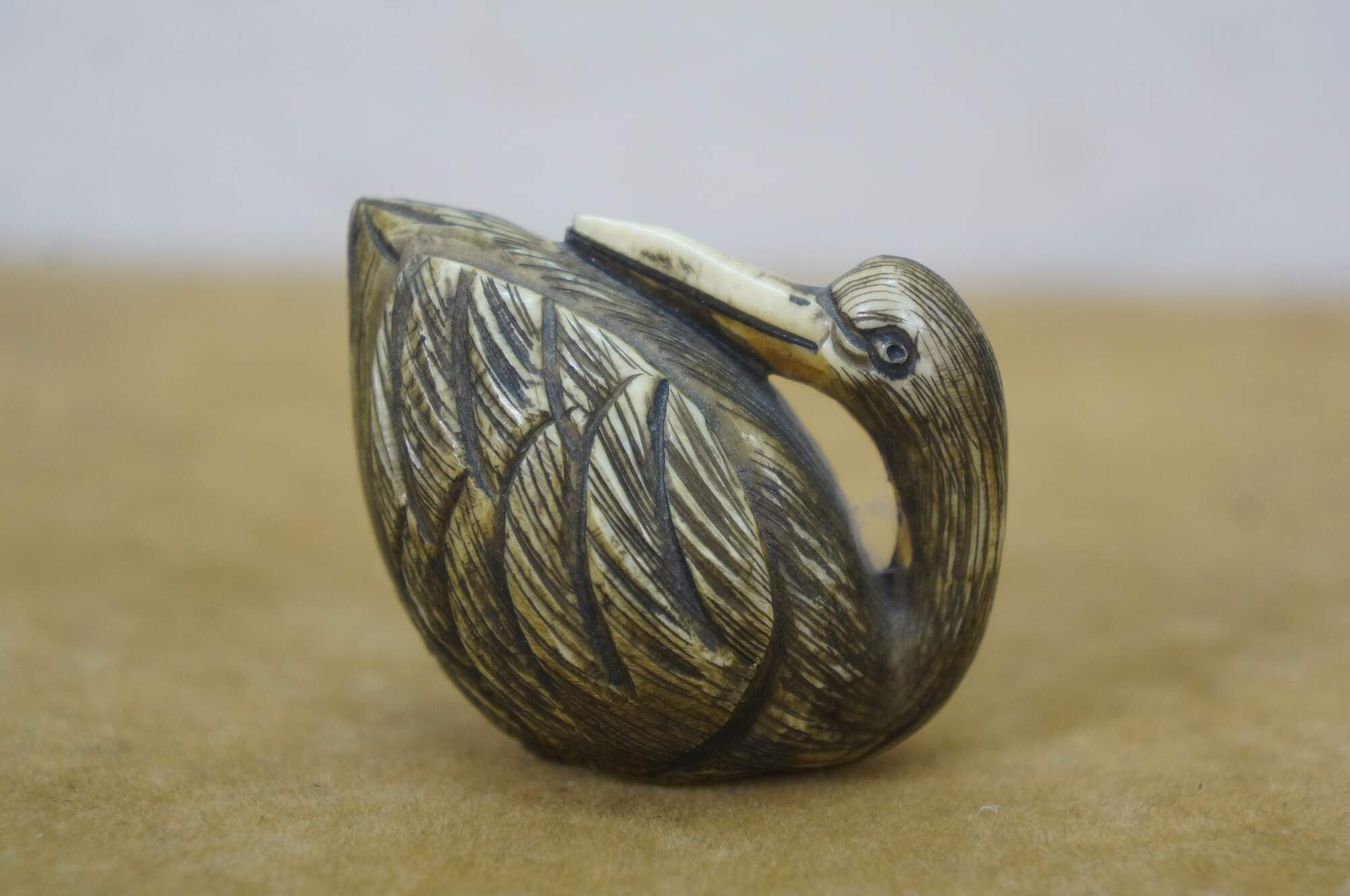 Antique Japanese Ivory Netsuke Crane / Water bird / Sparrow. Signed by artist Tamayuki on base.